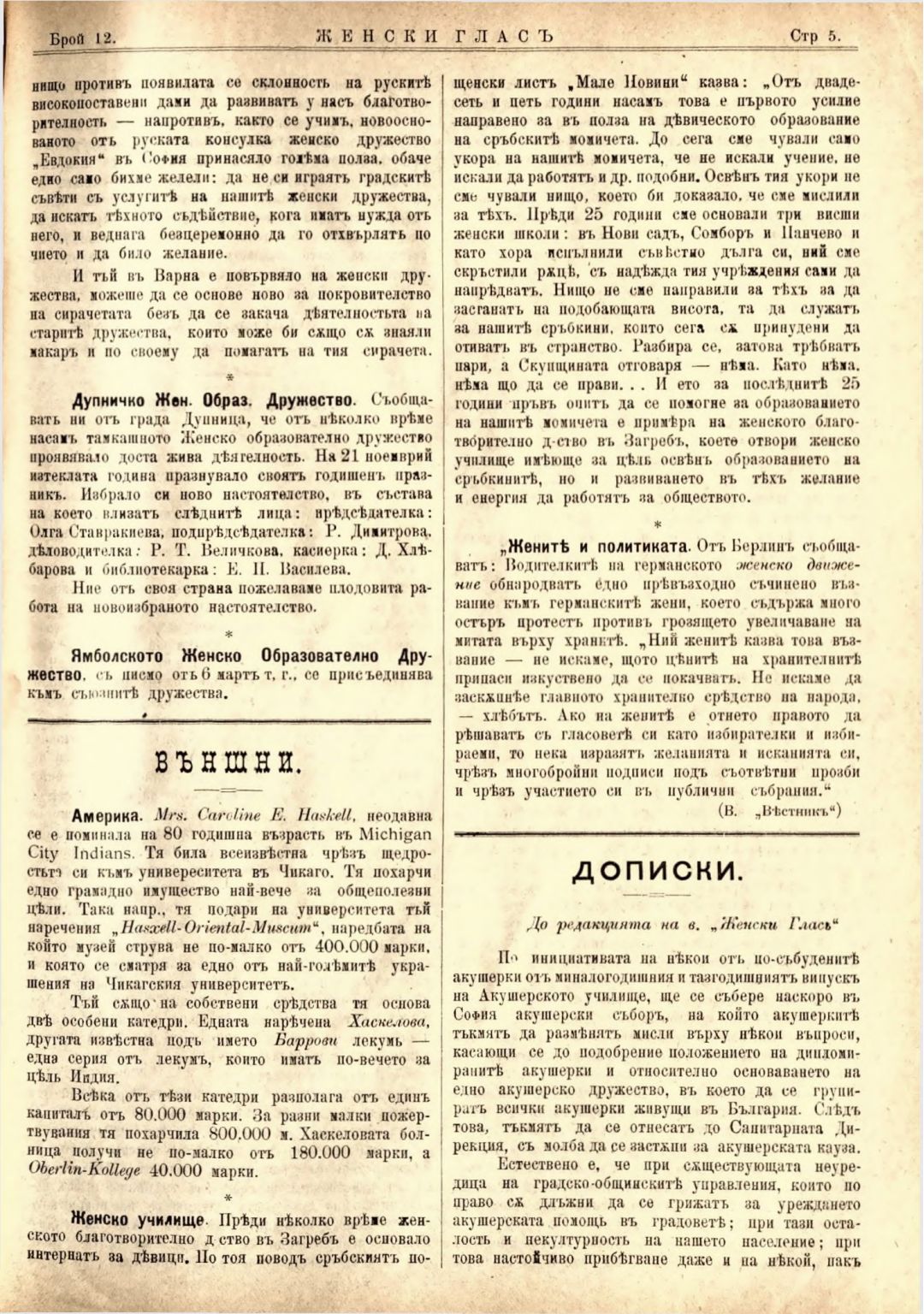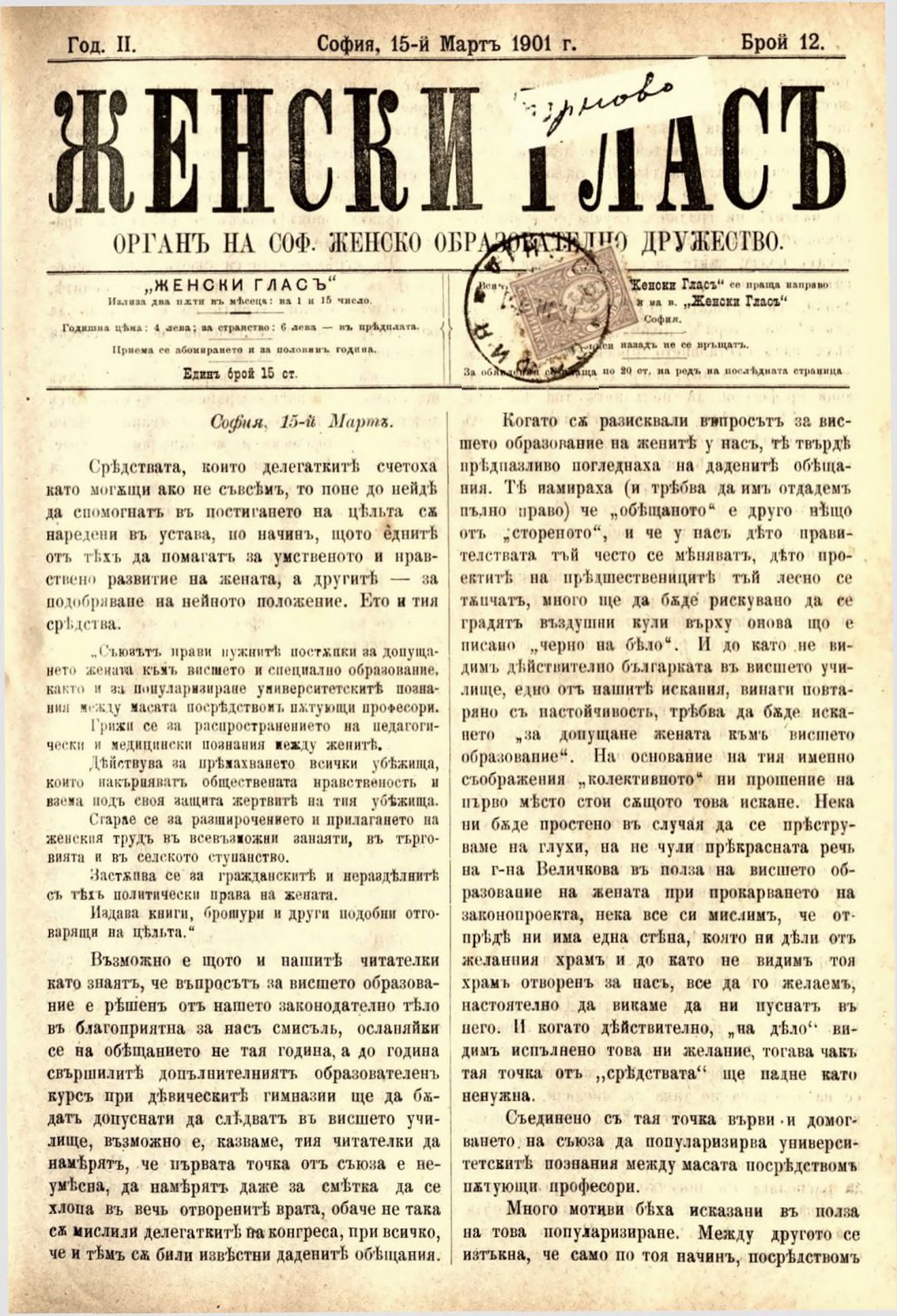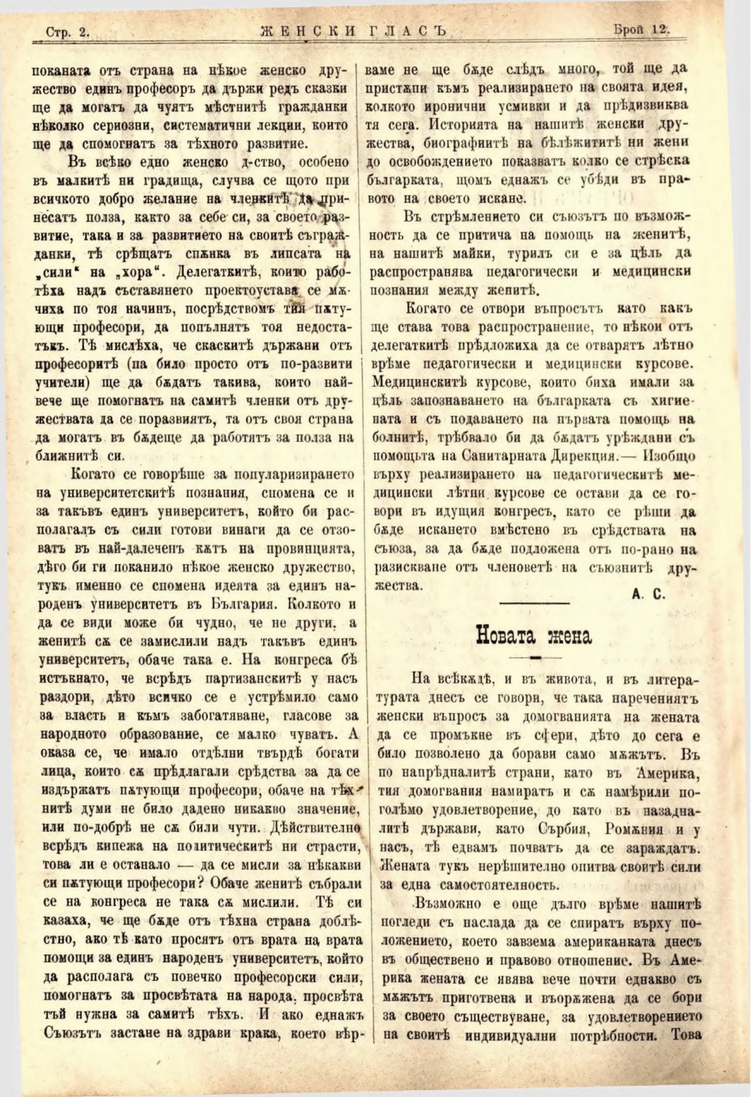 Год. 2,№ 12. Женски глас : Орган на софийското женско образователно дружество