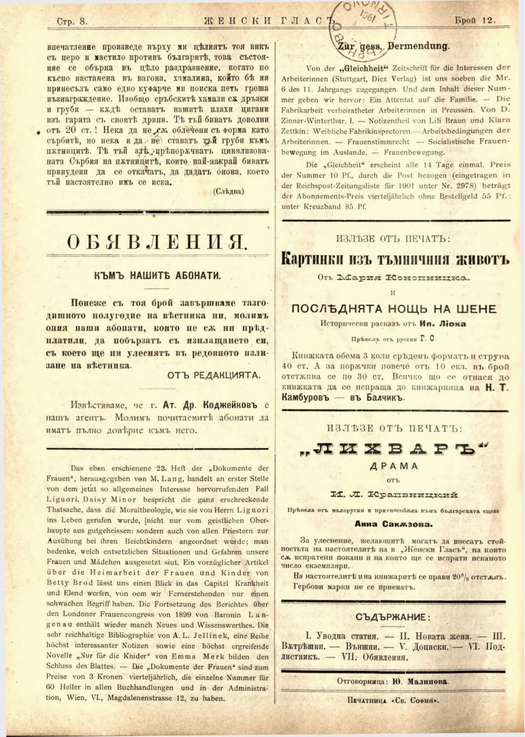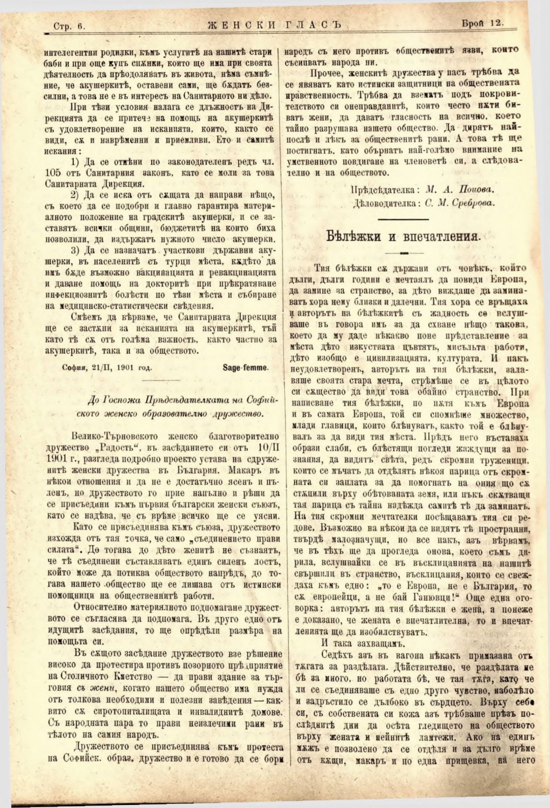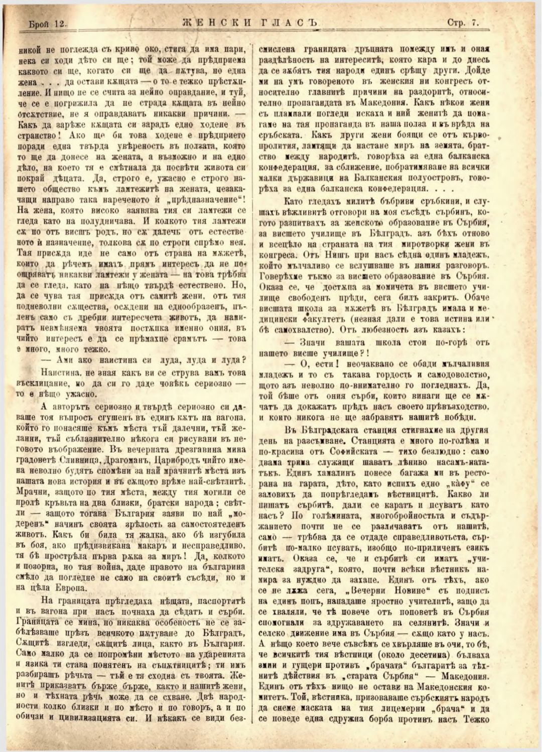 Год. 2,№ 12. Женски глас : Орган на софийското женско образователно дружество