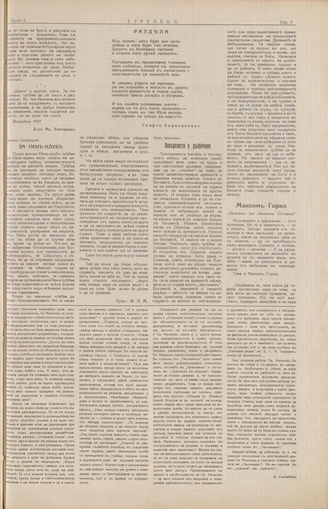 Бр. 4. Стрелец : Седмичник за литературен, художествен и културен живот