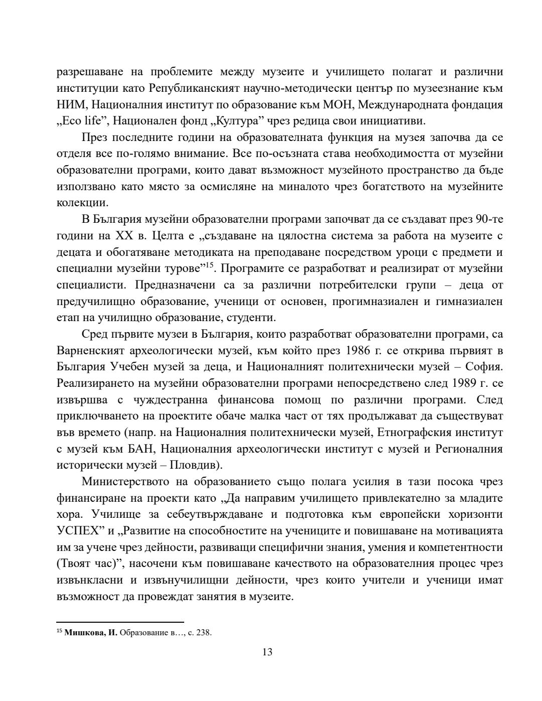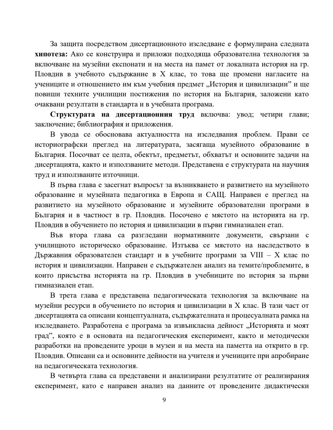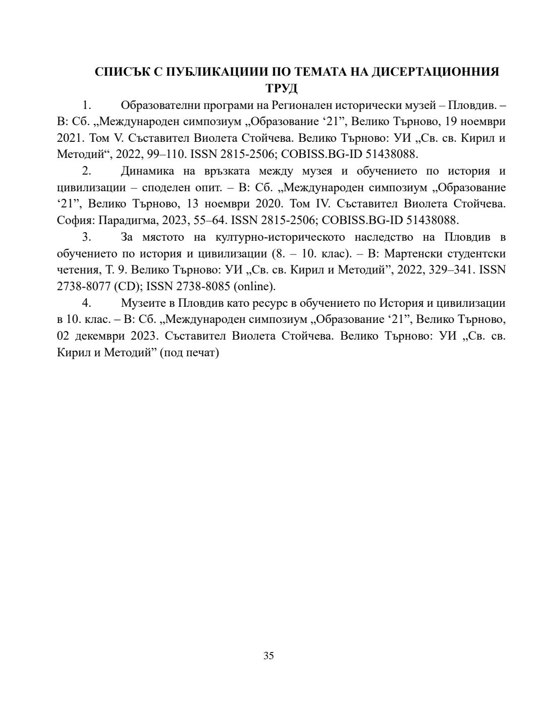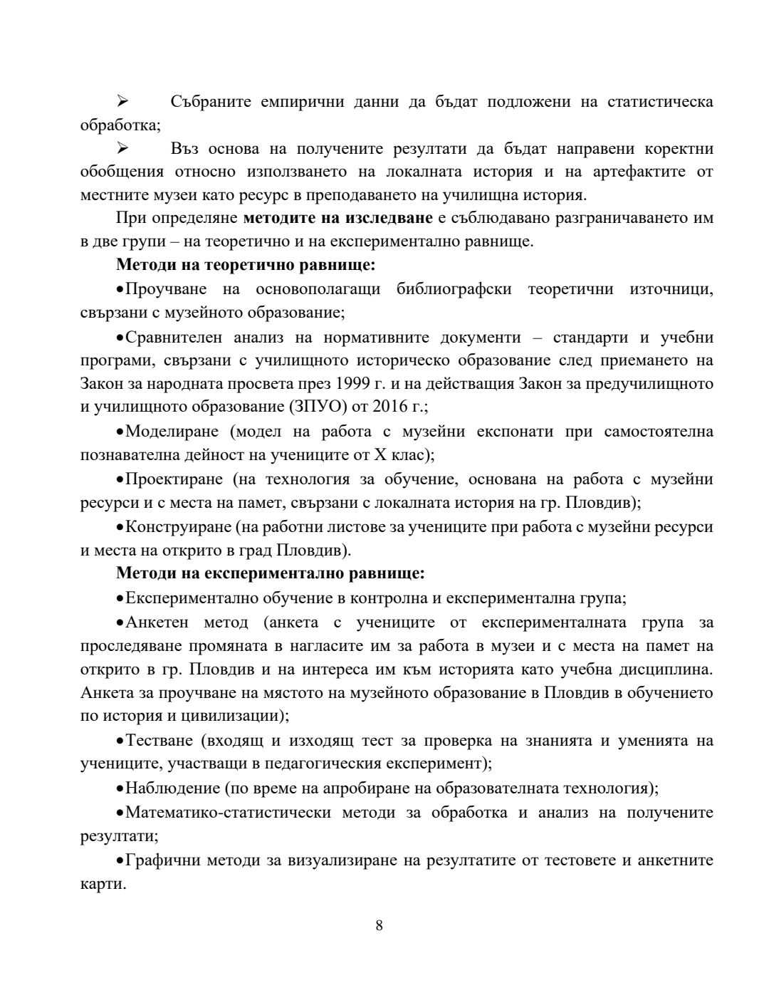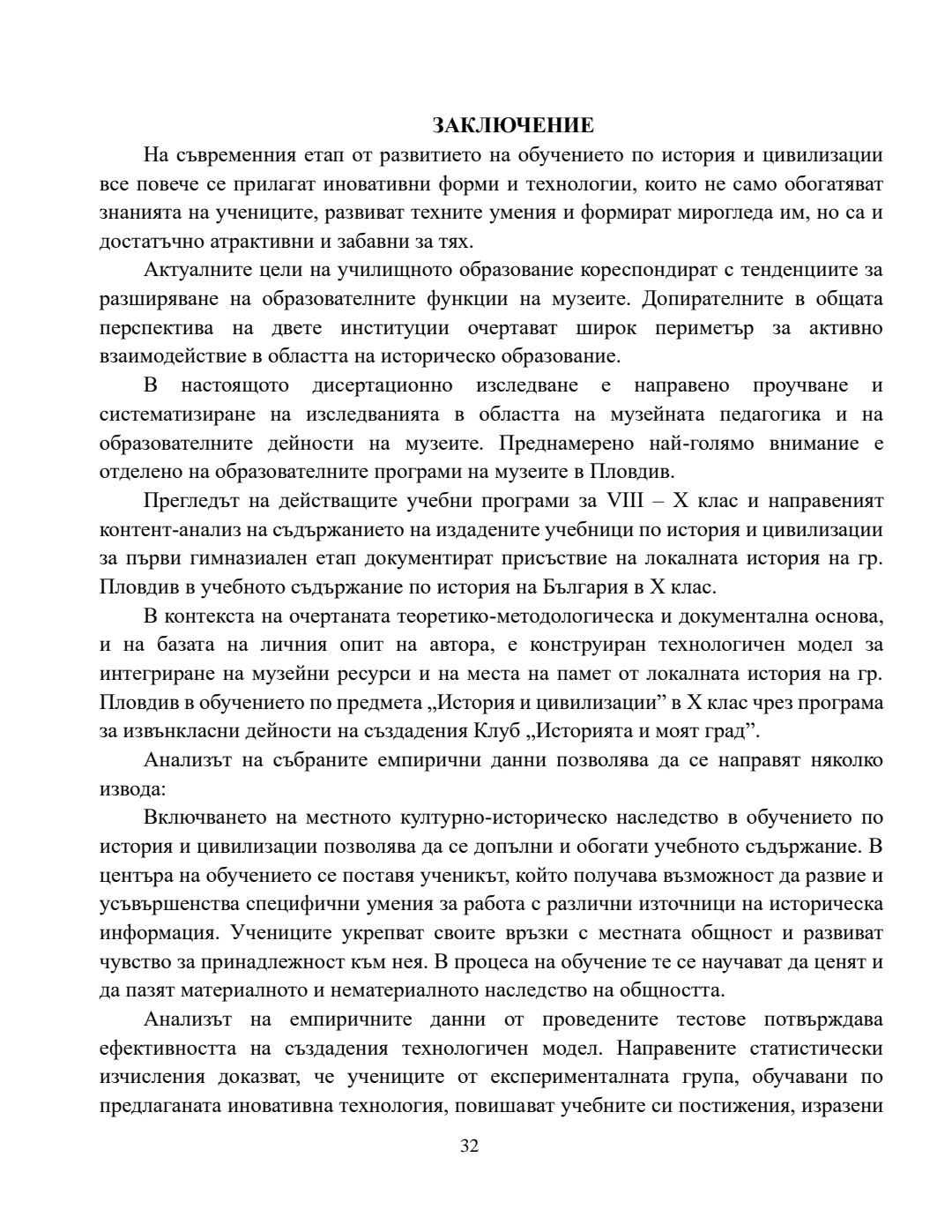 Музеят като ресурс в обучението по история и цивилизации (VIII – X клас) : Автореферат / Славенка Величкова Кутева ; Науч. ръководител Анка Игнатова