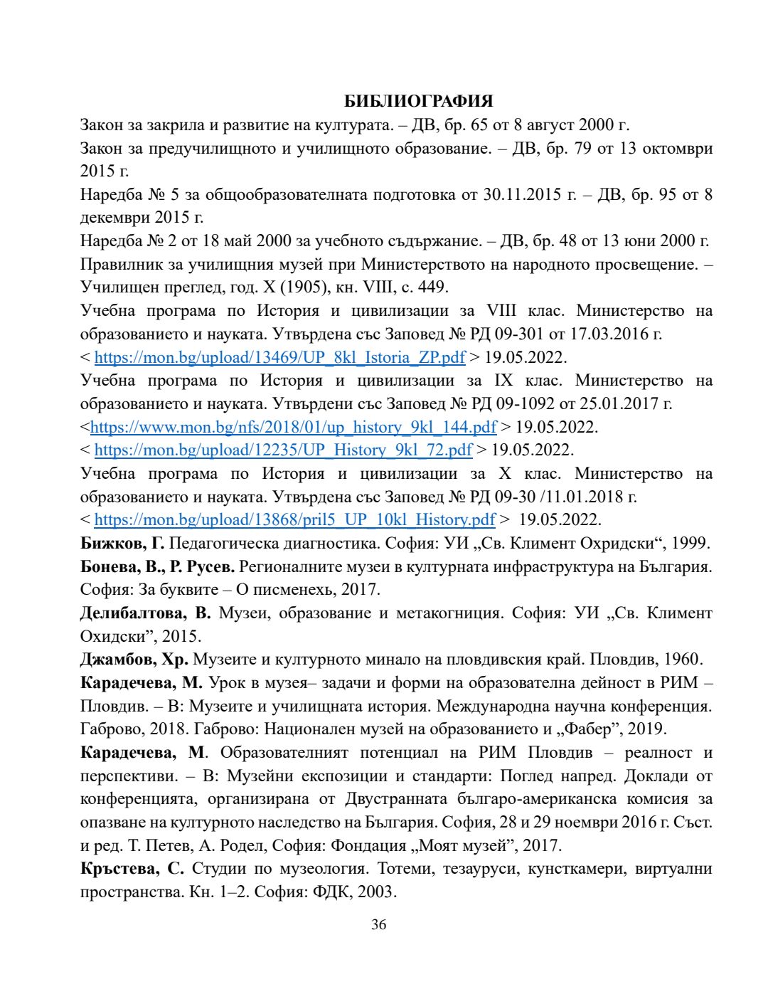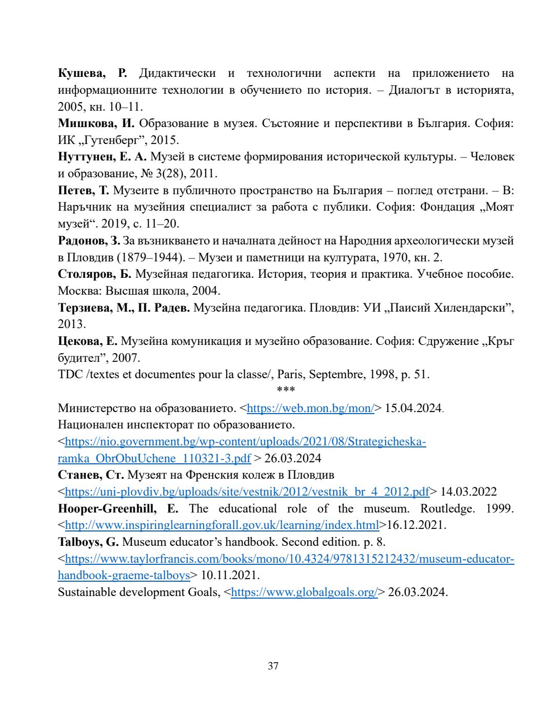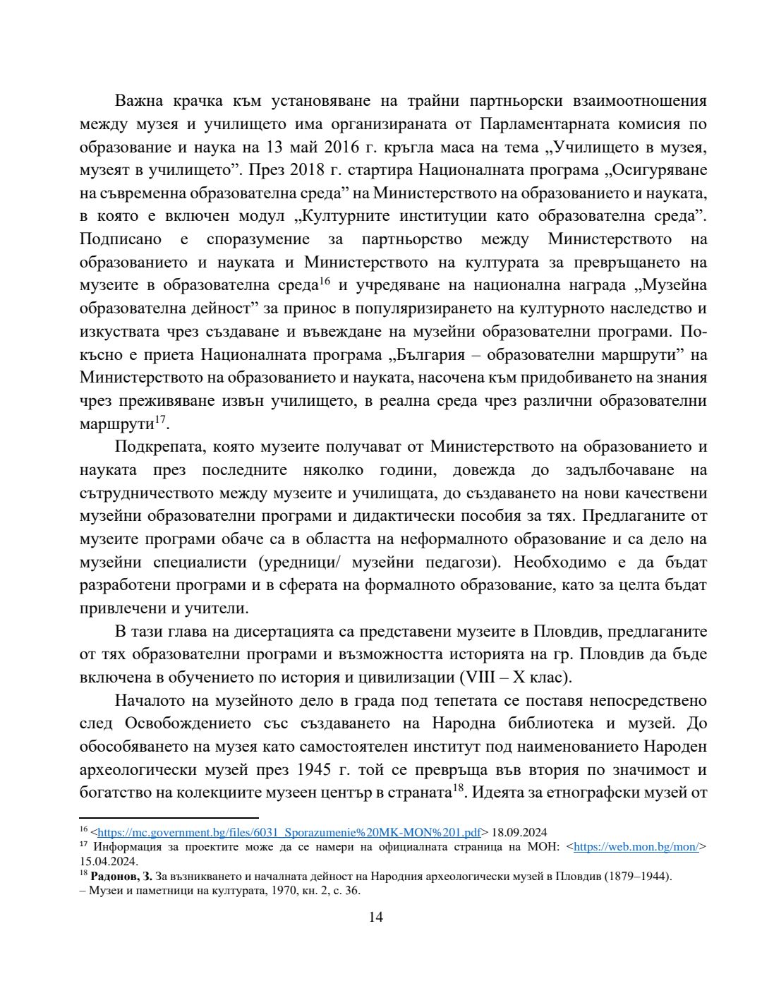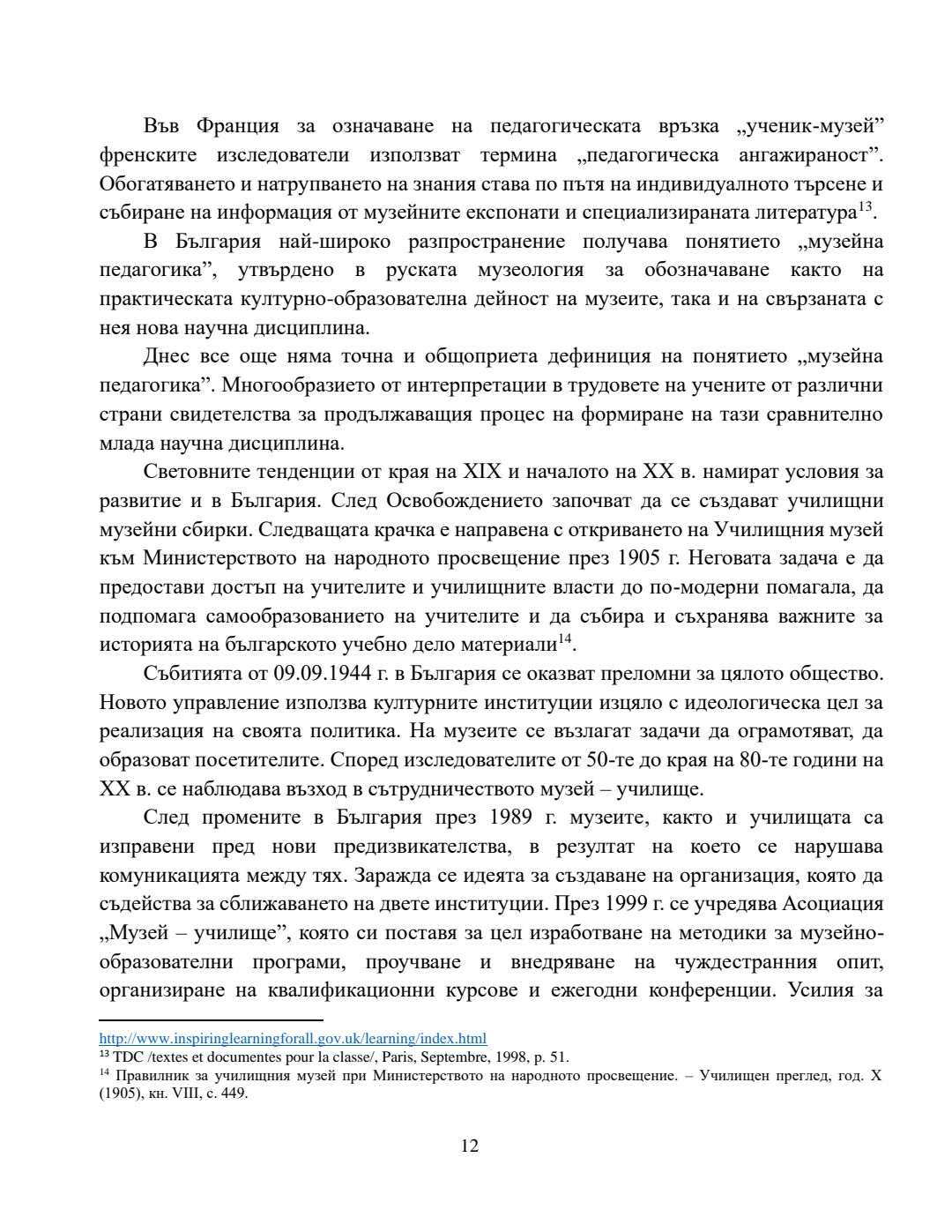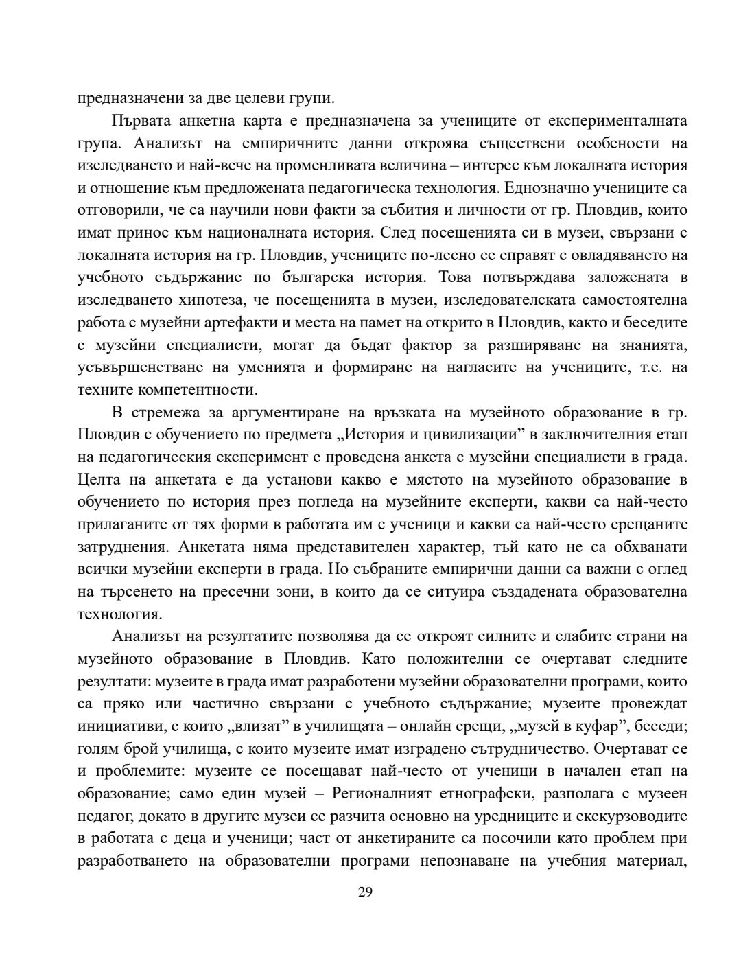 Музеят като ресурс в обучението по история и цивилизации (VIII – X клас) : Автореферат / Славенка Величкова Кутева ; Науч. ръководител Анка Игнатова