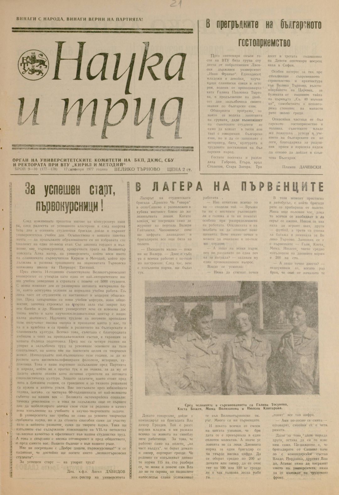 Год.16, 9-10 (177-178). Наука и труд : Орган на университетските организации на БКП, ДКМС, СУ и Ректората при ВПИ "Братя Кирил и Методий"