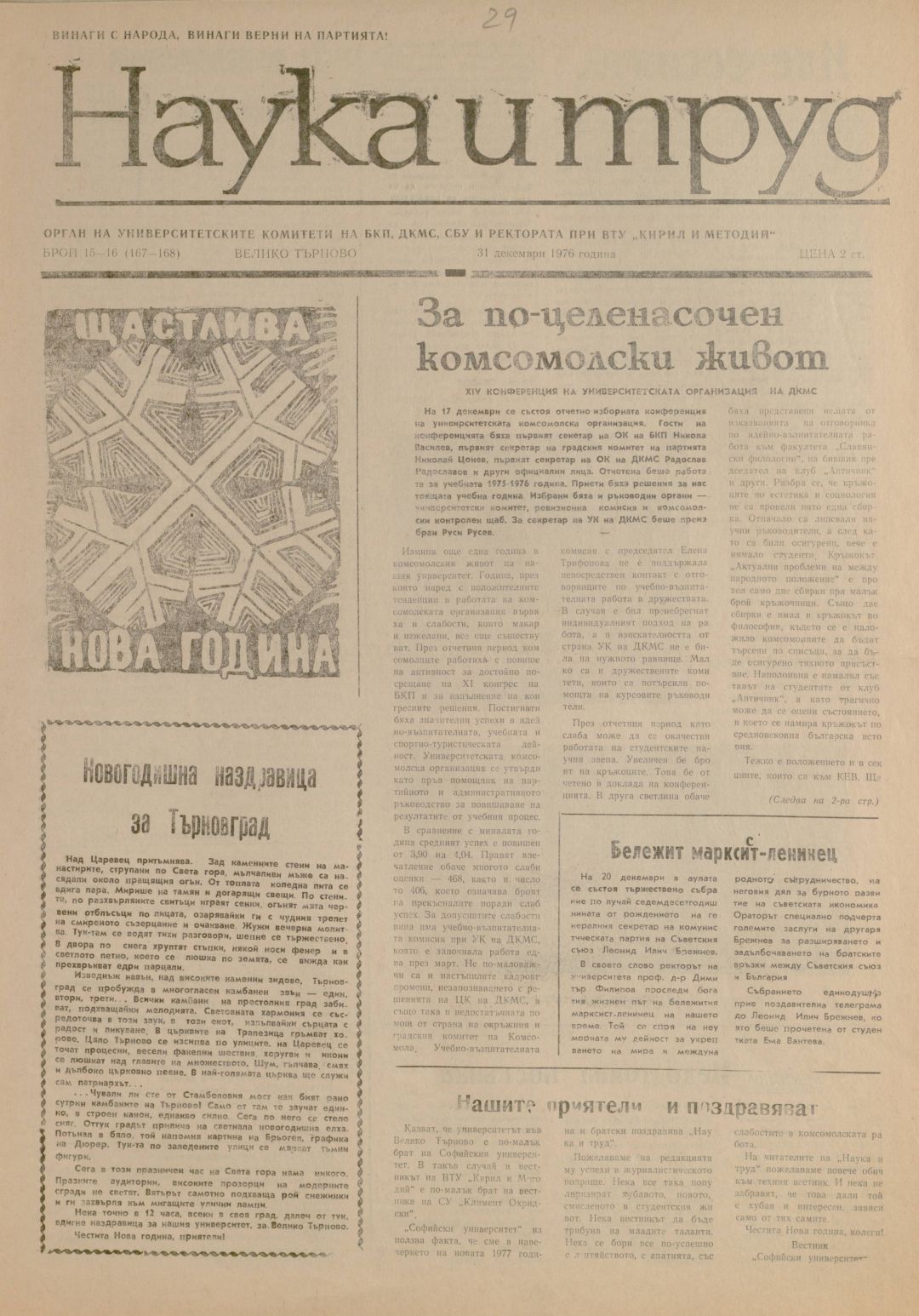 Год.15,15-16 (167-168). Наука и труд : Орган на университетските организации на БКП, ДКМС, СУ и Ректората при ВПИ "Братя Кирил и Методий"