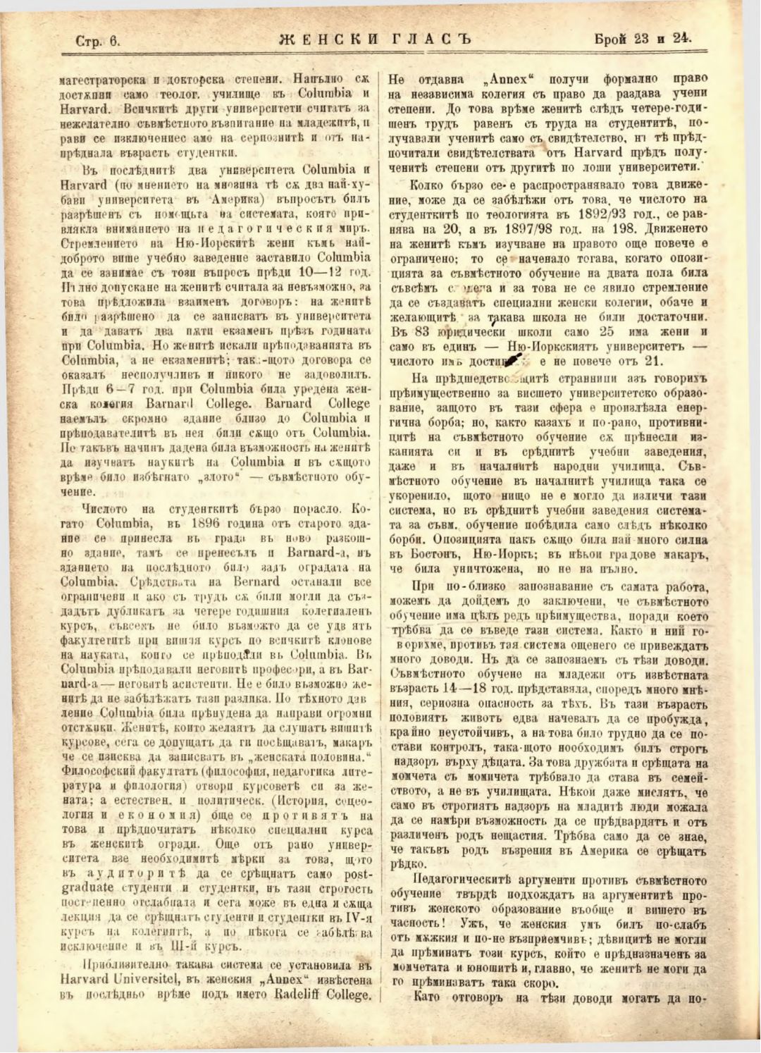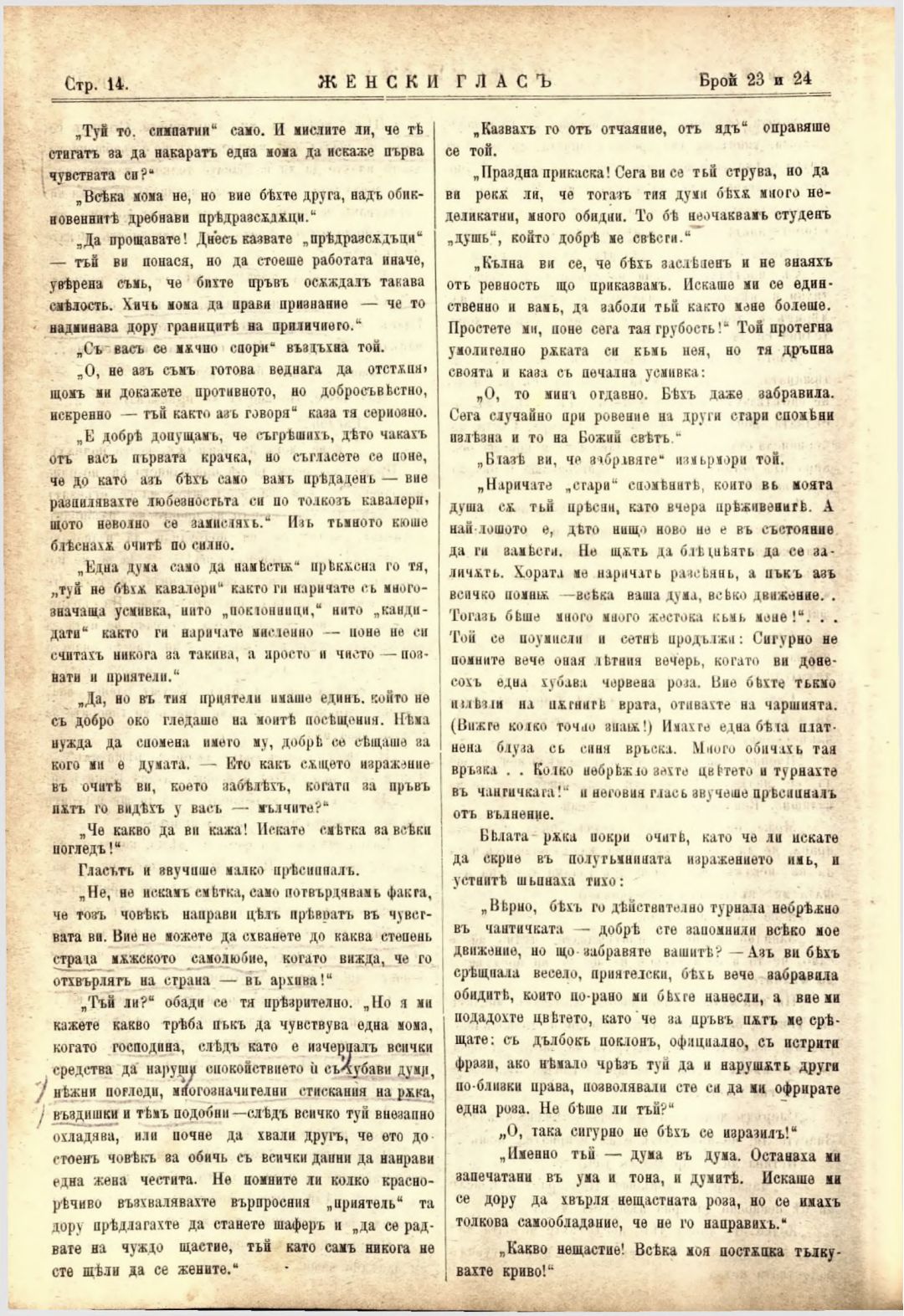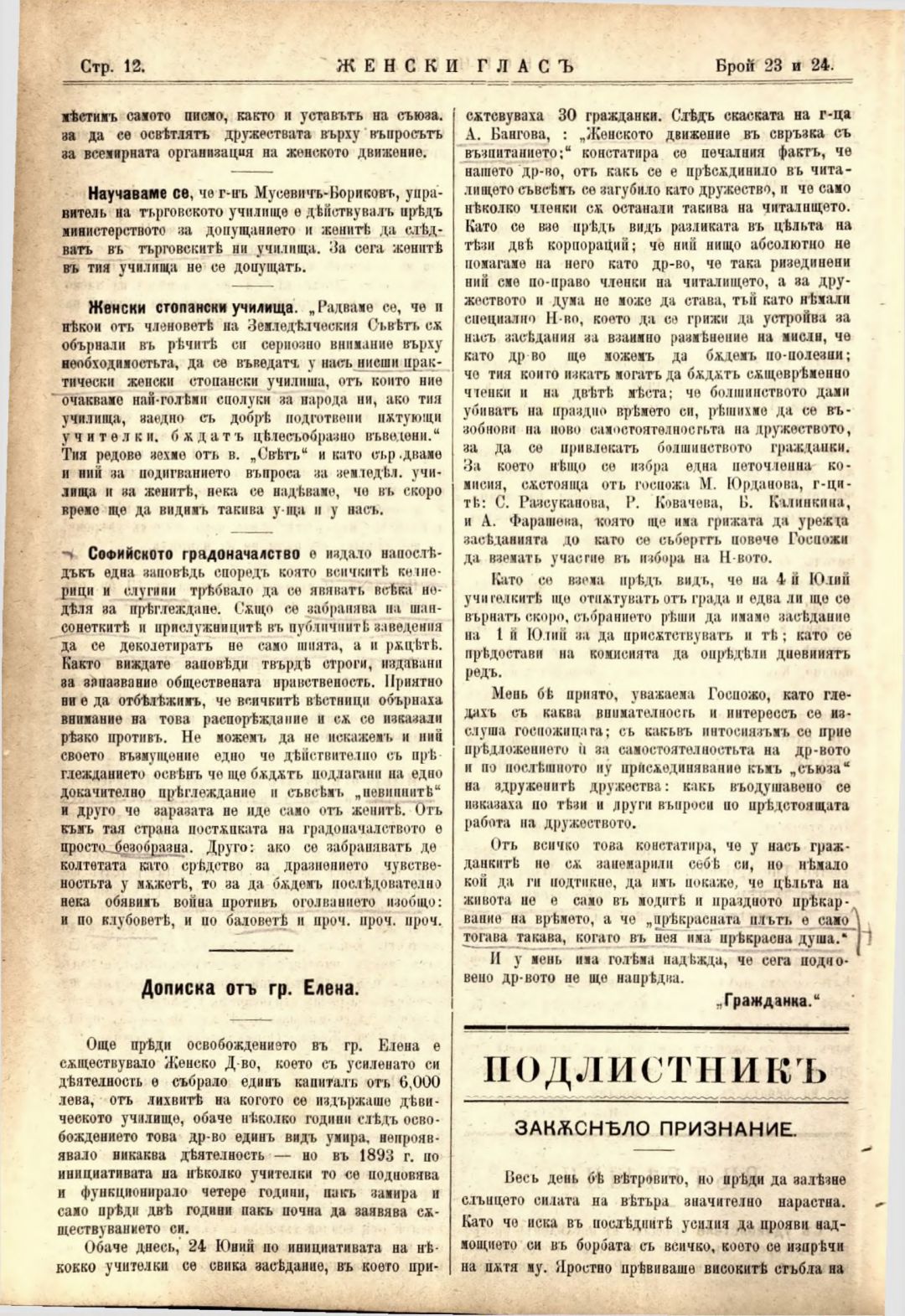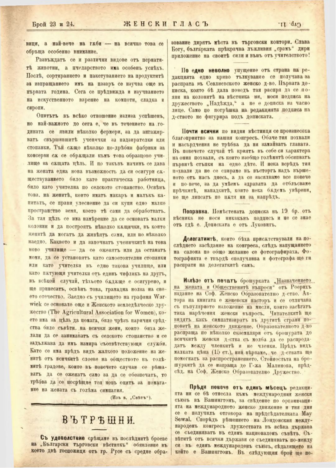 Год. 2,№ 23-24. Женски глас : Орган на софийското женско образователно дружество