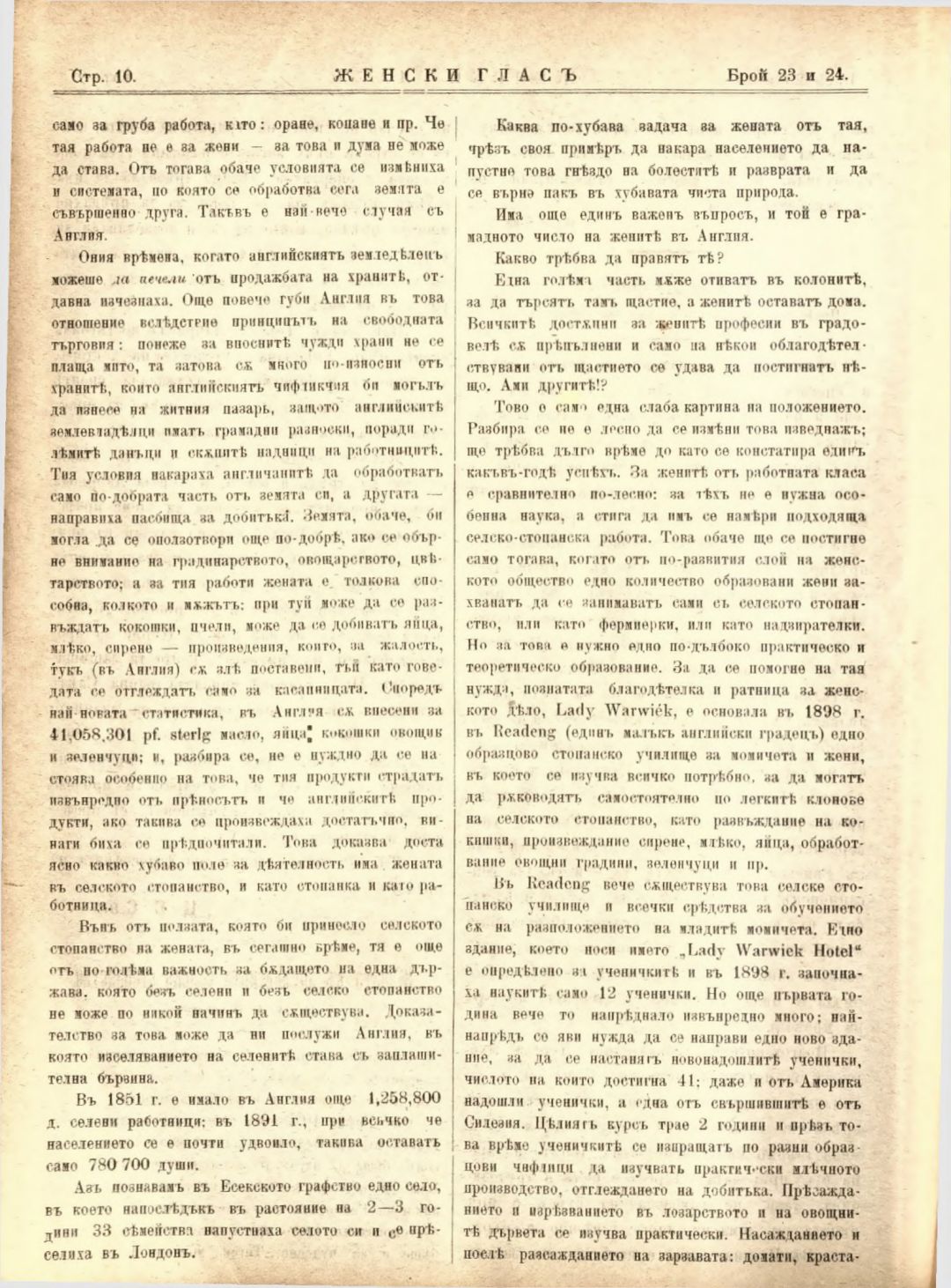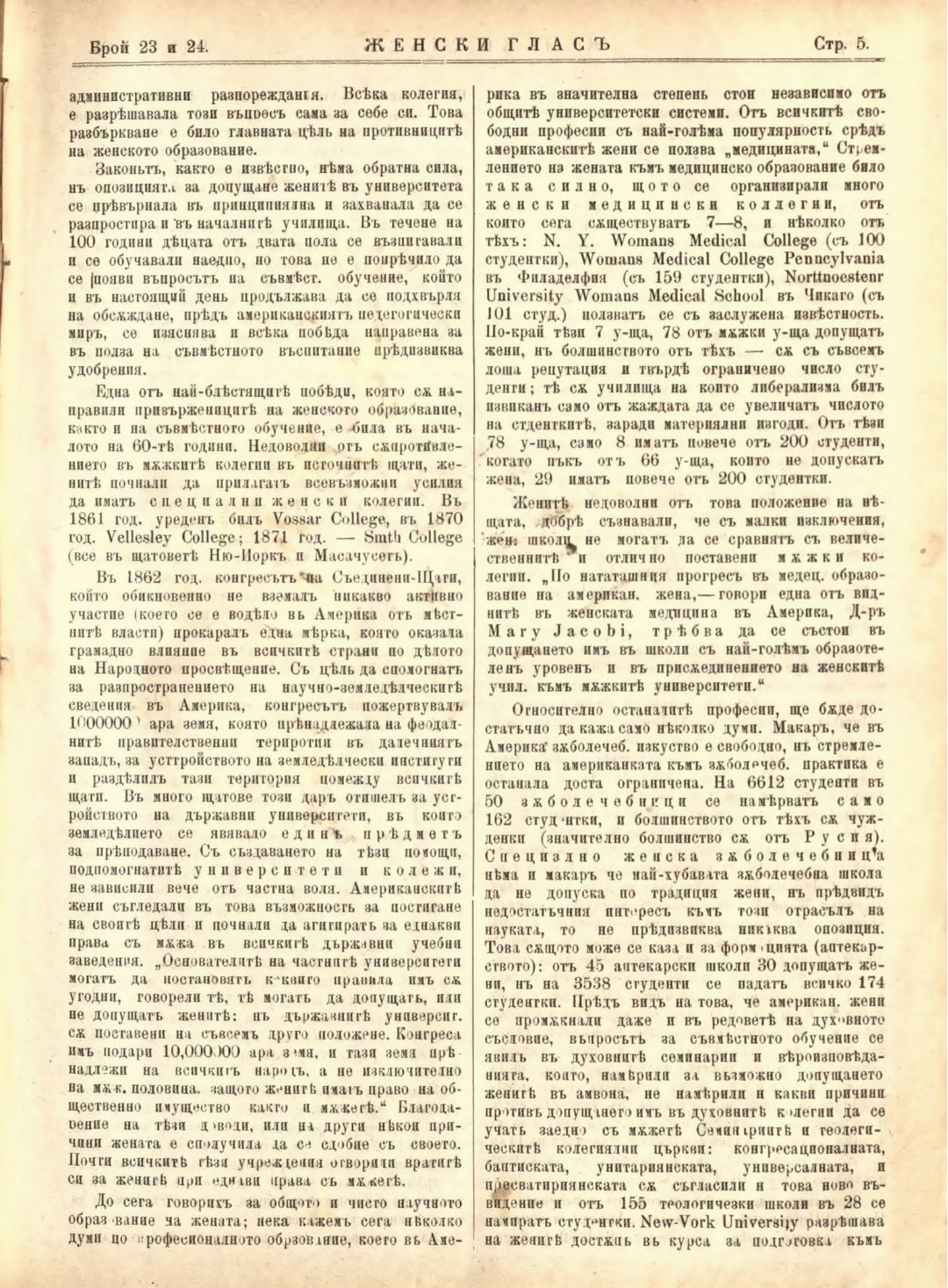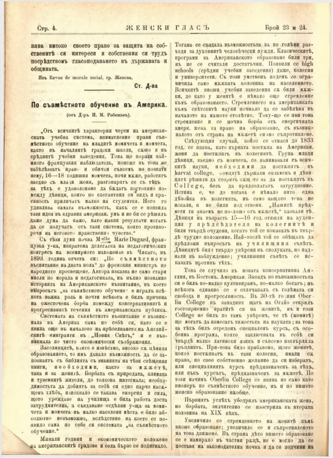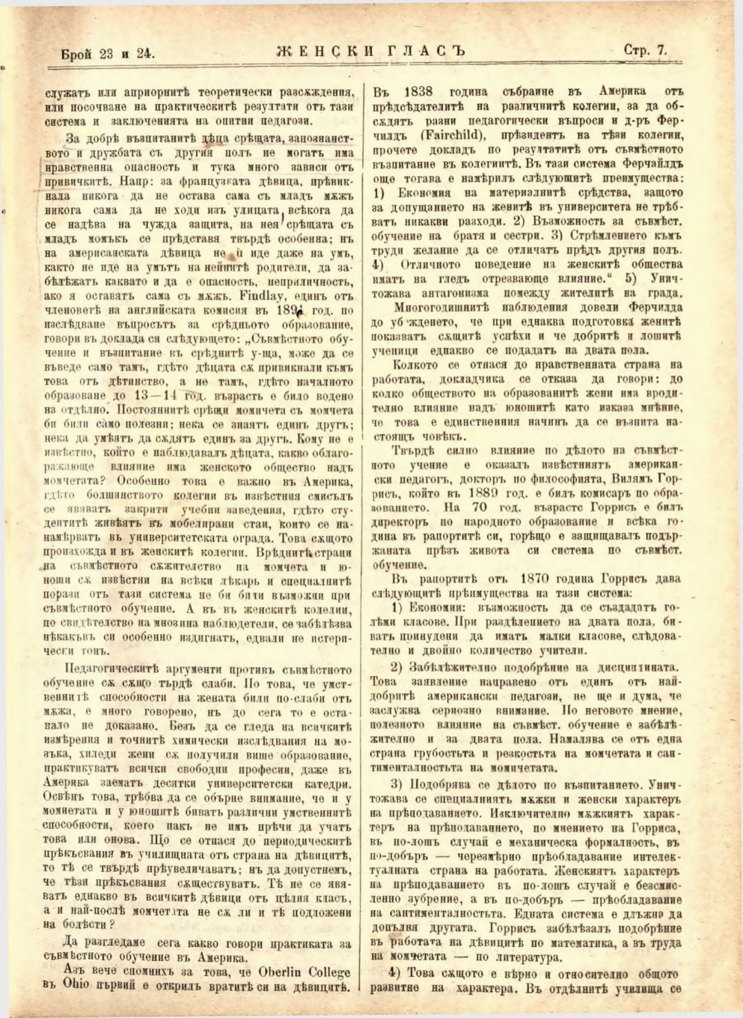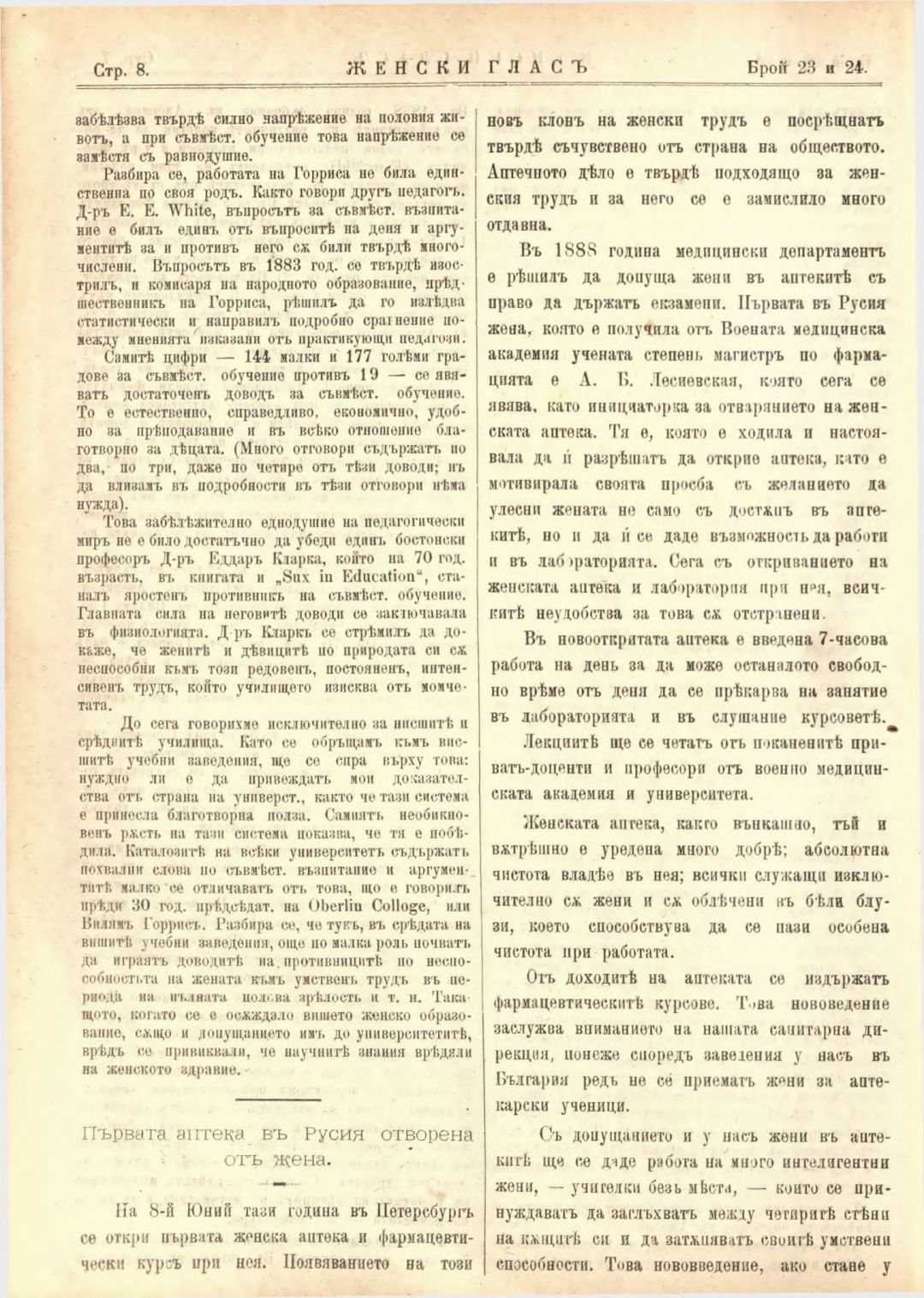 Год. 2,№ 23-24. Женски глас : Орган на софийското женско образователно дружество