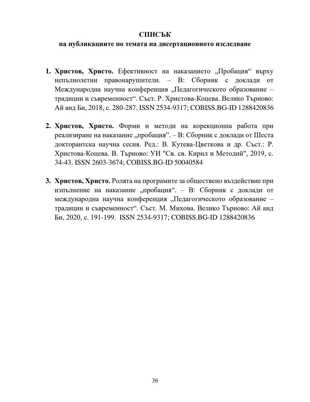 Организационно-управленски и социалнопедагогически проблеми на наказанието "пробация" : Автореферат / Христо Лъчезаров Христов ; Науч. ръководител Боряна Здравкова