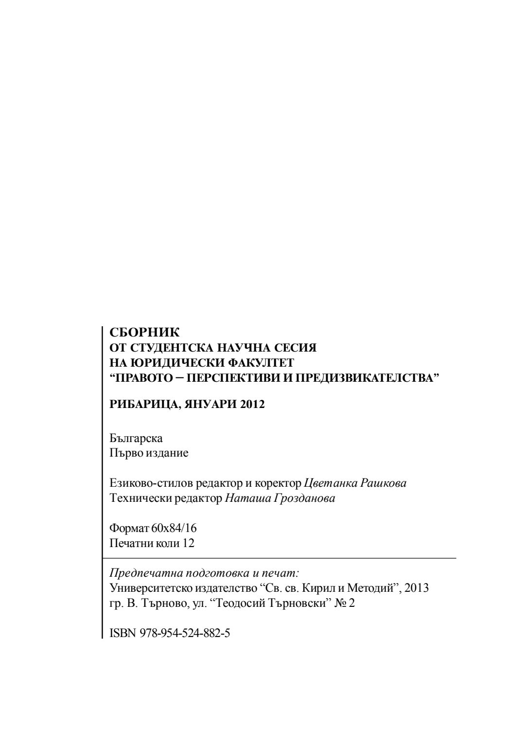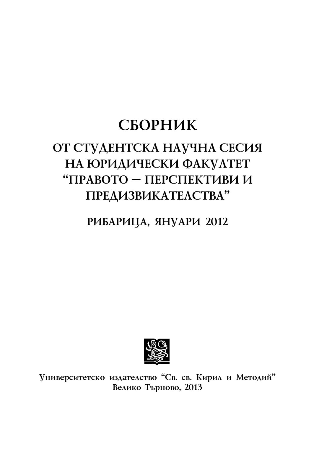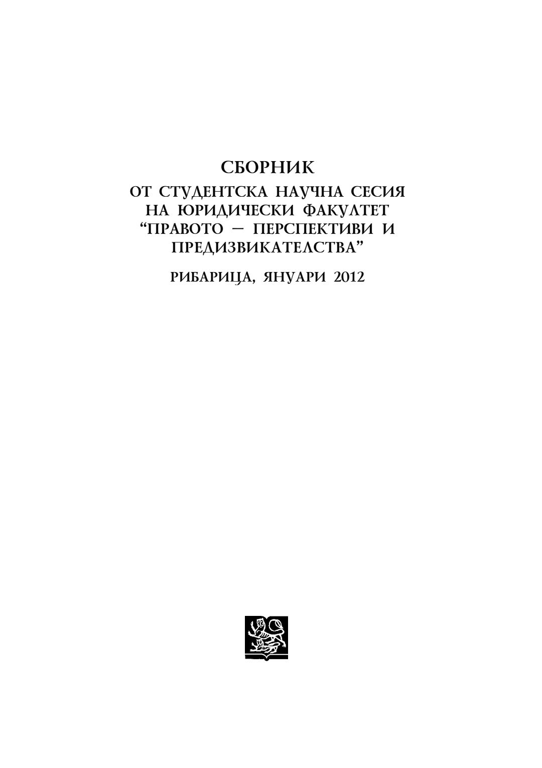 Сборник от студентска научна сесия на Юридически факултет "Правото - перспективи и предизвикателства", Рибарица, януари 2012