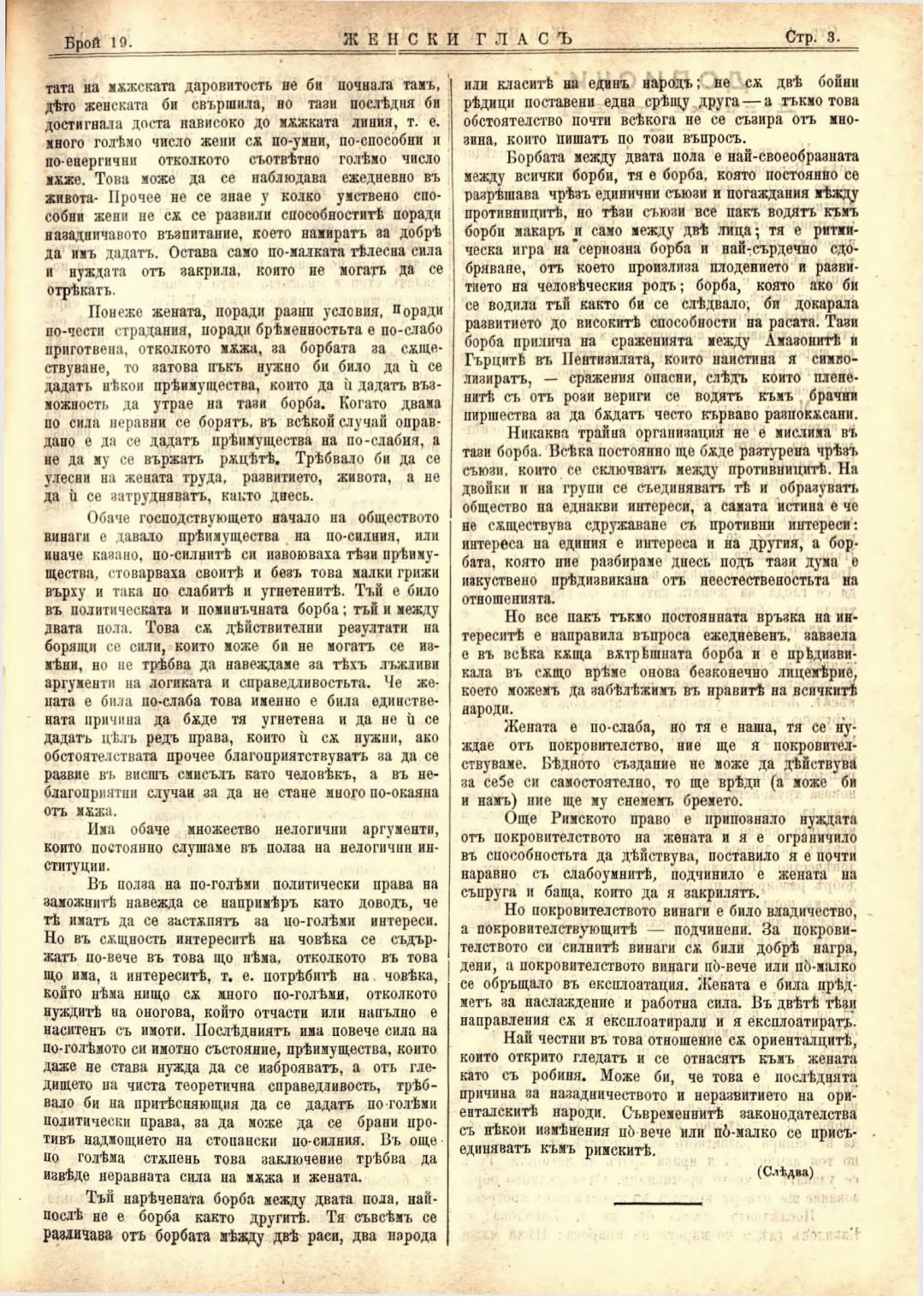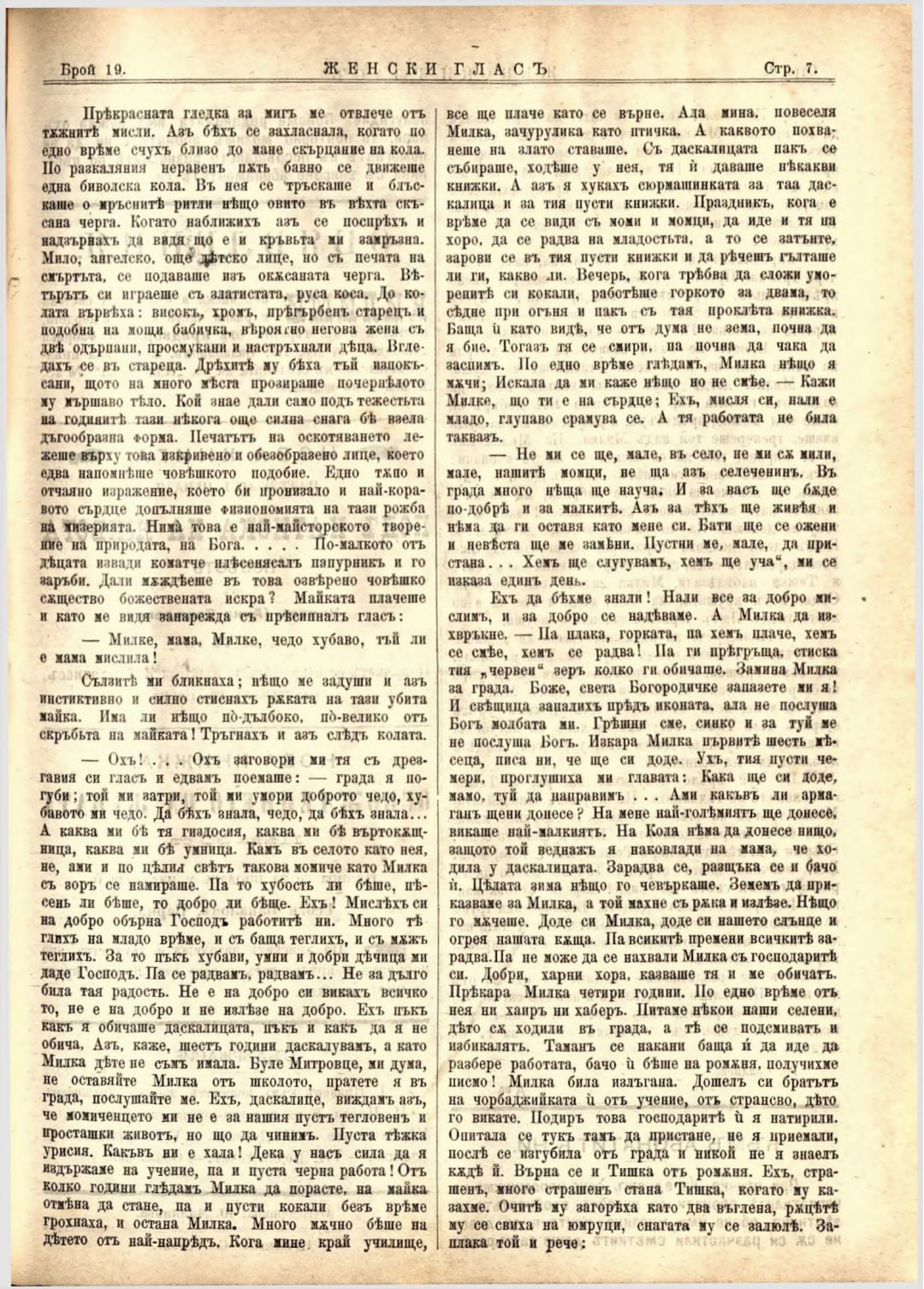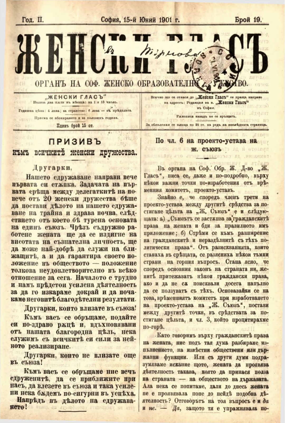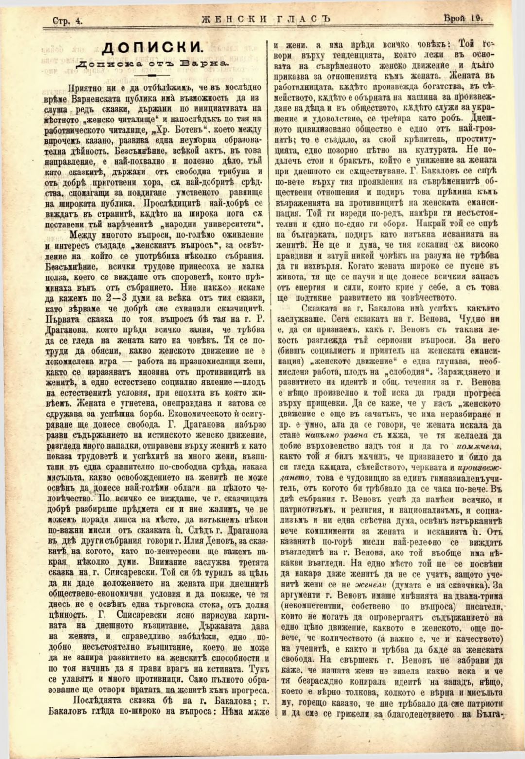 Год. 2,№ 19. Женски глас : Орган на софийското женско образователно дружество