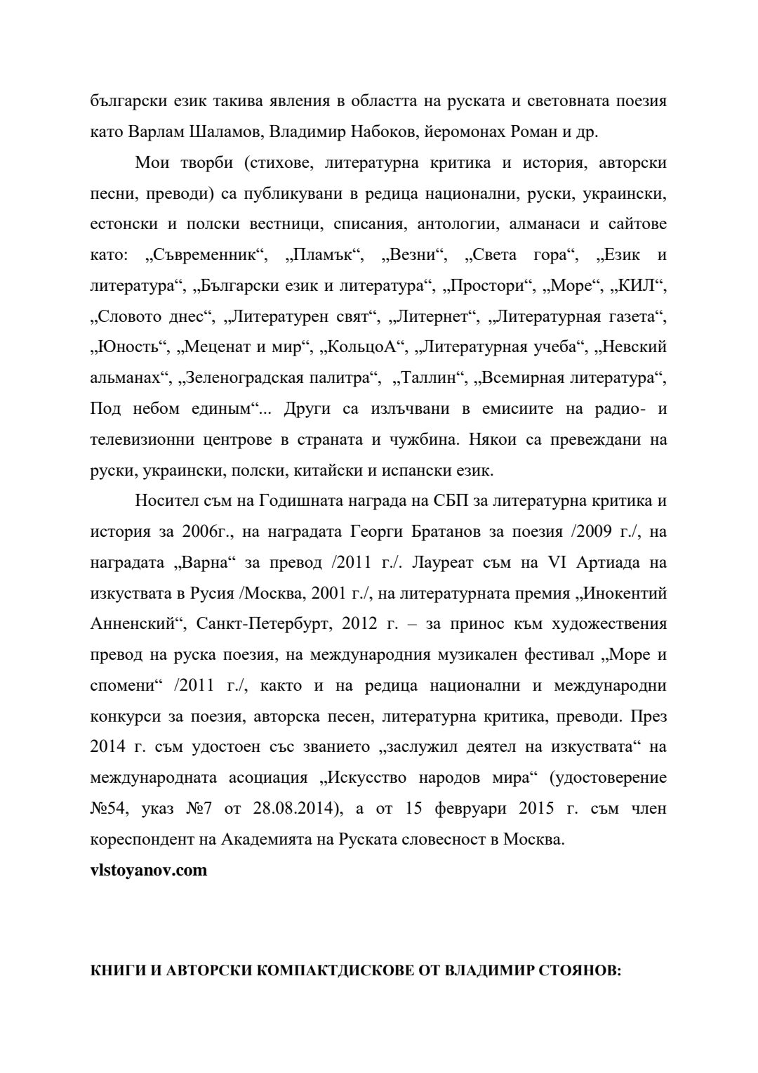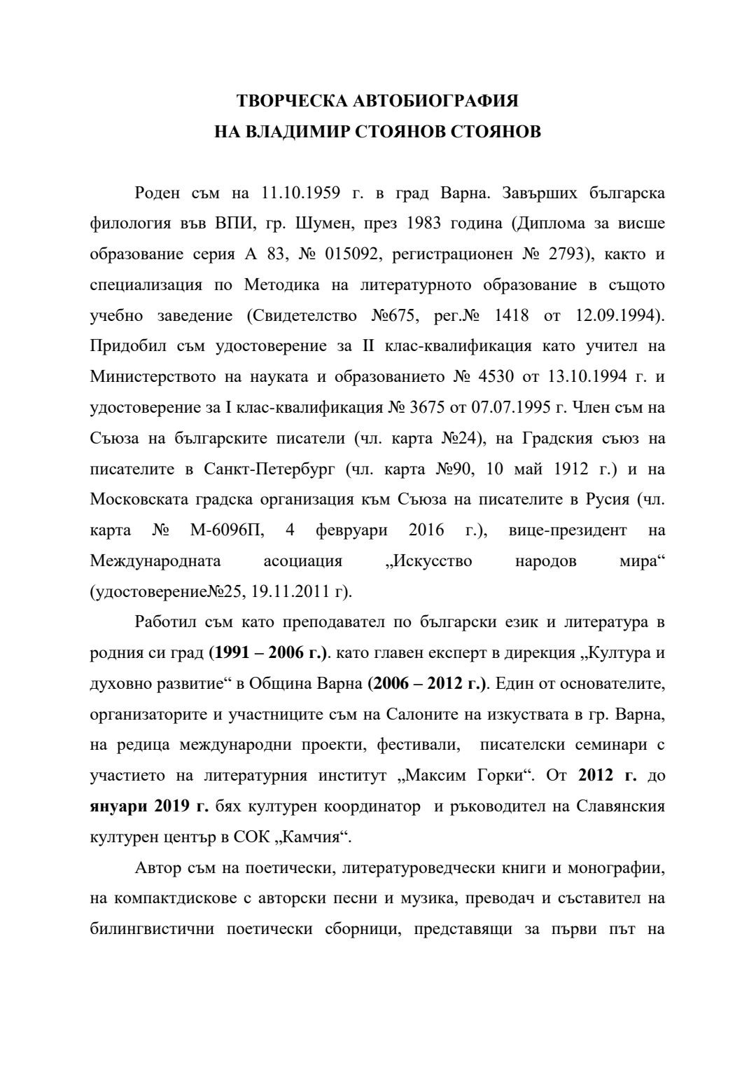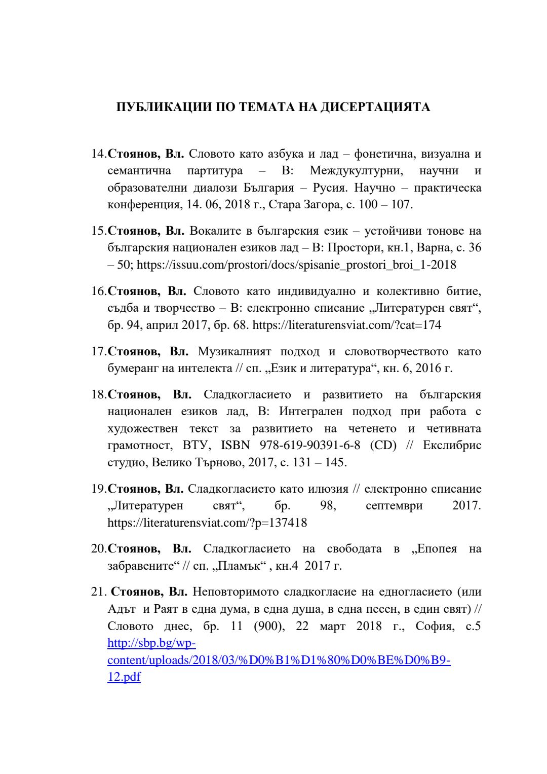 Слово и музика в обучението по литература в училище (5 – 12 клас) : Автореферат / Владимир Стоянов Стоянов ; Науч. ръководител Радослав Димитров Радев