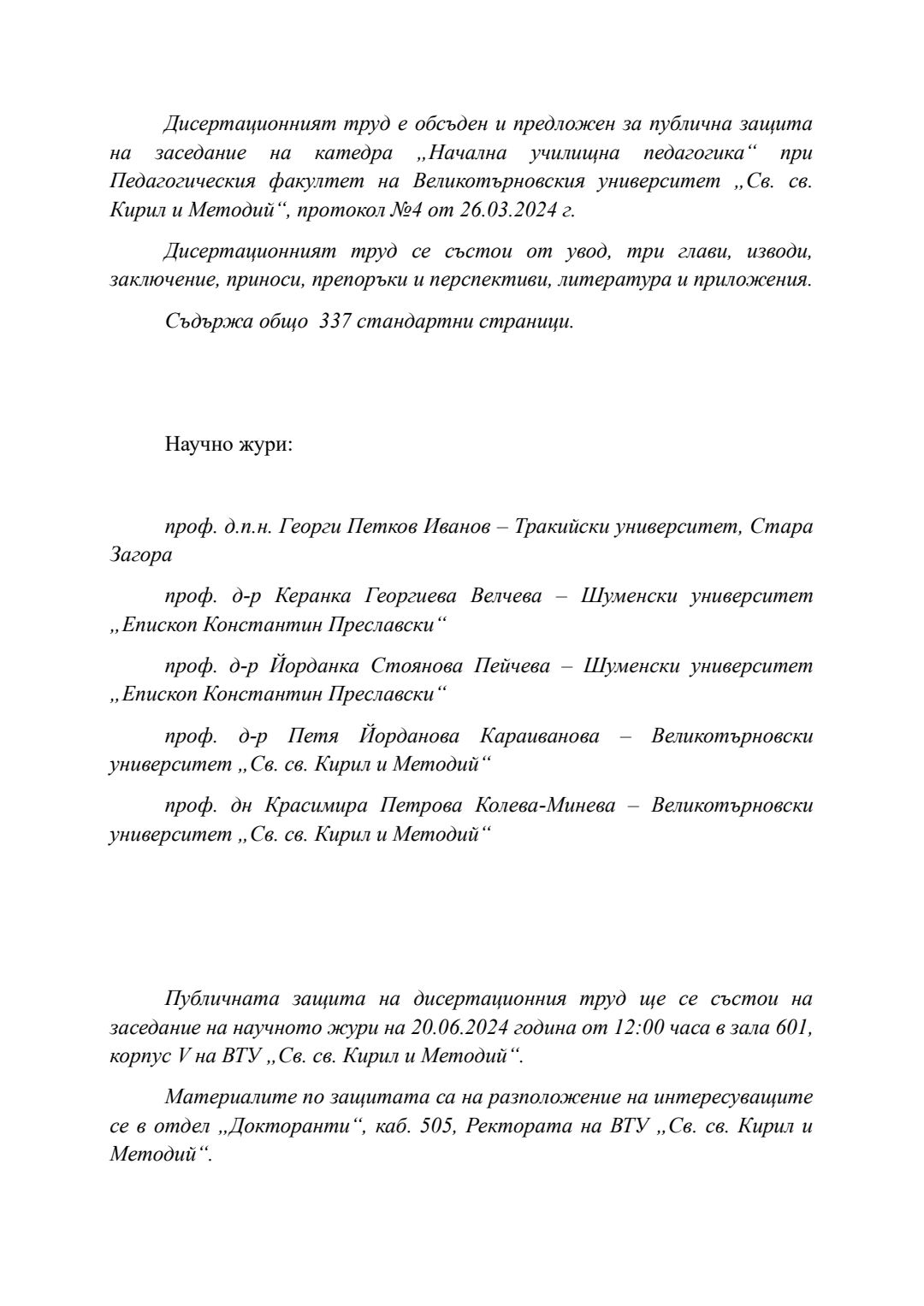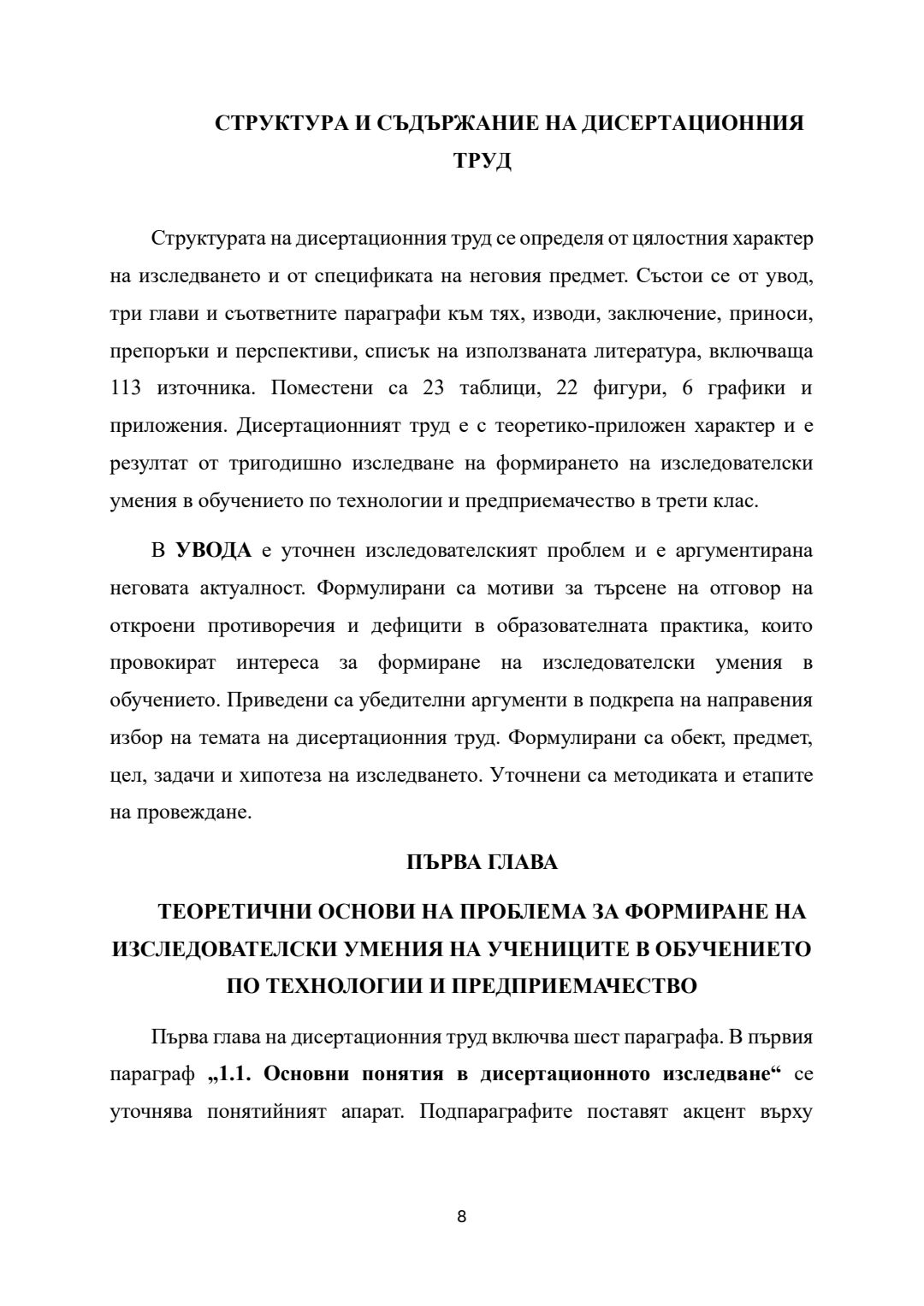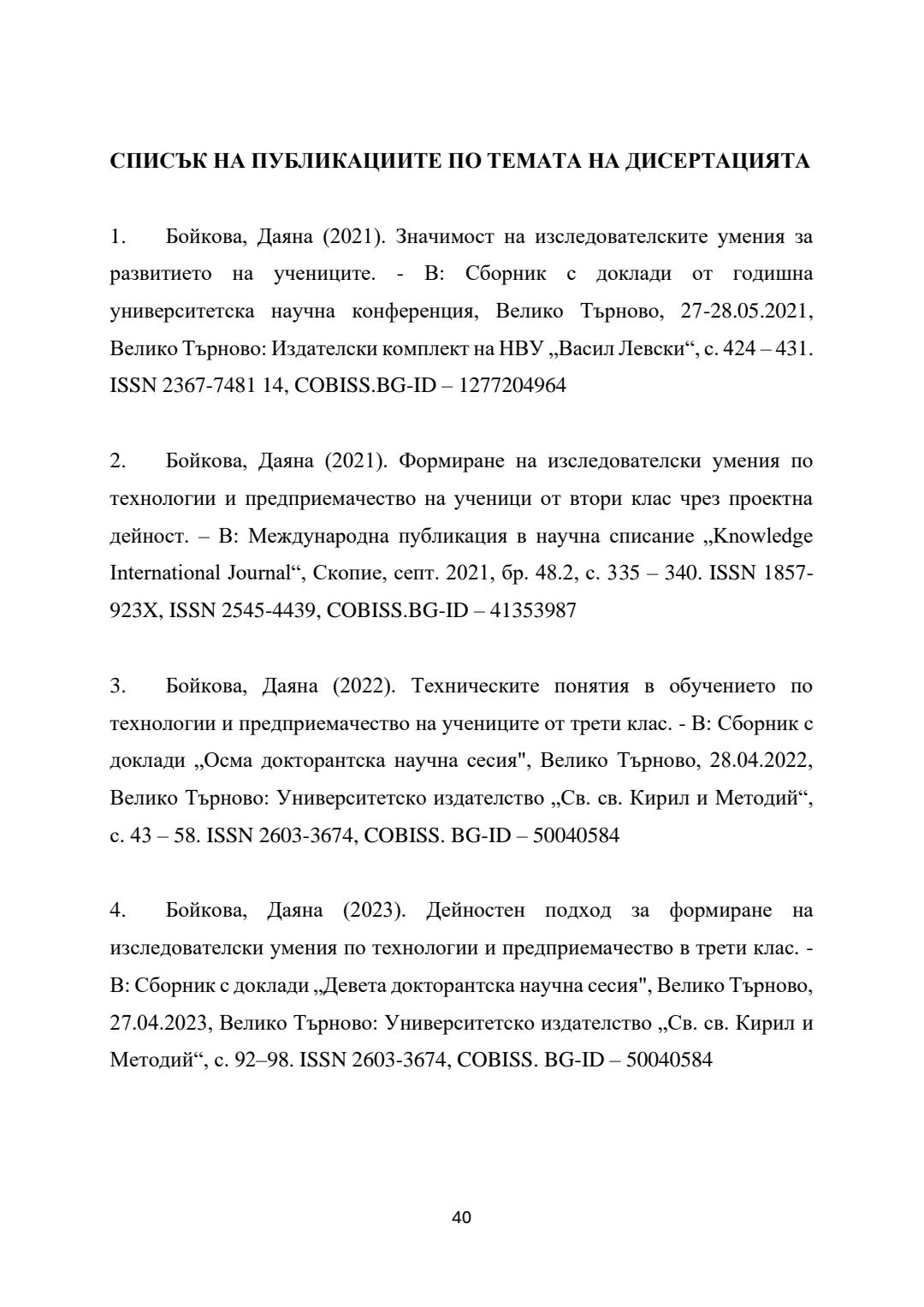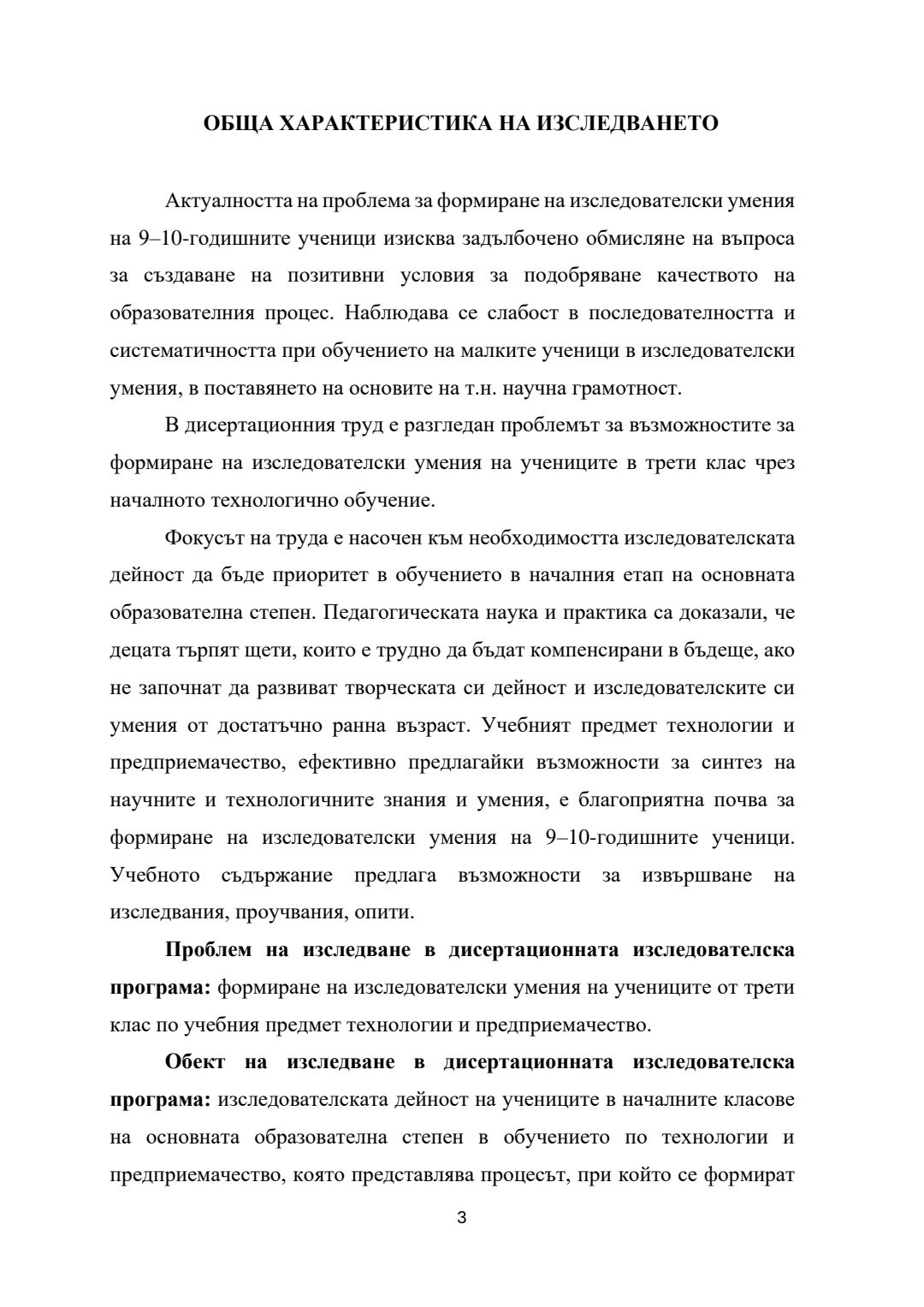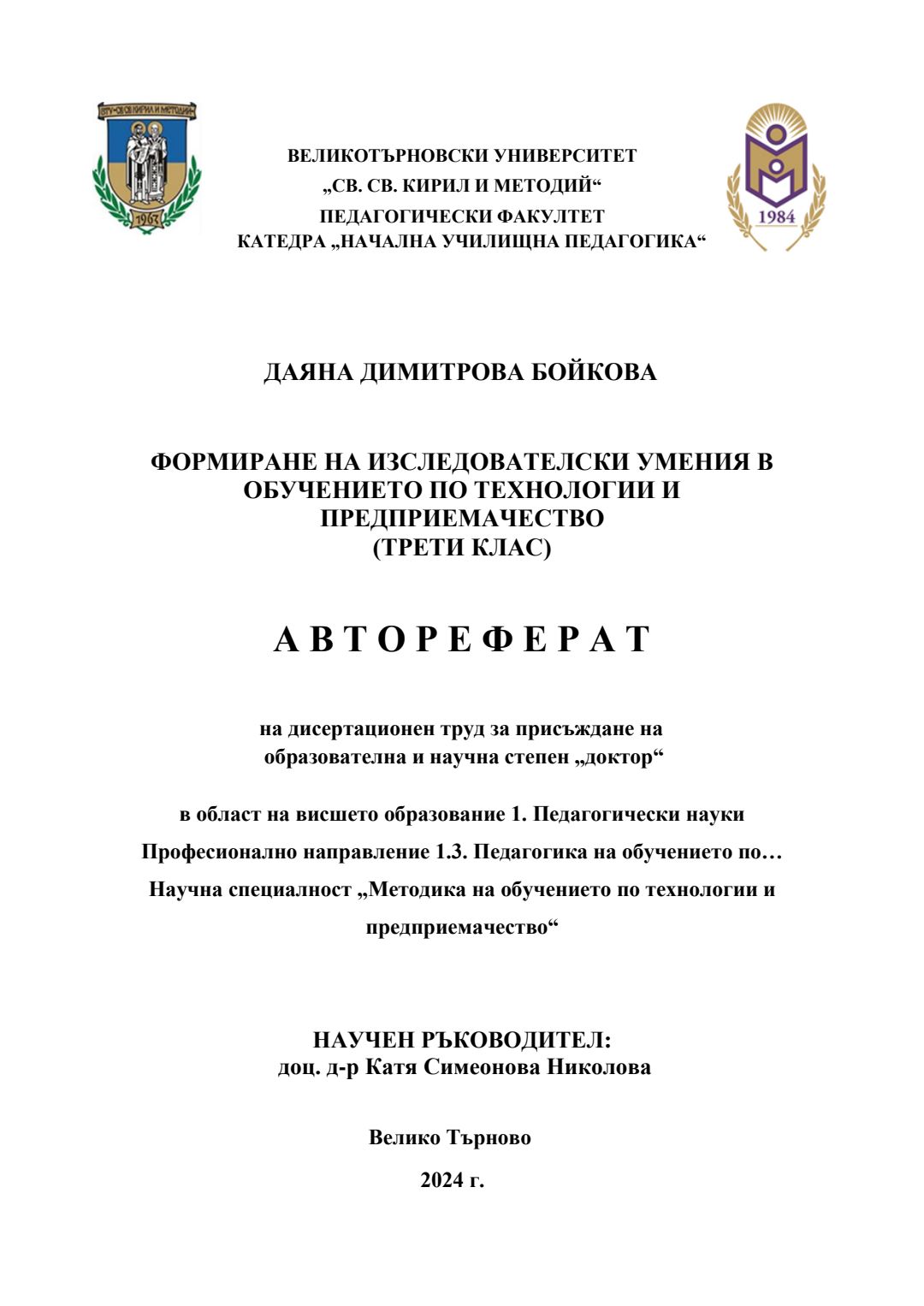 Формиране на изследователски умения в обучението по технологии и предприемачество (трети клас) : Автореферат / Даяна Димитрова Бойкова ; Науч. ръководител Катя Симеонова