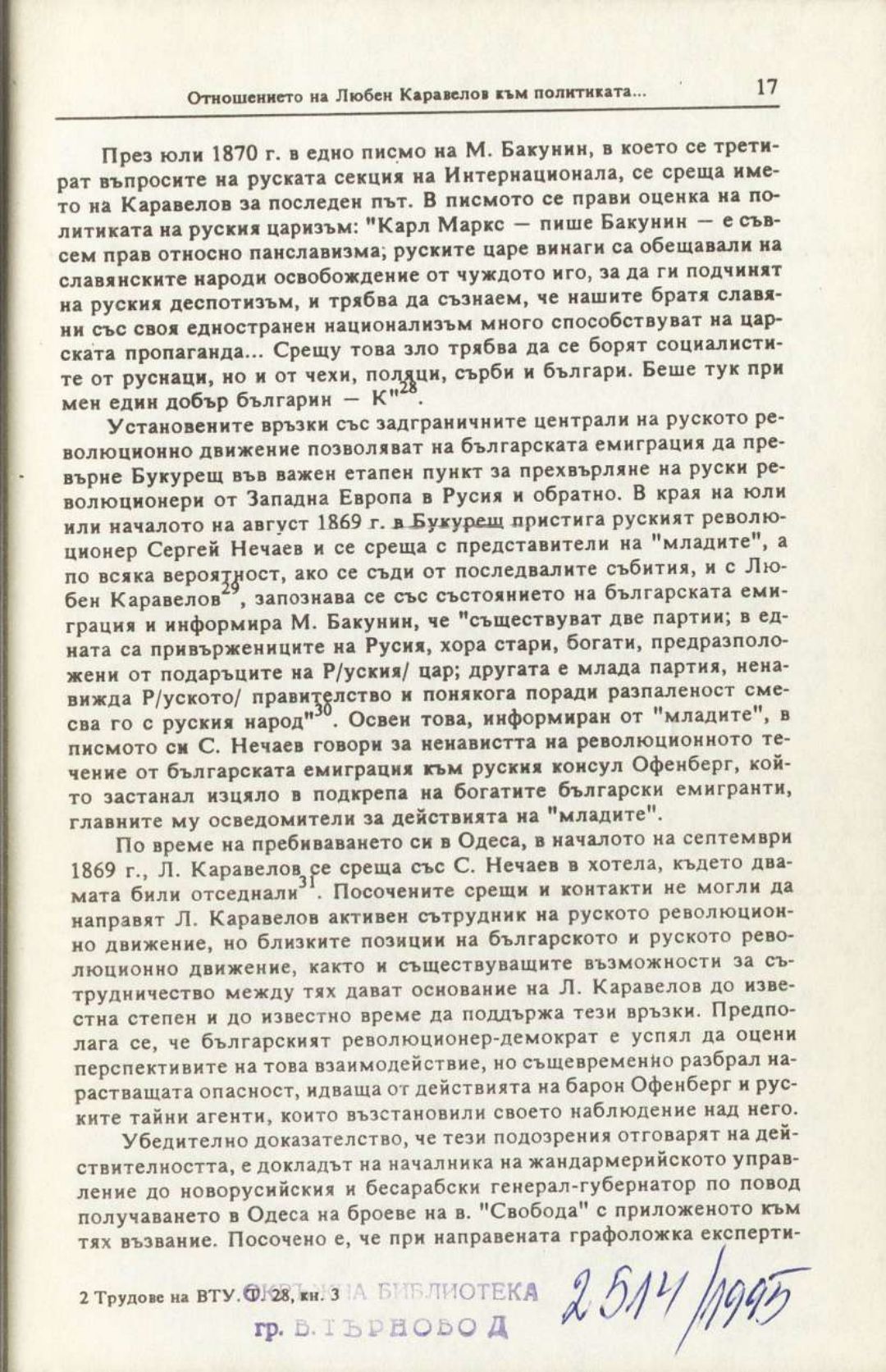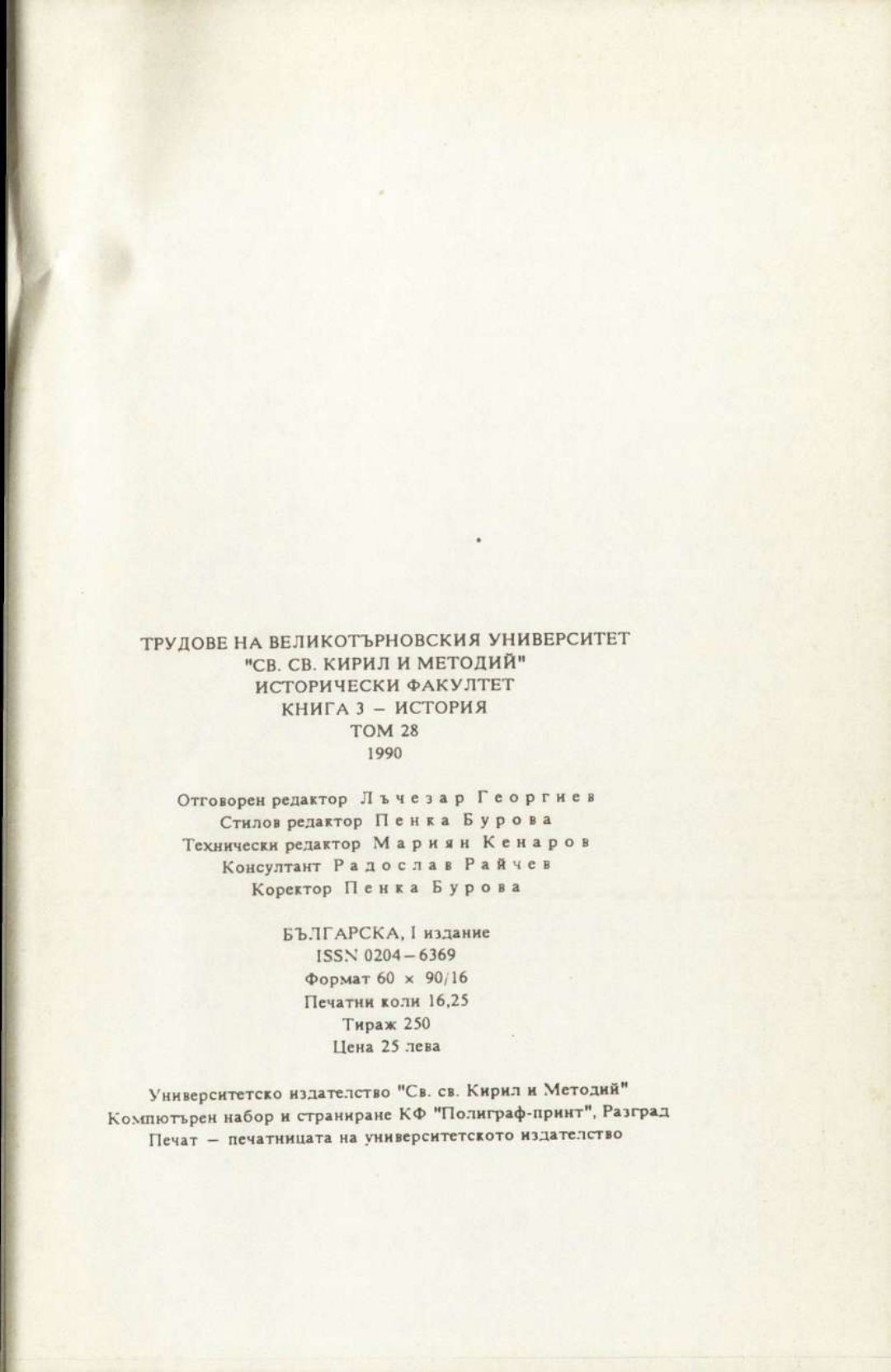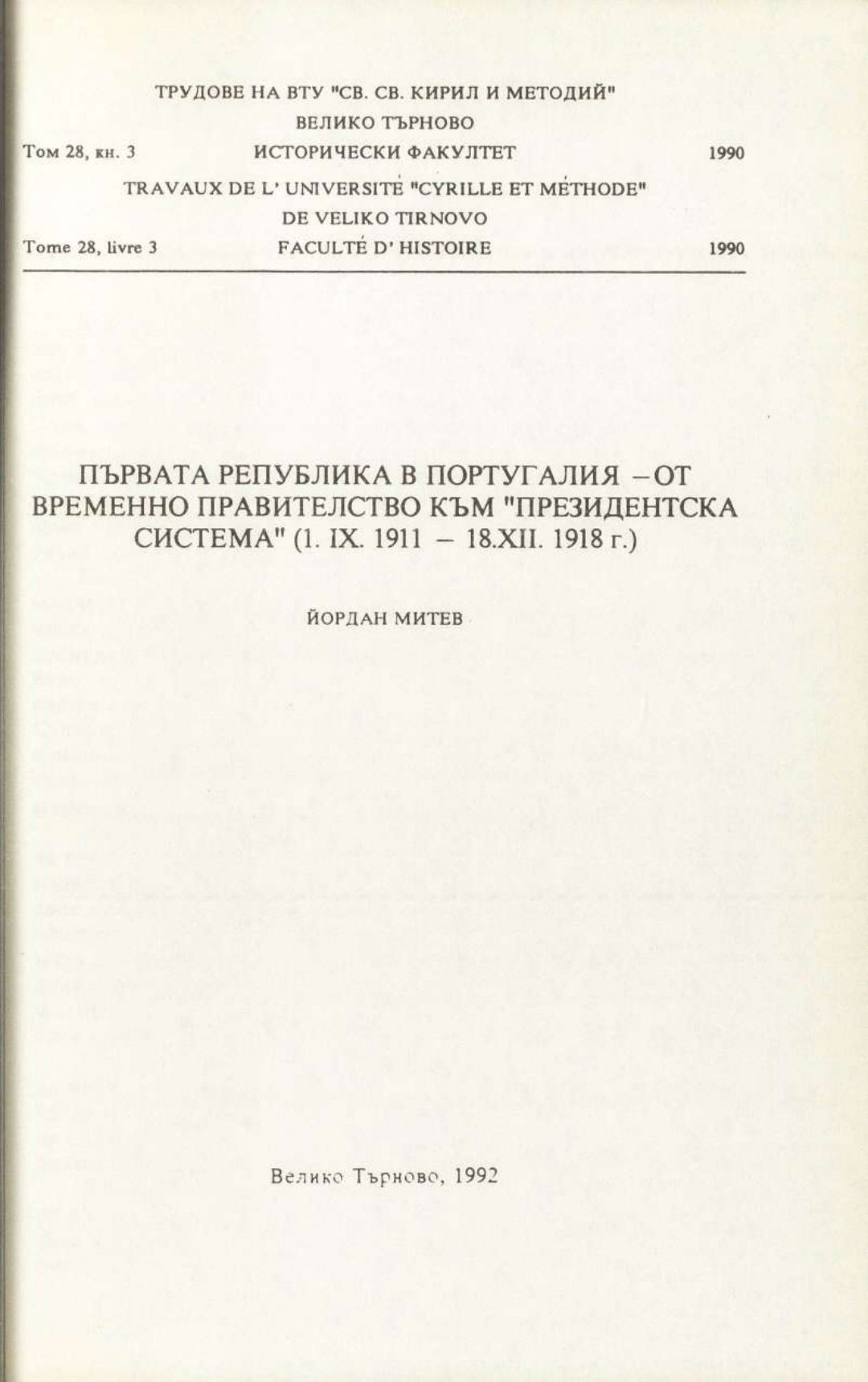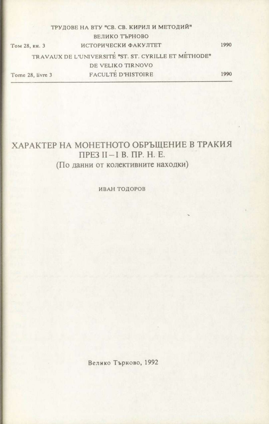 Том 28. Кн. 3. Трудове на Великотърновския университет "Св. св. Кирил и Методий". Исторически факултет = Travaux de L'universite St. St. Cyrille et Methode de V. Tirnovo. Faculte histoire