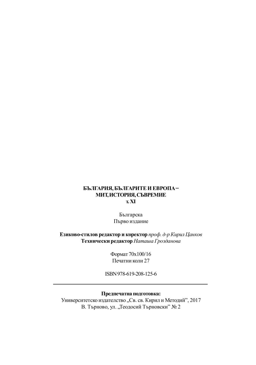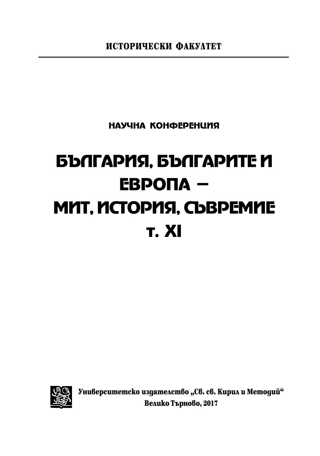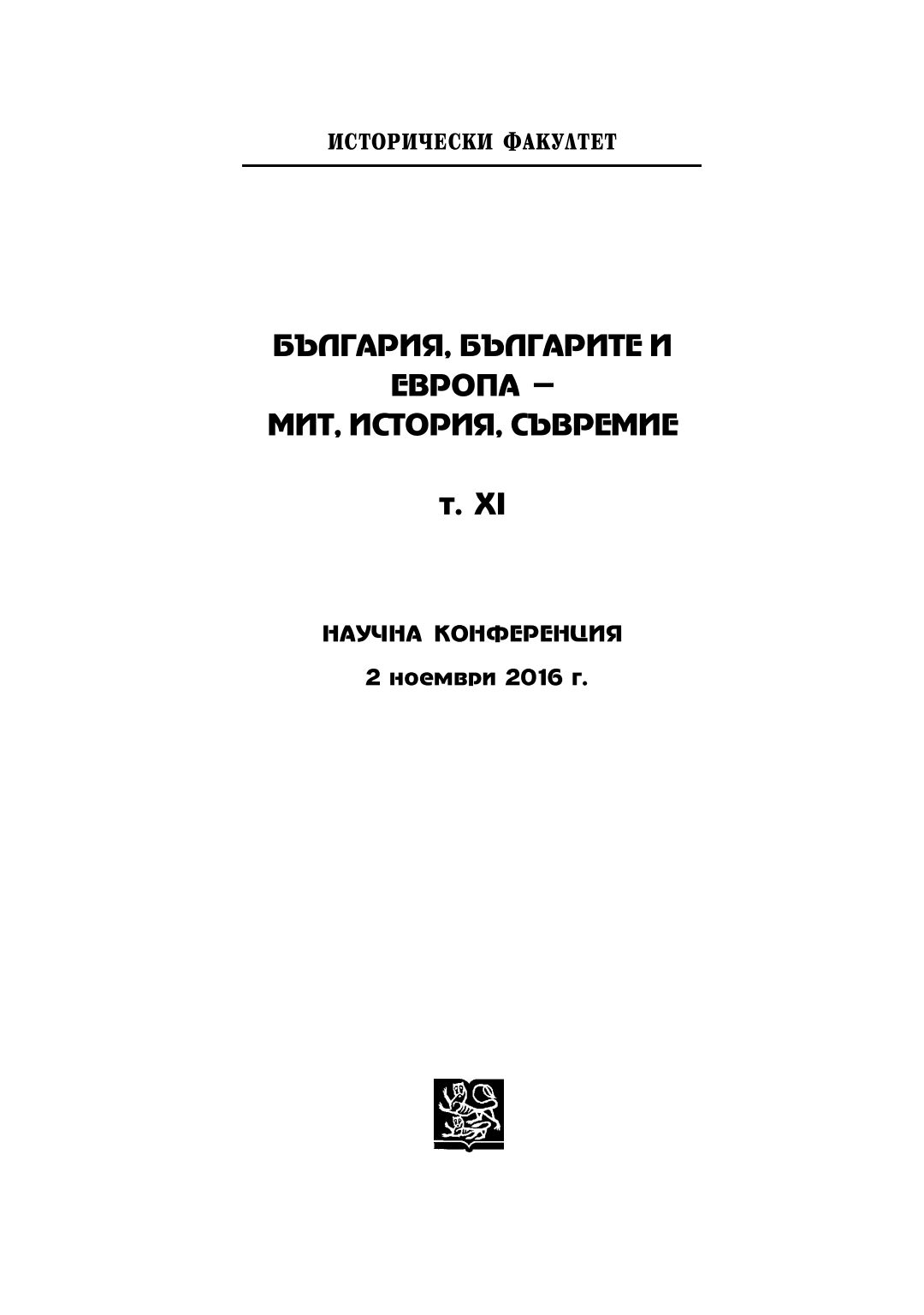 [Т. 11.] България, българите и Европа - мит, история, съвремие : Научна конференция 2 ноември 2016, В. Търново