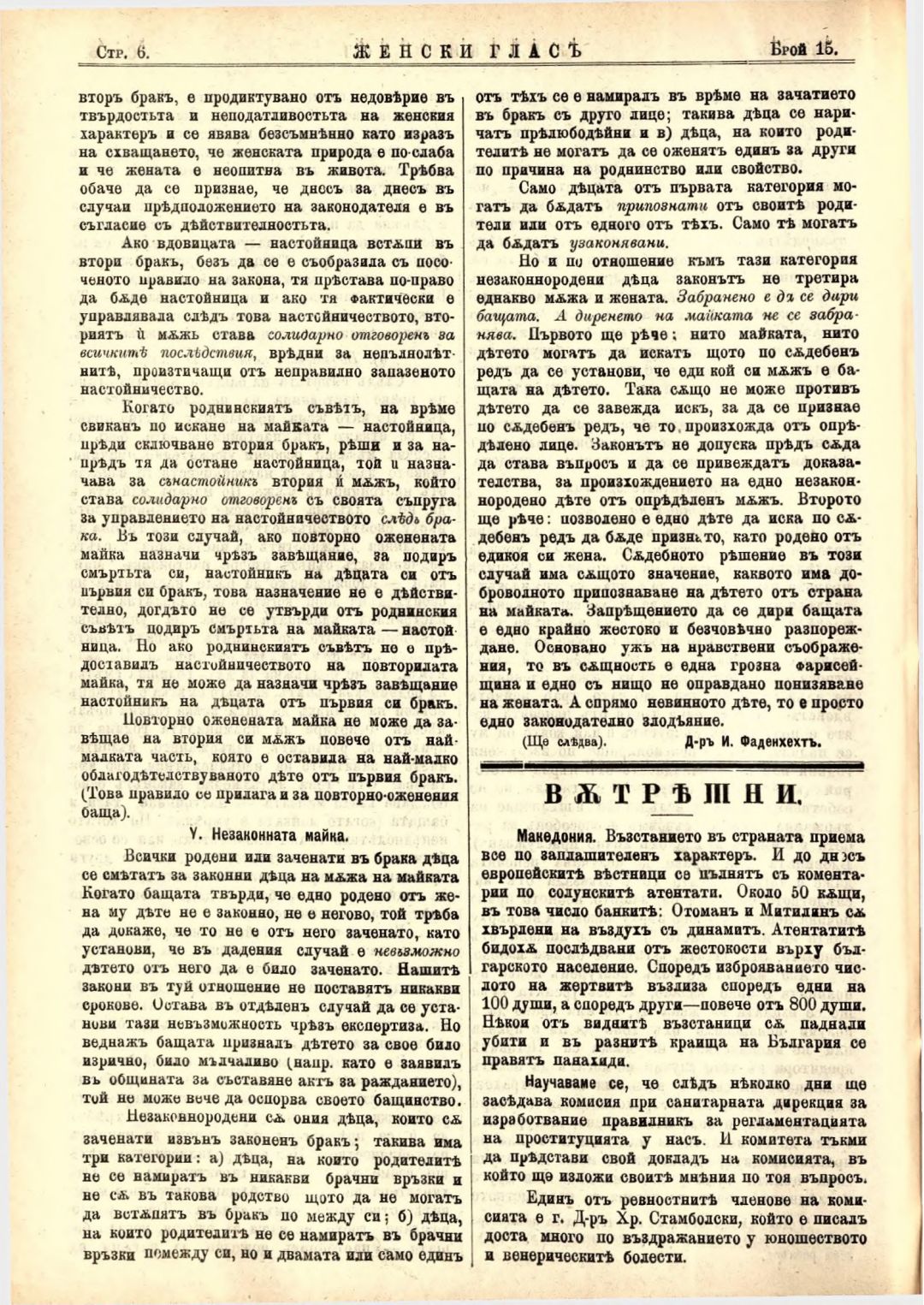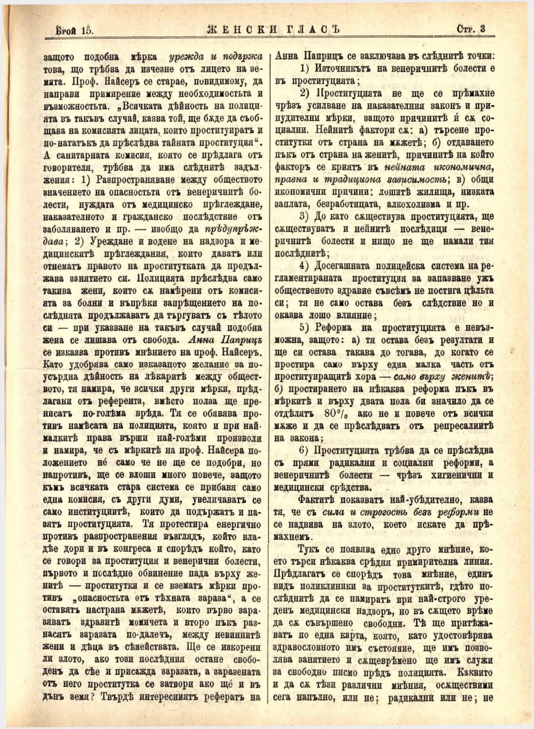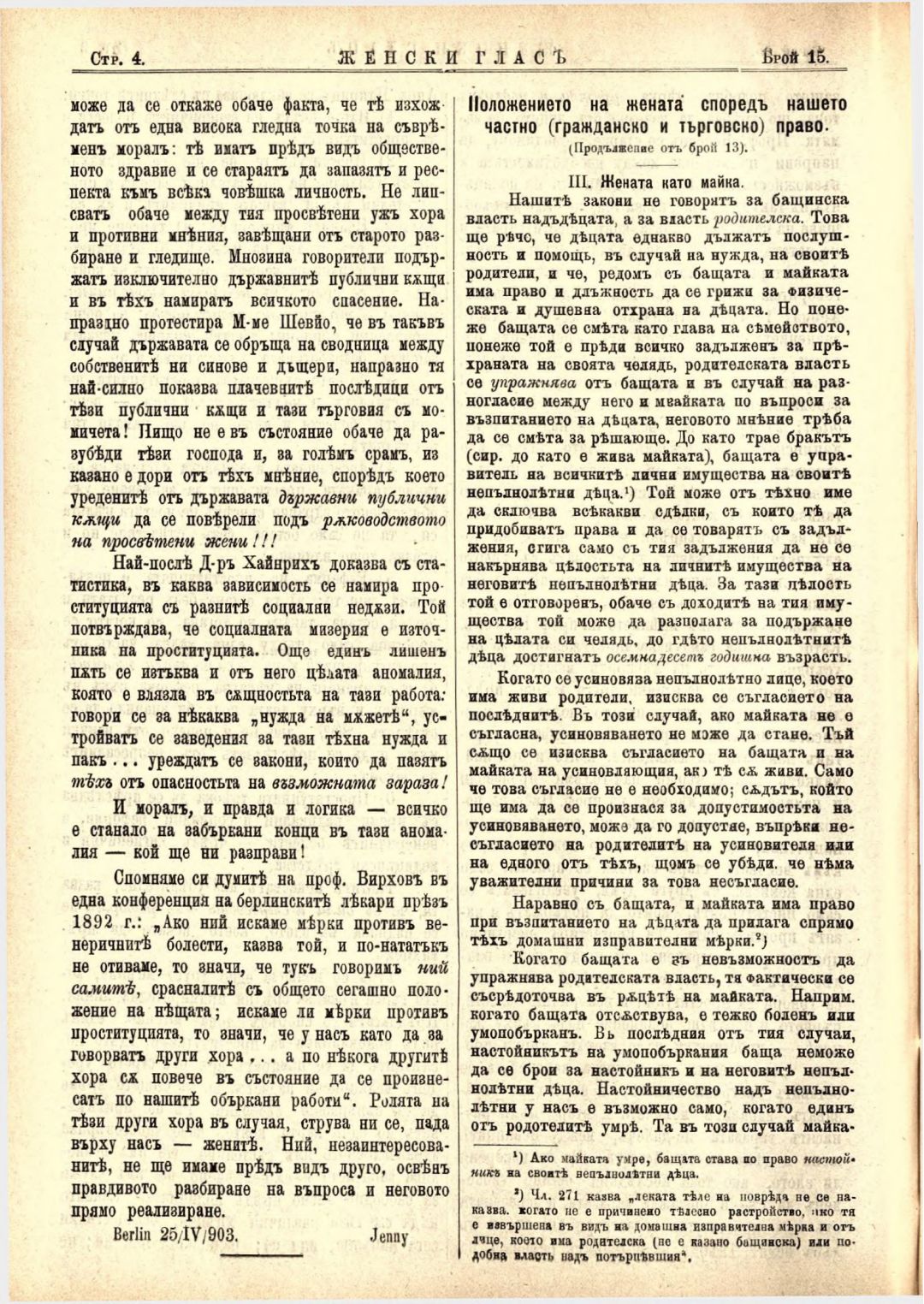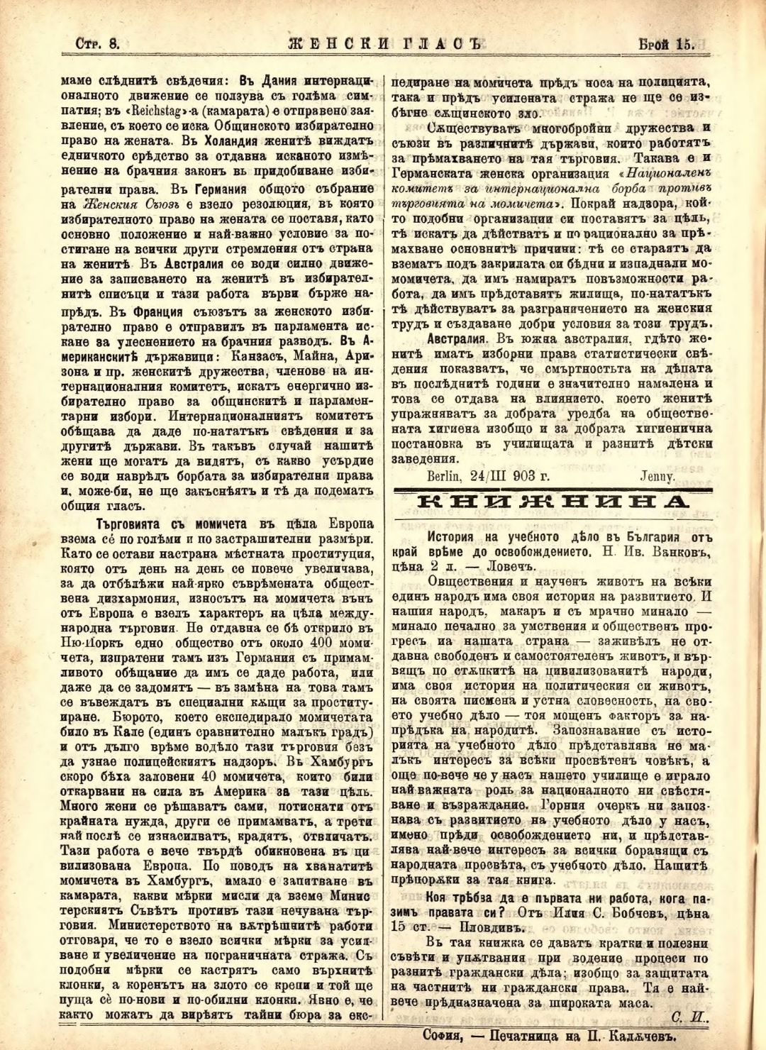 Год. 4,№ 15 Женски глас : Орган на българския женски съюз