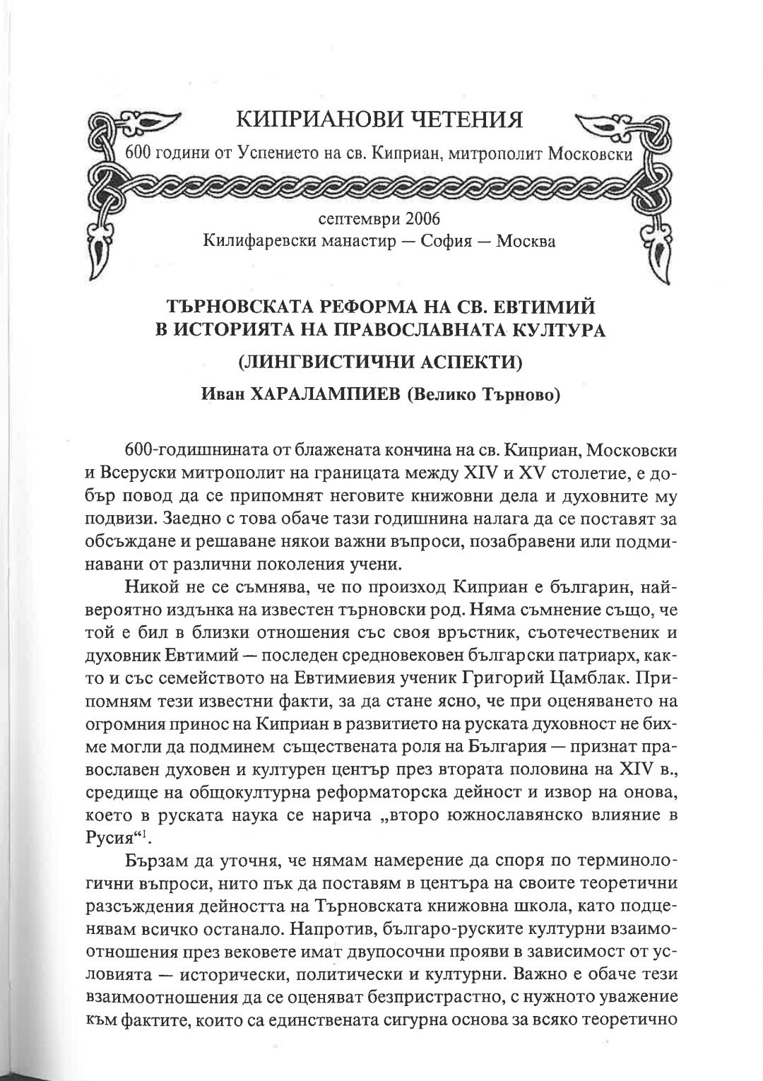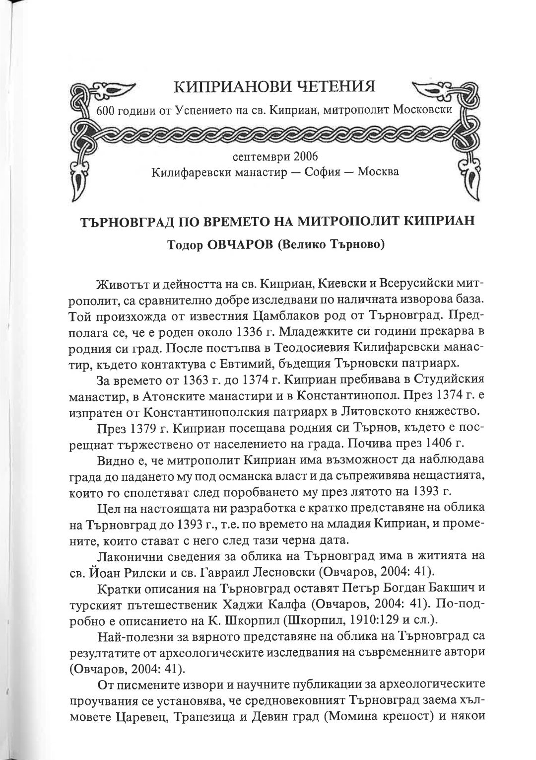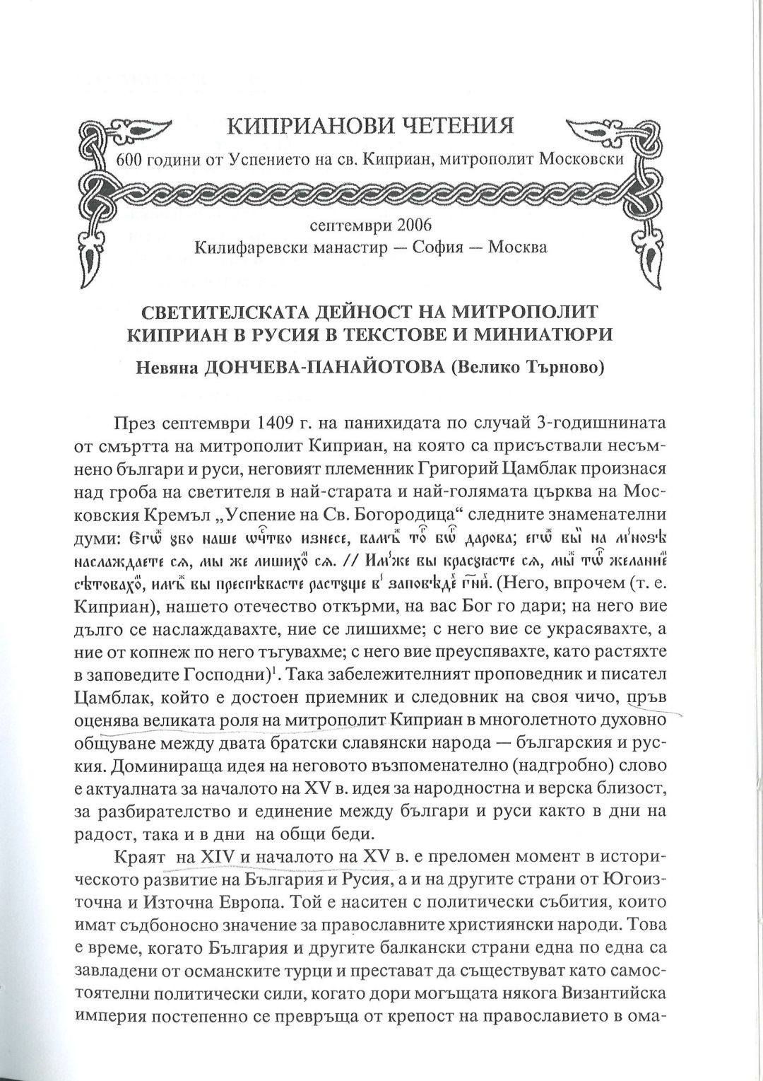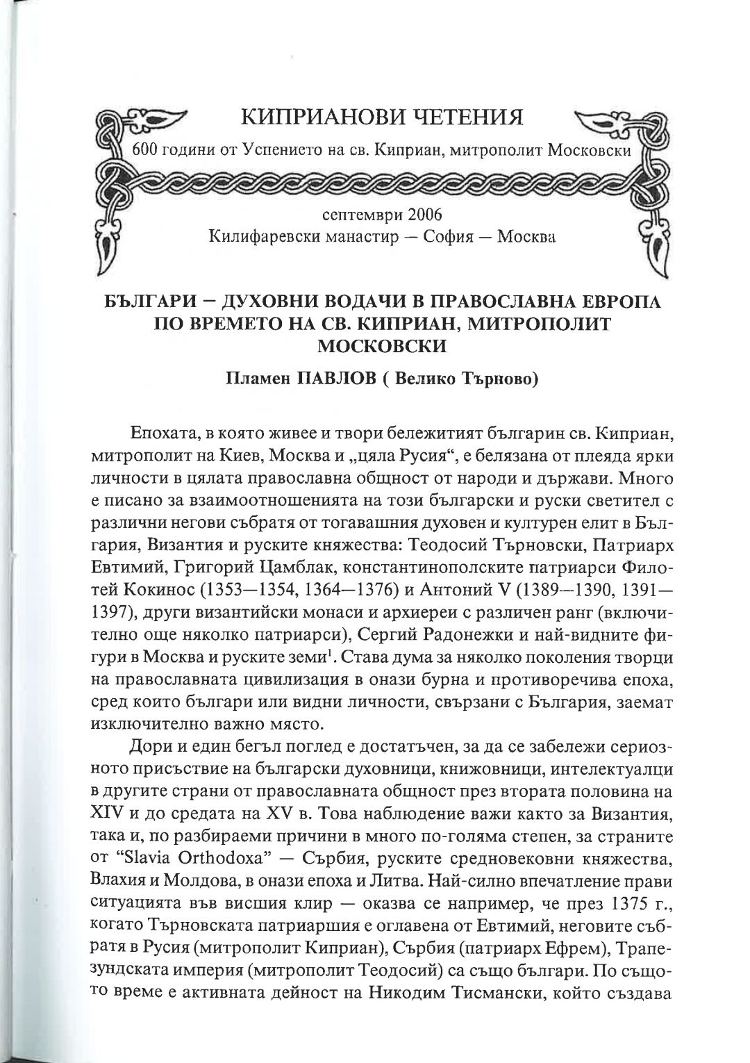 Киприанови четения : 600 години от успението на Св. Киприан, митрополит Московски, септември 2006 г. Калифаревски манастир "Рождество Богородично" - София - Москва : Научен сборник