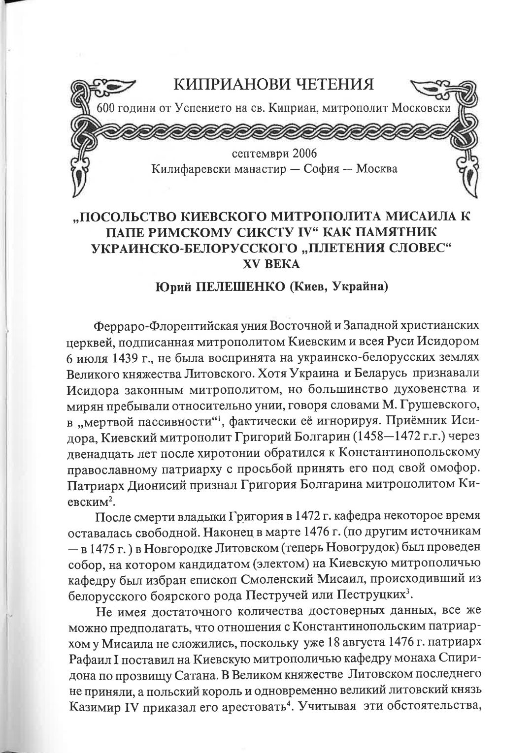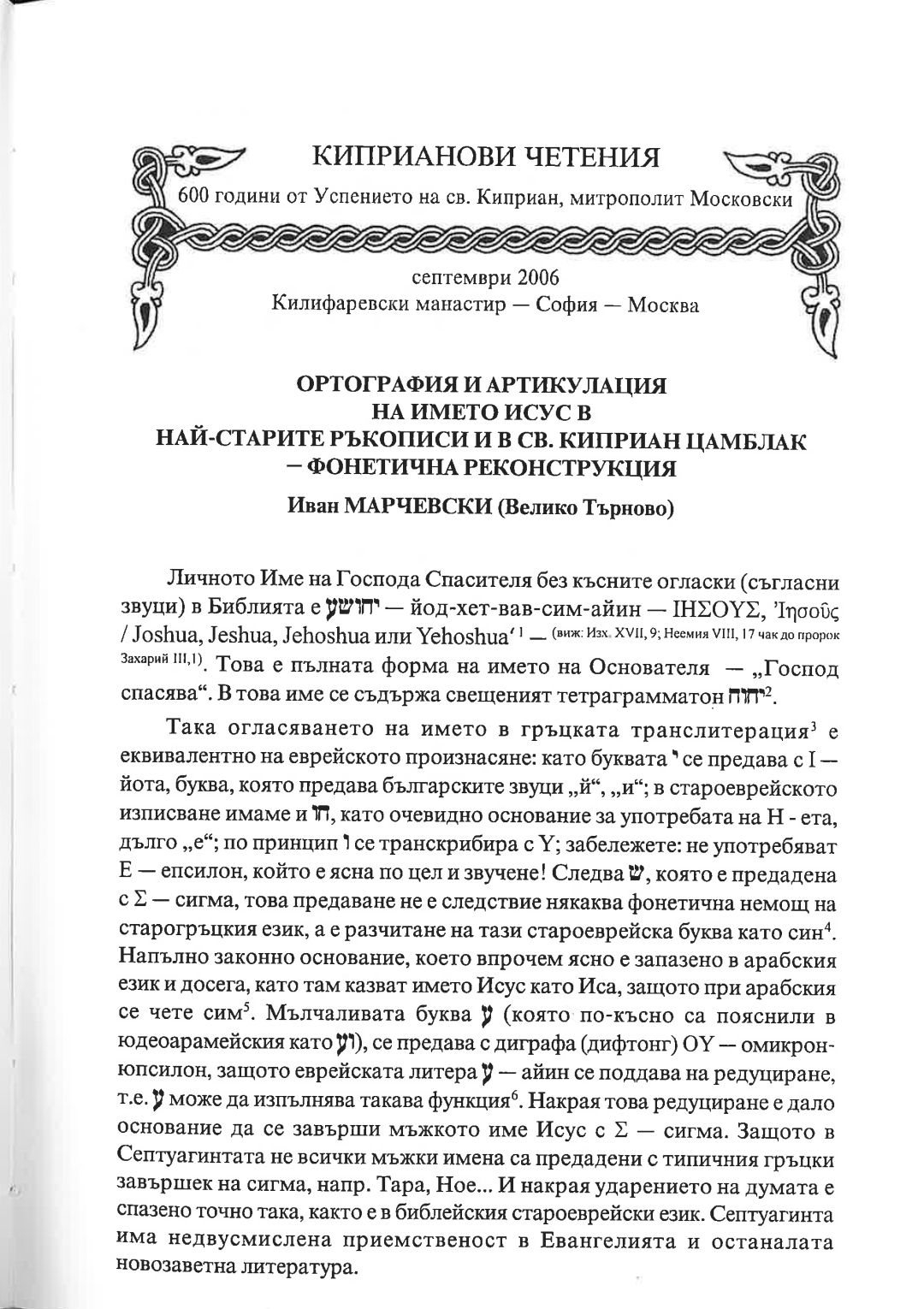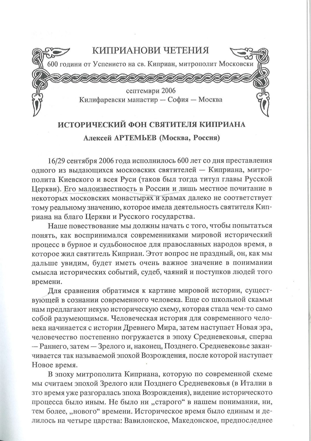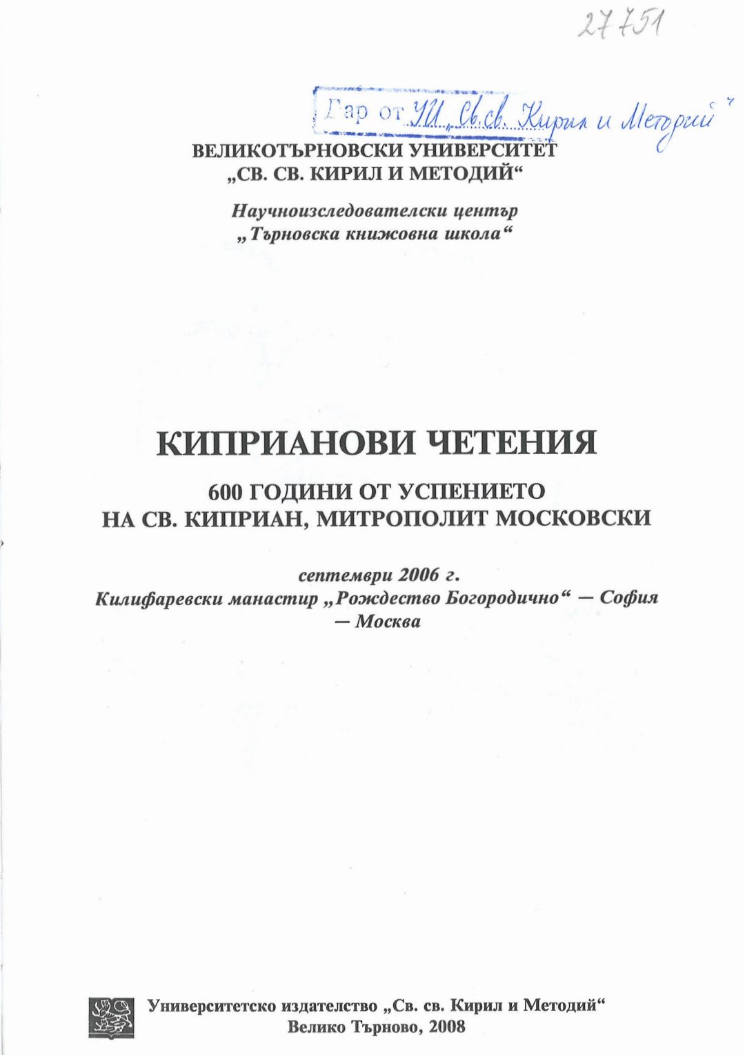 Киприанови четения : 600 години от успението на Св. Киприан, митрополит Московски, септември 2006 г. Калифаревски манастир "Рождество Богородично" - София - Москва : Научен сборник