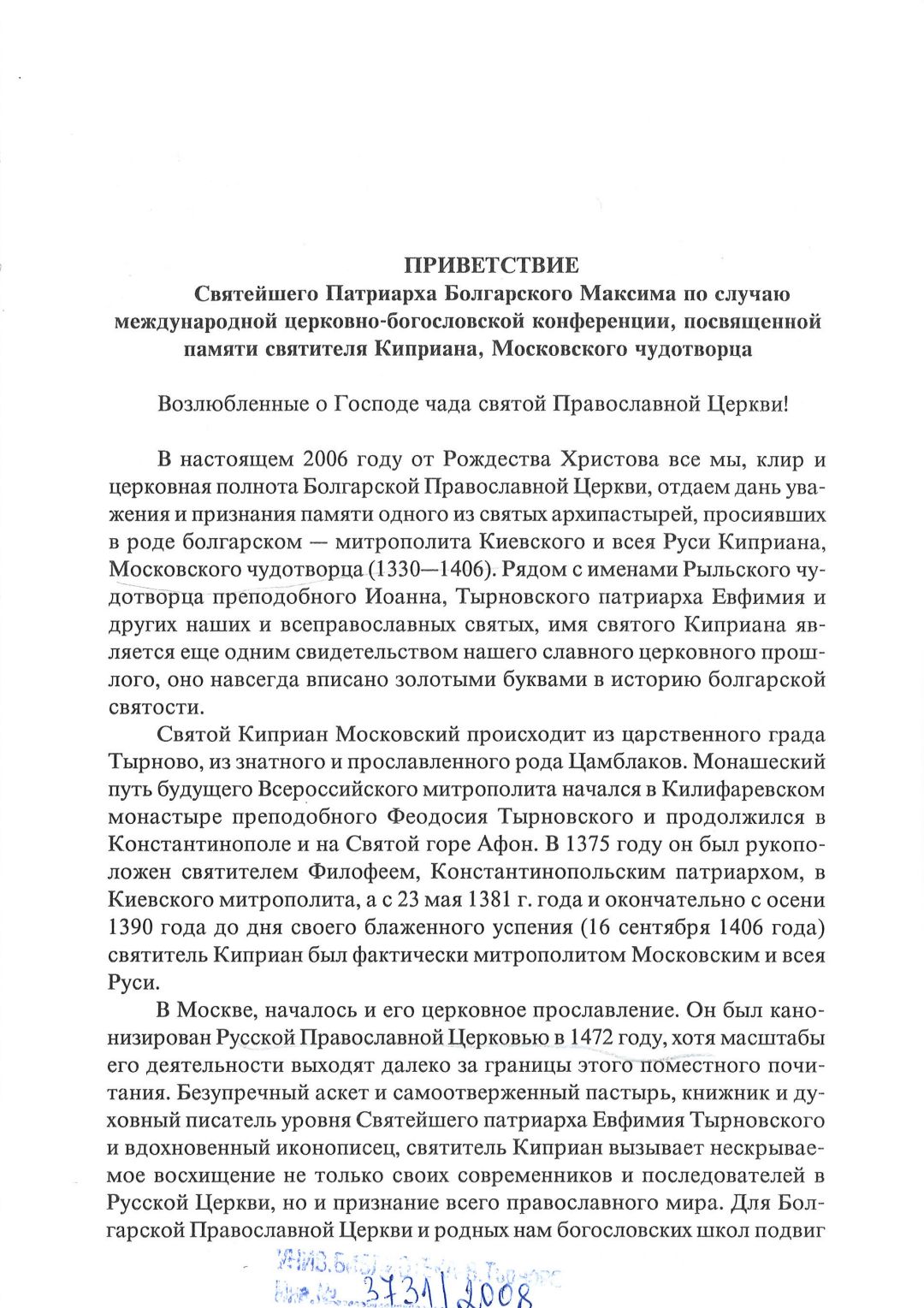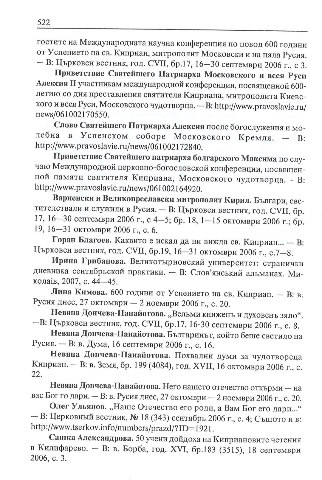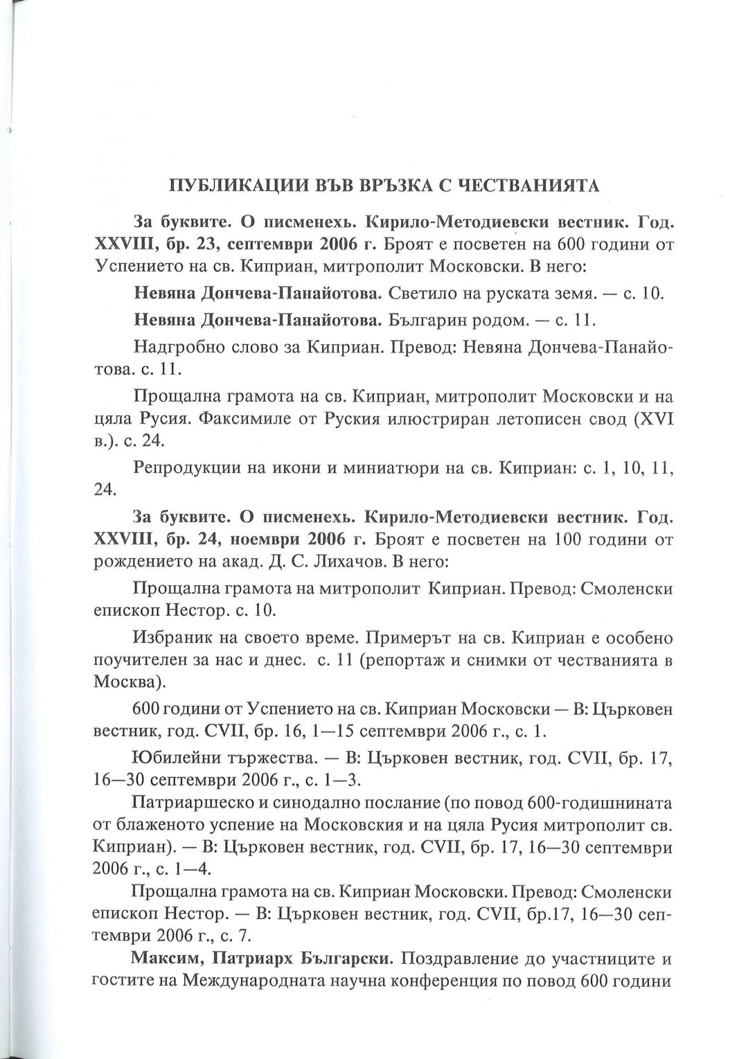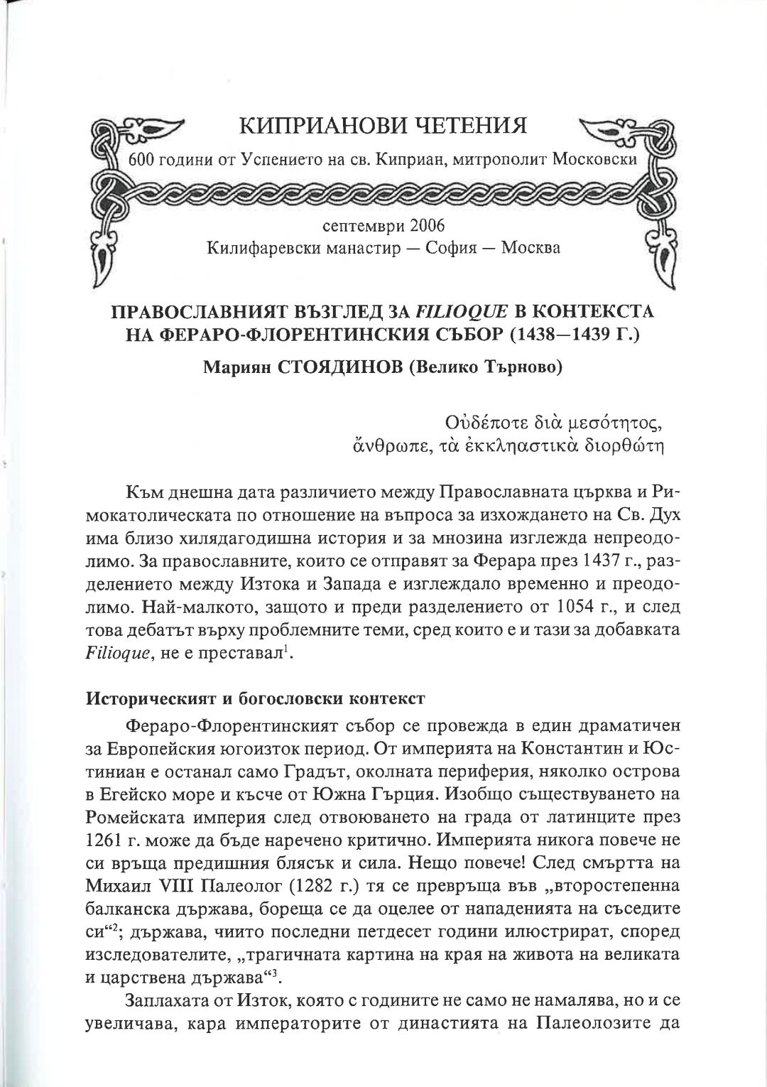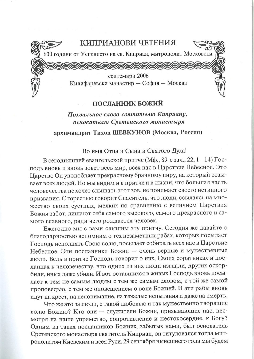 Киприанови четения : 600 години от успението на Св. Киприан, митрополит Московски, септември 2006 г. Калифаревски манастир "Рождество Богородично" - София - Москва : Научен сборник