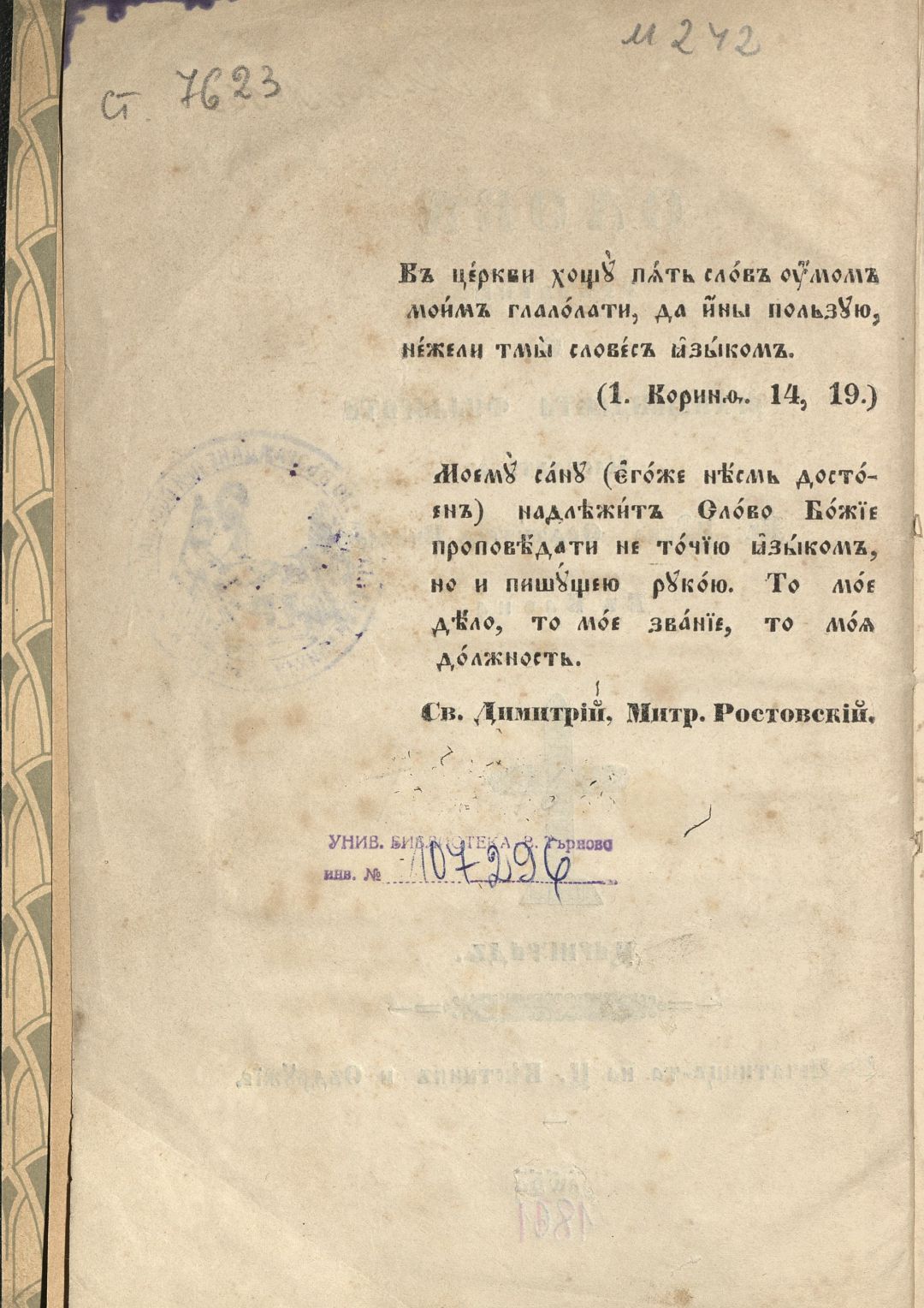 Слова, говорени от архимандрита Филарета, настоятеля в църква святителя Николая въ[в] Варна