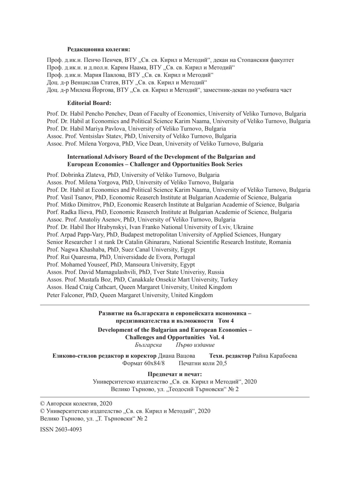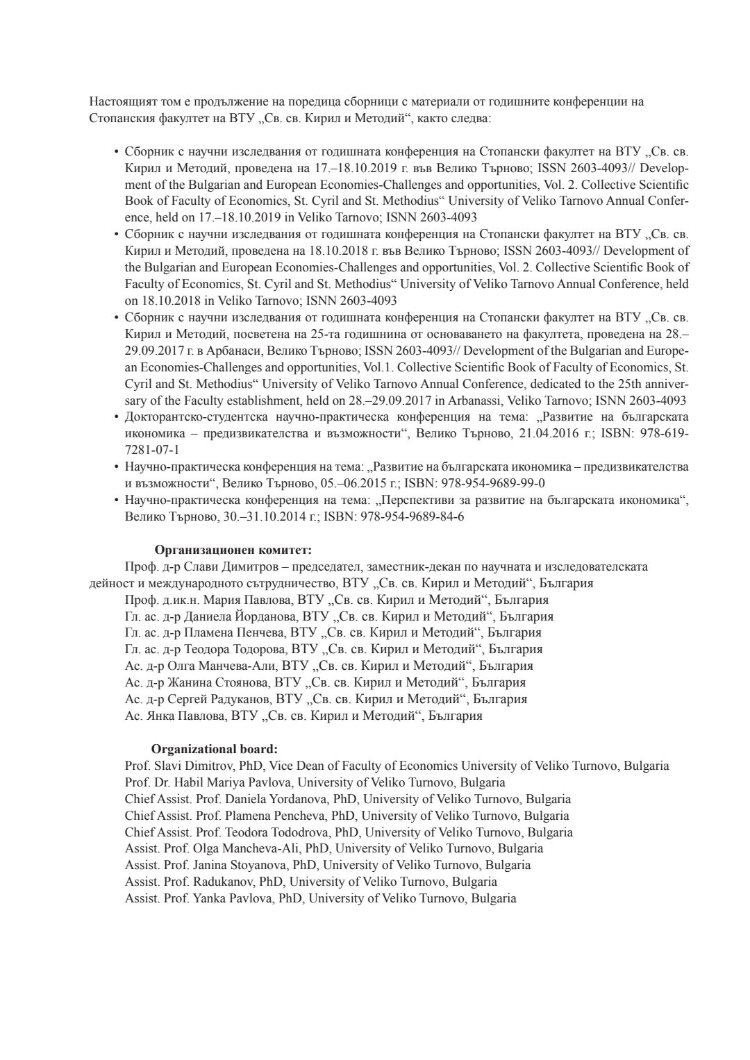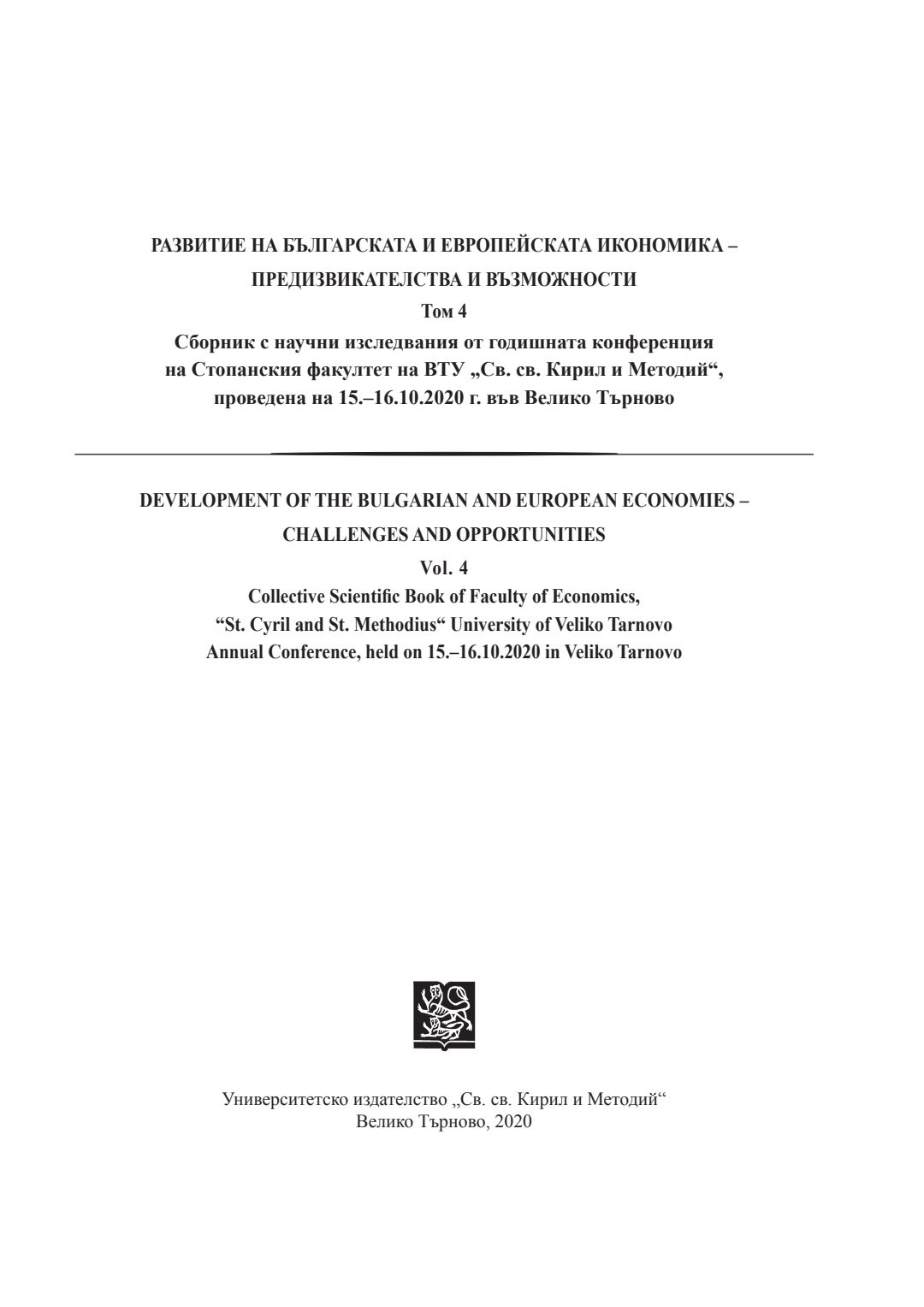 Т. 4. Развитие на българската и европейската икономика - предизвикателства и възможности = Development of the Bulgarian and European economics - challenges and opportunities