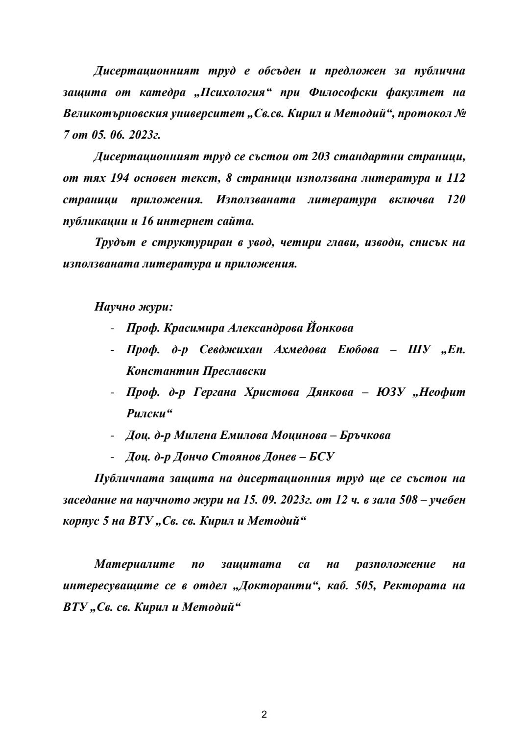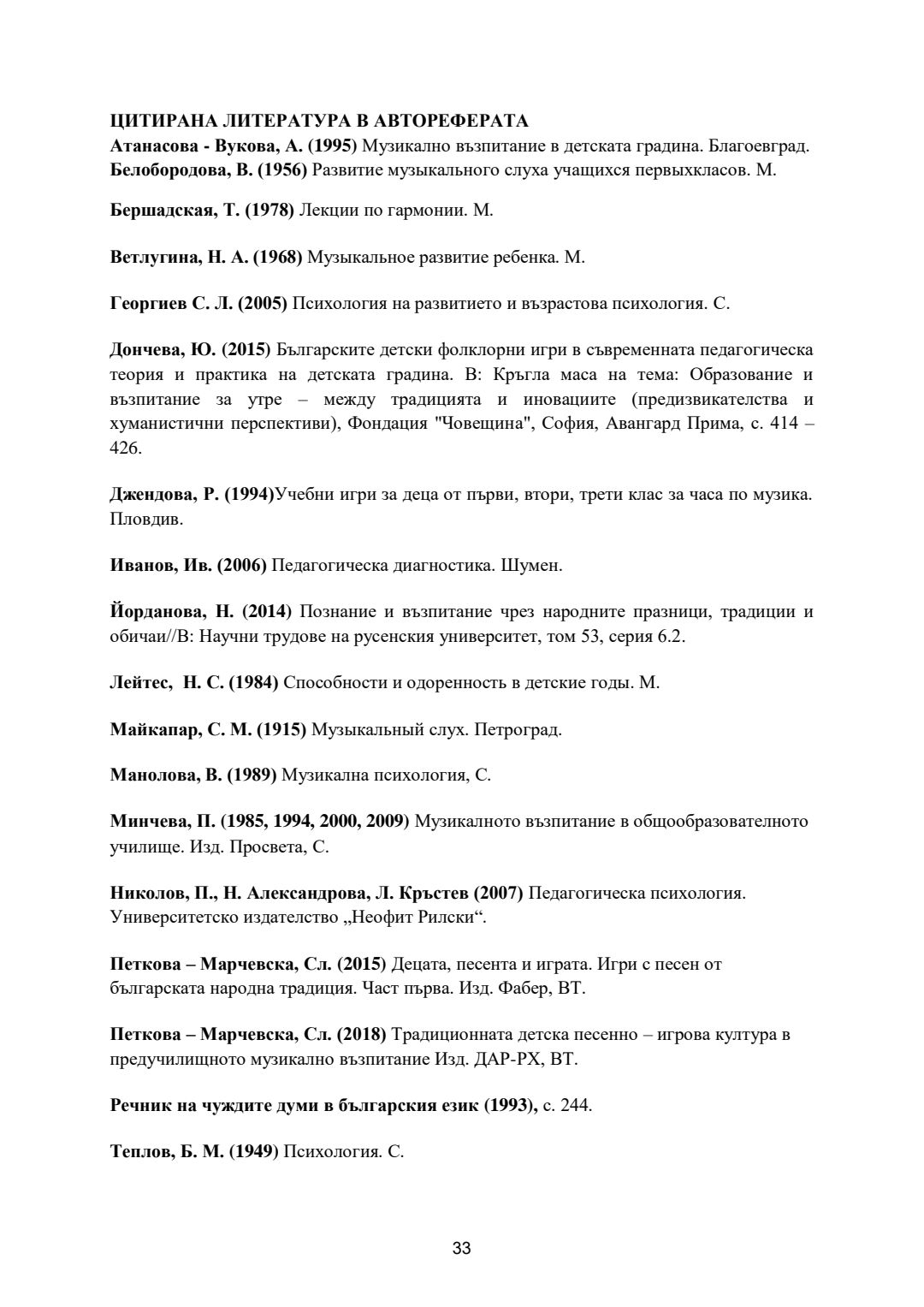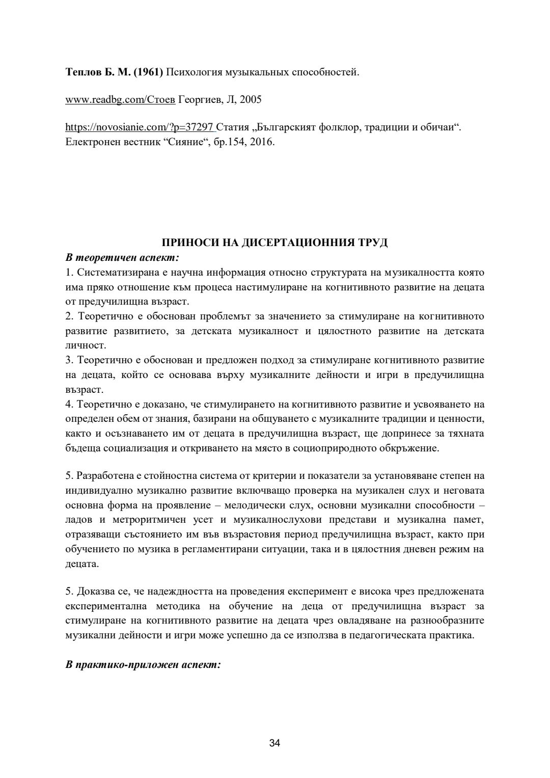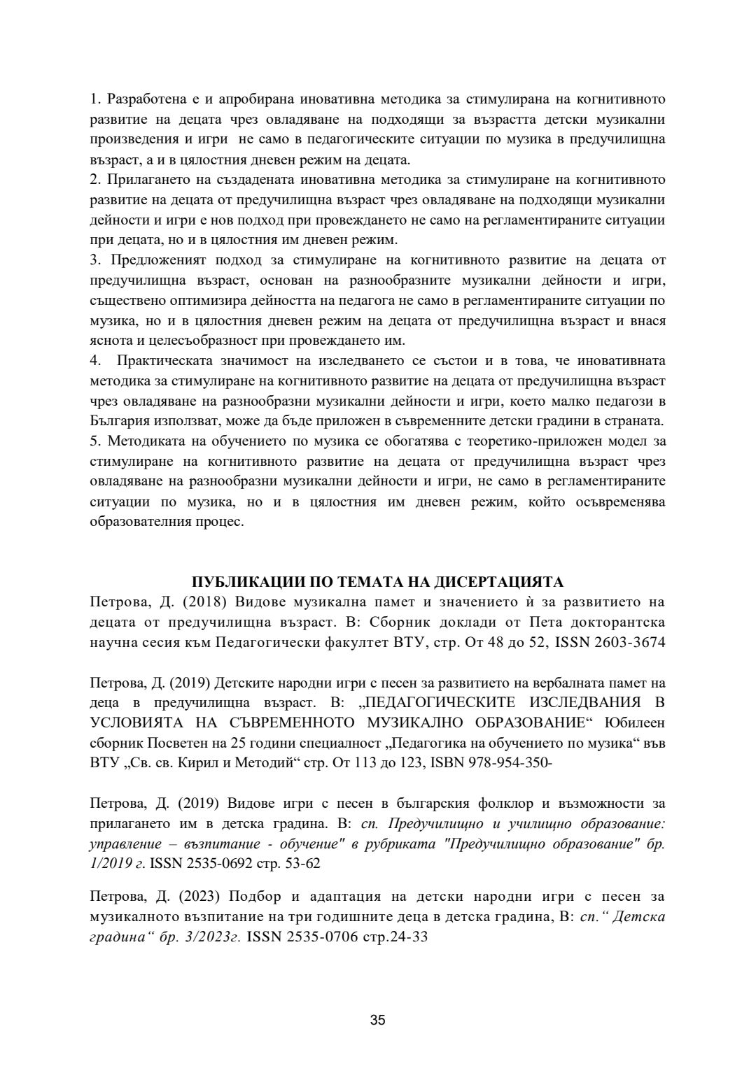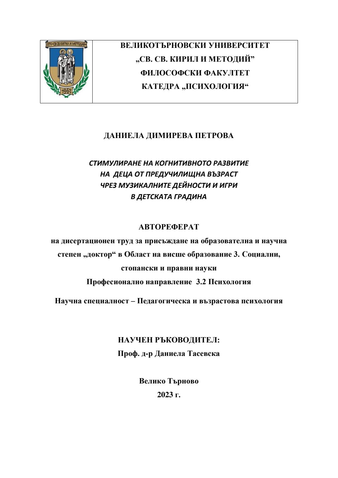 Стимулиране на когнитивното развитие на деца от предучилищна възраст чрез музикалните дейности и игри в детската градина : Автореферат / Даниела Петрова ; Науч. ръководител Даниела Тасевска
