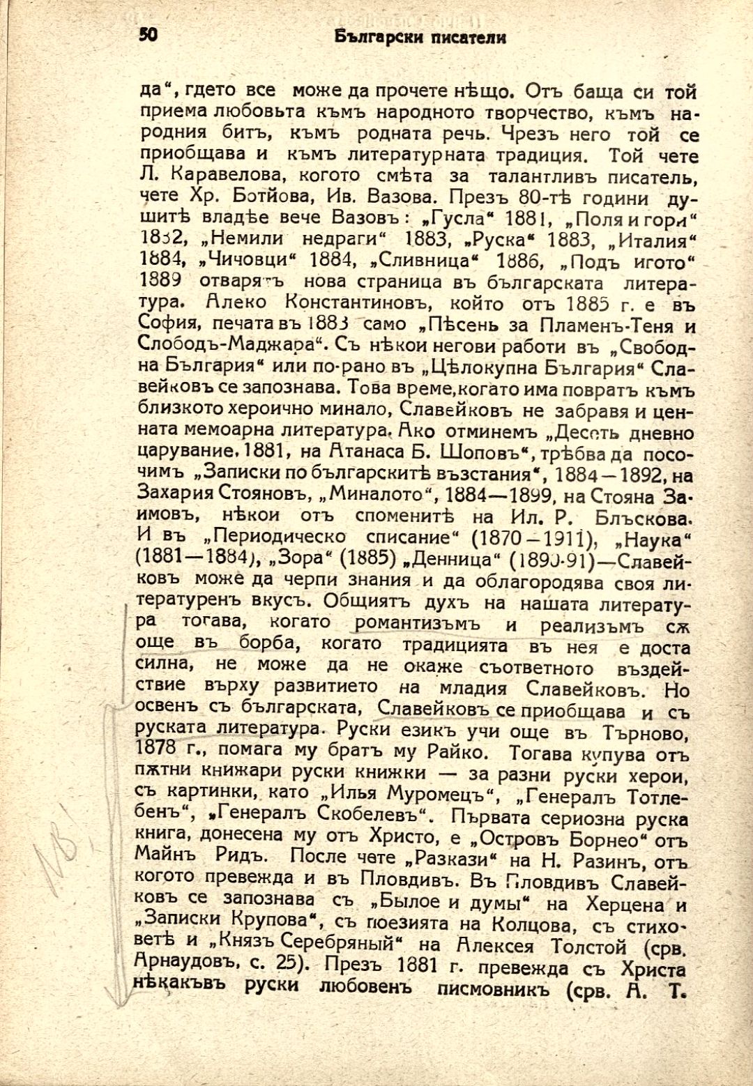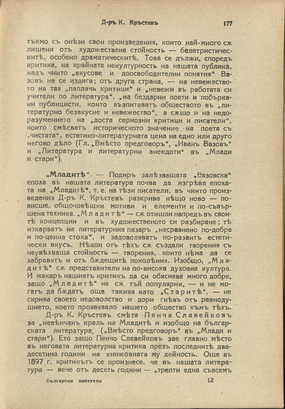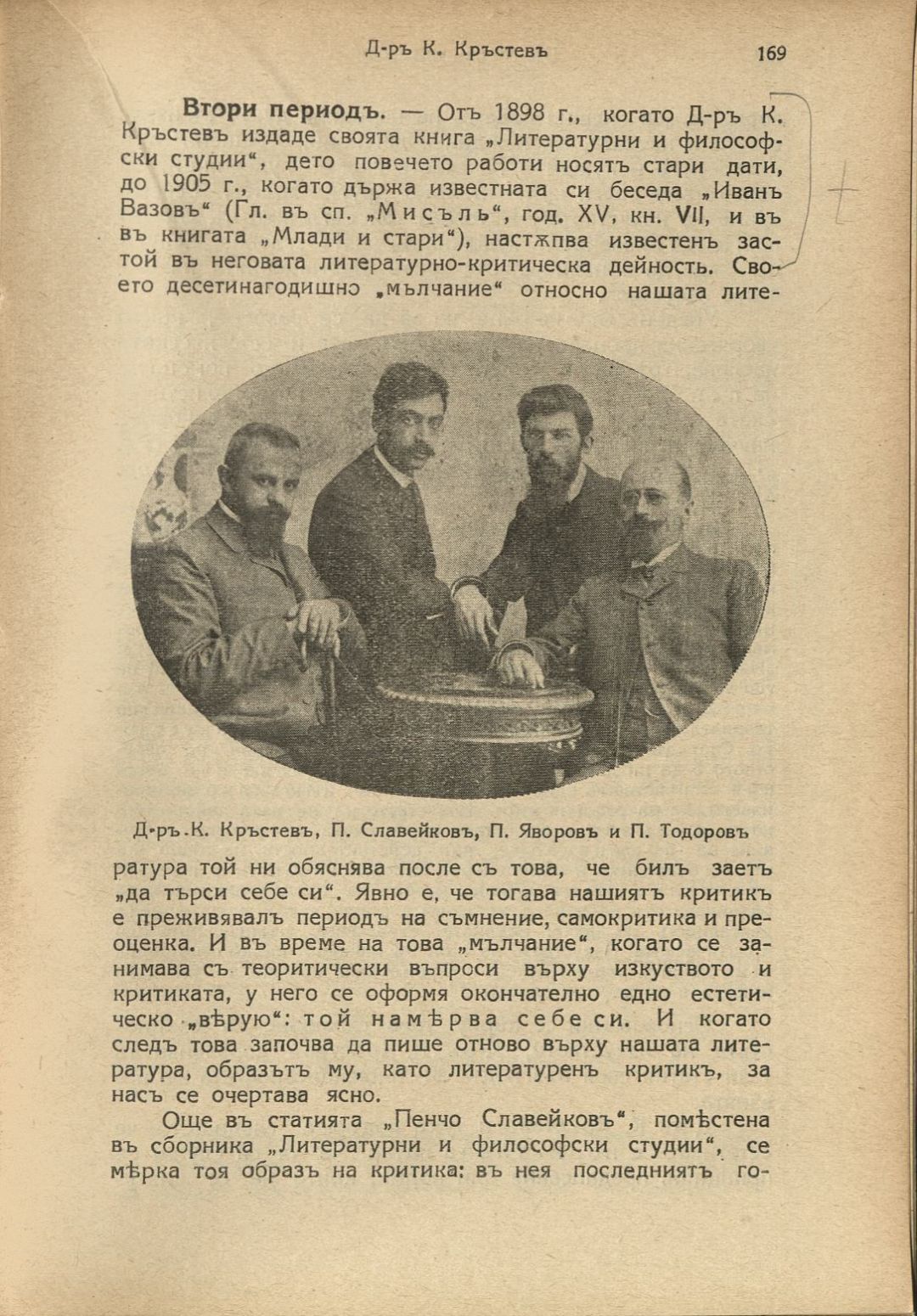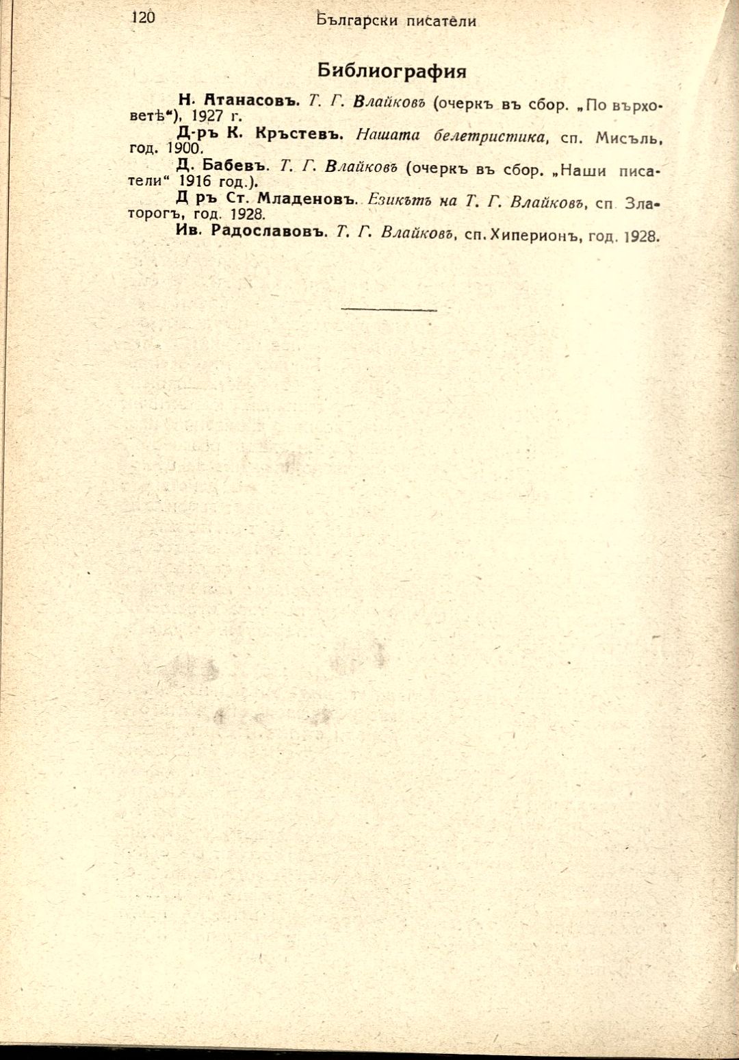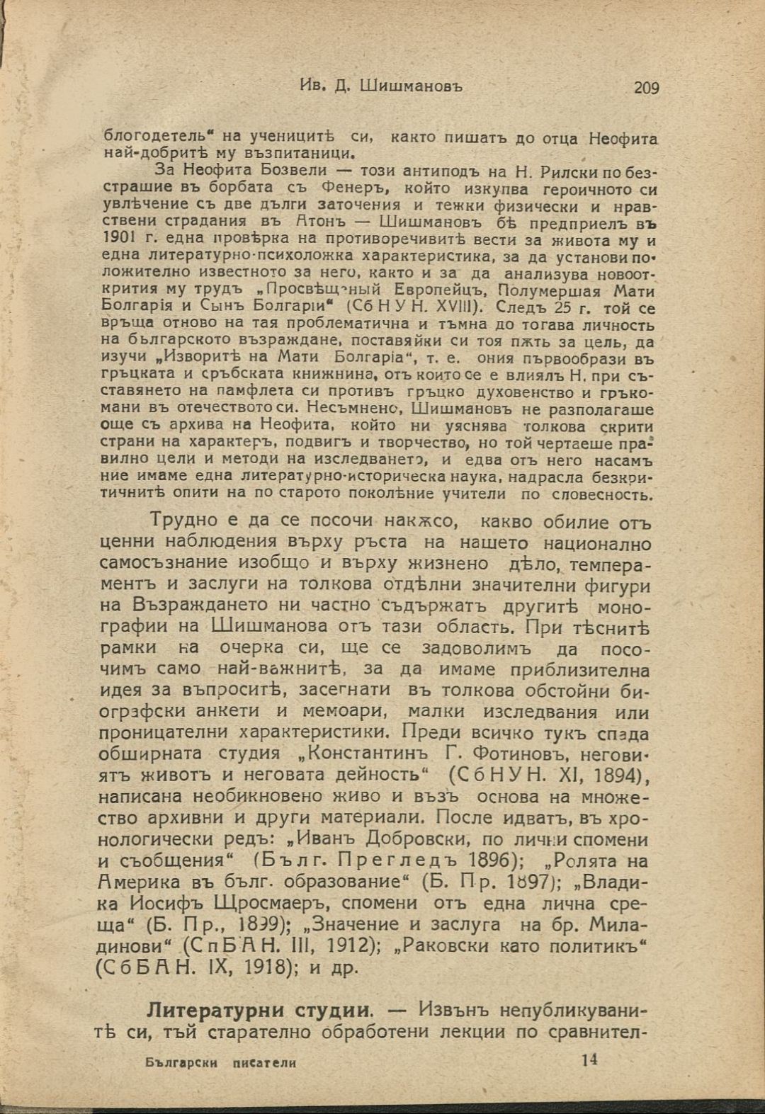 Български писатели : Животъ — творчество — идеи : Илюстрована литературно-историческа библиотека / под ред. на проф. М. Арнаудовъ. – София : Книгоиздателство Факелъ, [1929–1930].