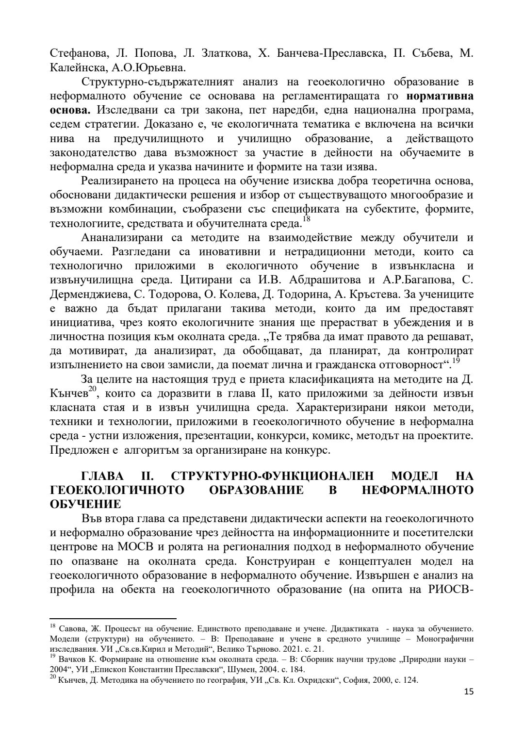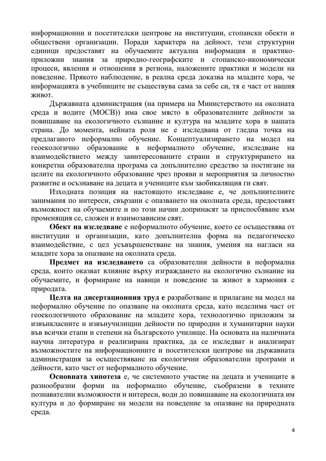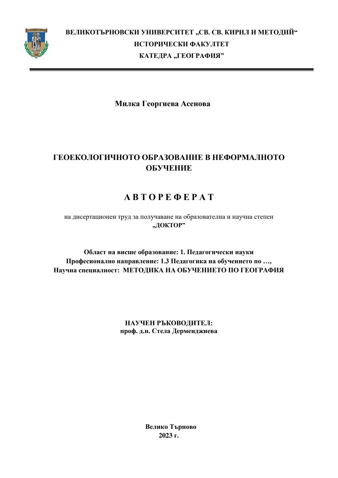Геоекологичното образование в неформалното обучение : Автореферат / Милка Георгиева Асенова ; Науч. ръководител Стела Дерменджиева