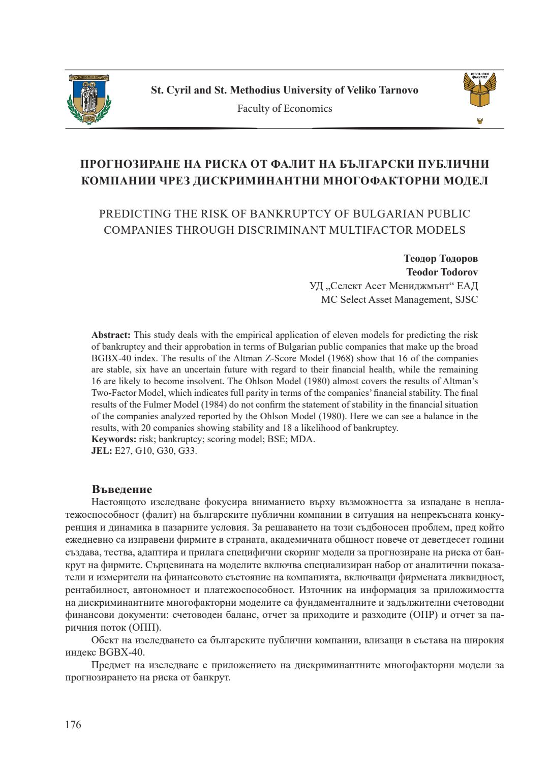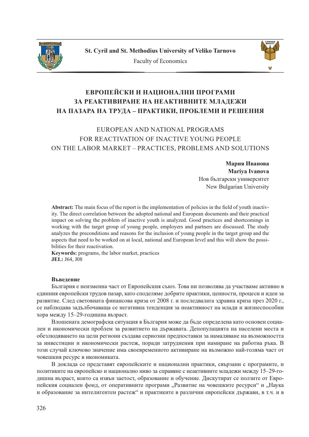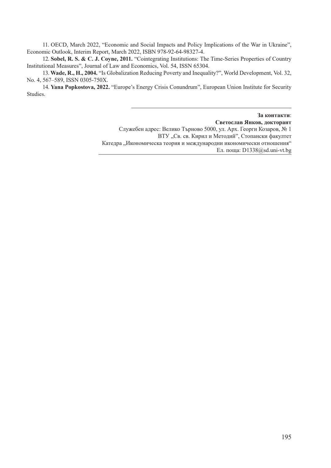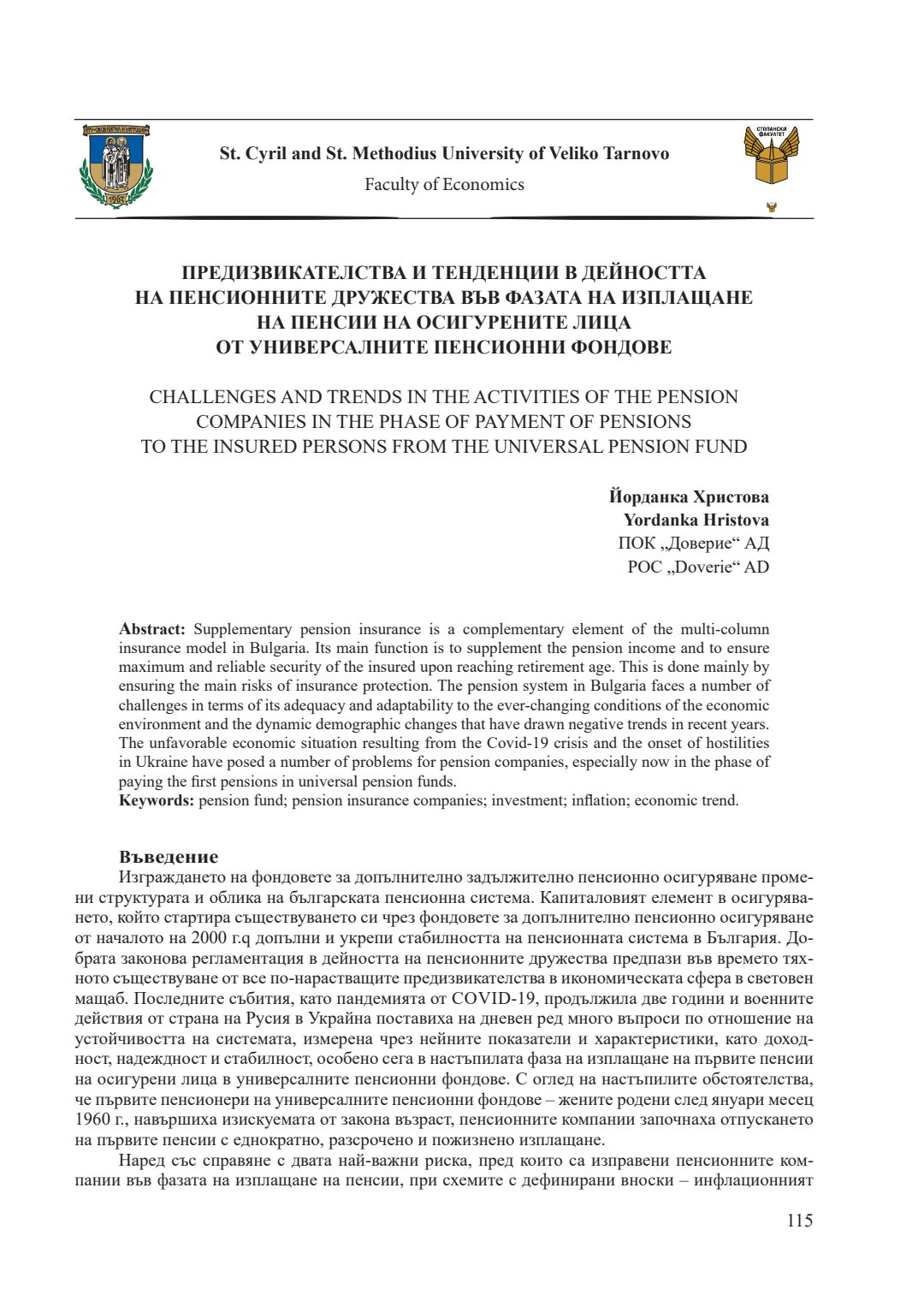 Т. 6. Развитие на българската и европейската икономика - предизвикателства и възможности = Development of the Bulgarian and European economics - challenges and opportunities