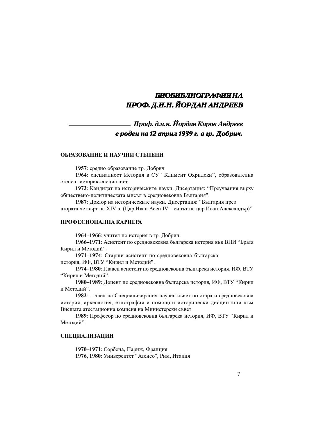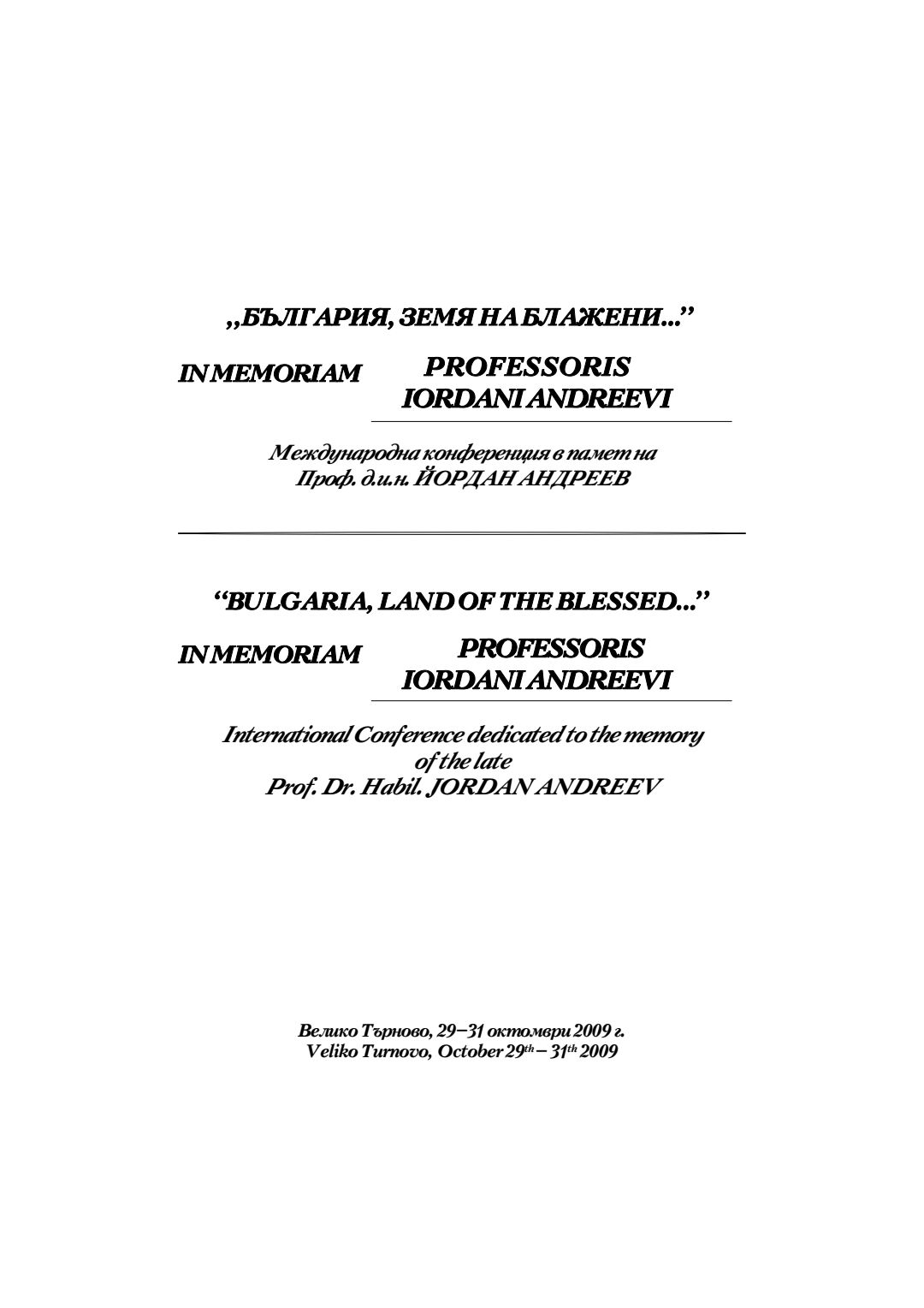 България, земя на блажени... : In memoriam professoris Iordani Andreevi : Международна конференция в памет на Проф. д.и.н. Йордан Андреев, Велико Търново, 29-30 октомври 2009