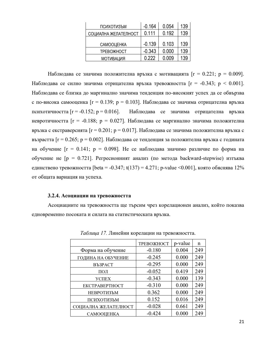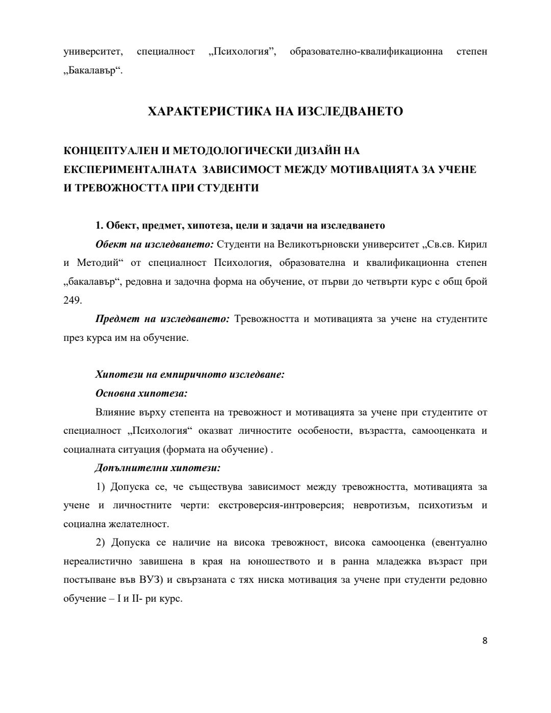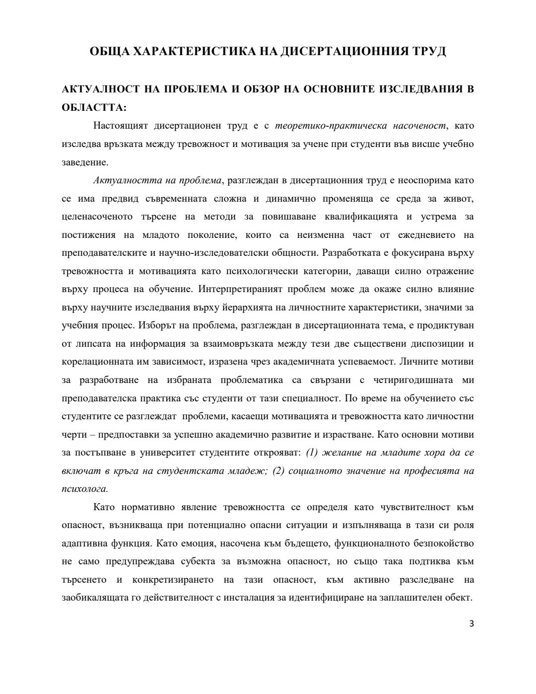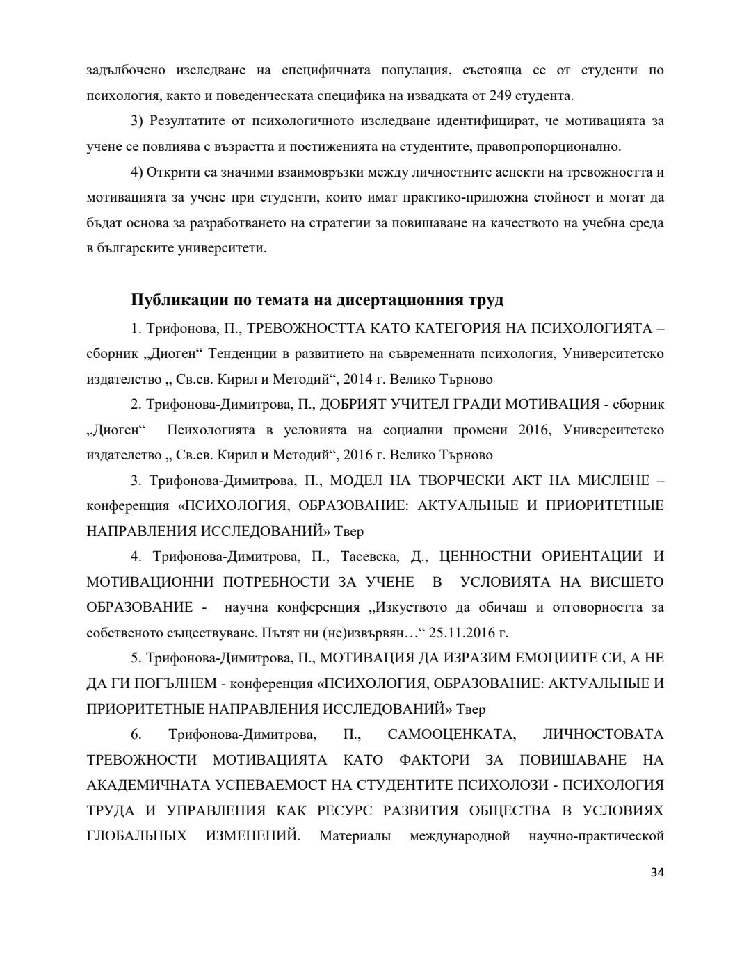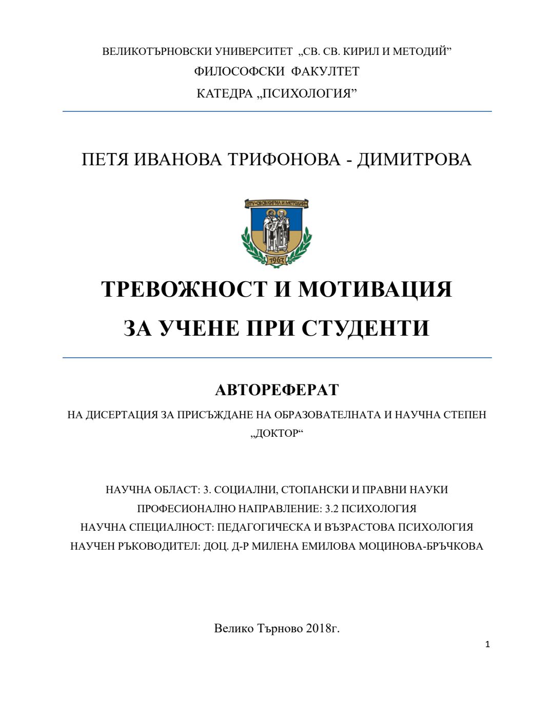 Тревожност и мотивация за учене при студентите : Автореферат / Петя Иванова Трифонова-Димитрова ; Науч. ръководител Милена Моцинова-Бръчкова