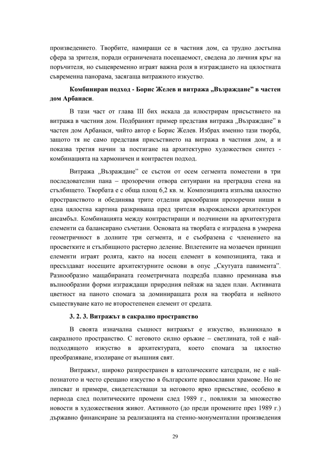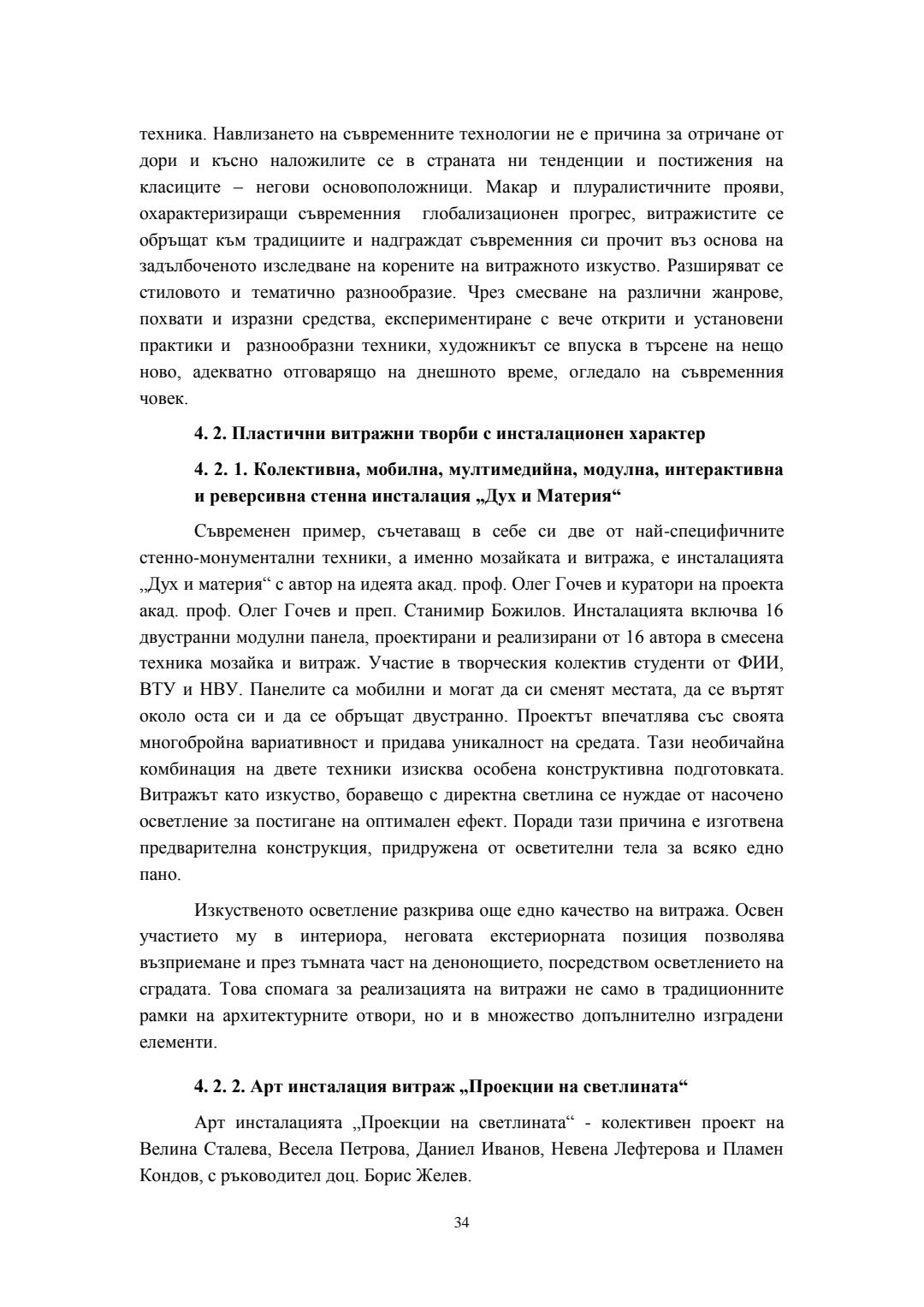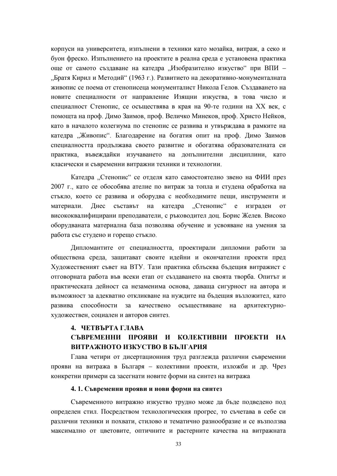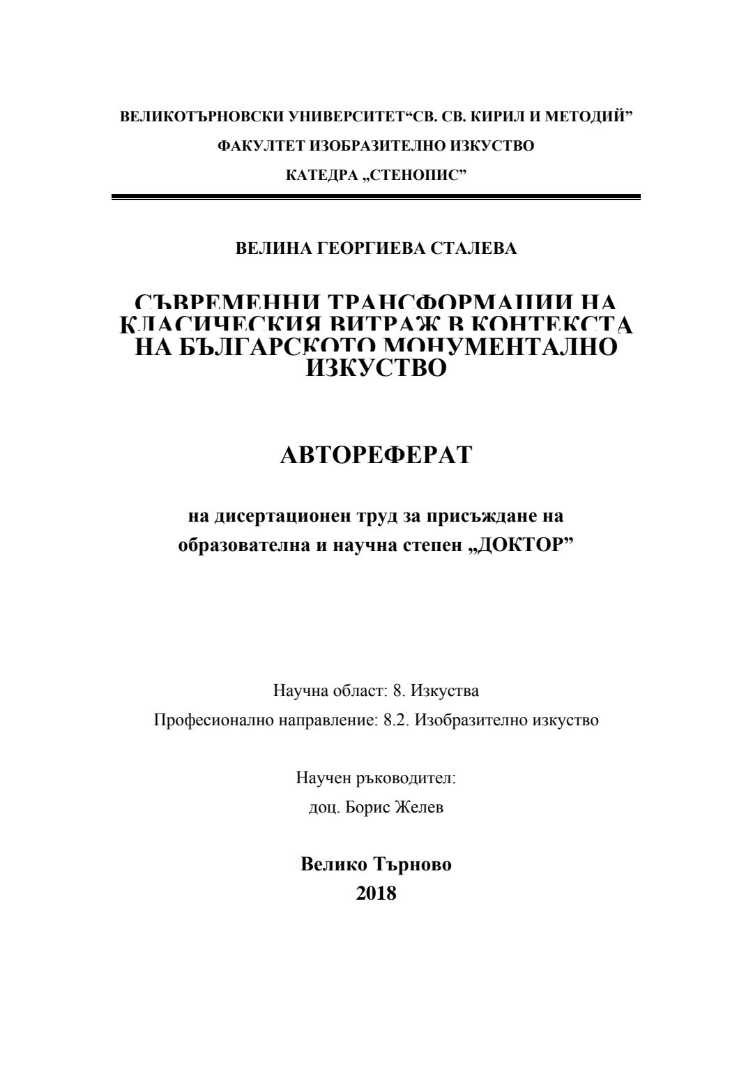 Съвременни трансформации на класическия витраж в контекста на българското монументално изкуство : Автореферат / Велина Георгиева Сталева ; Науч. ръководител Борис Желев