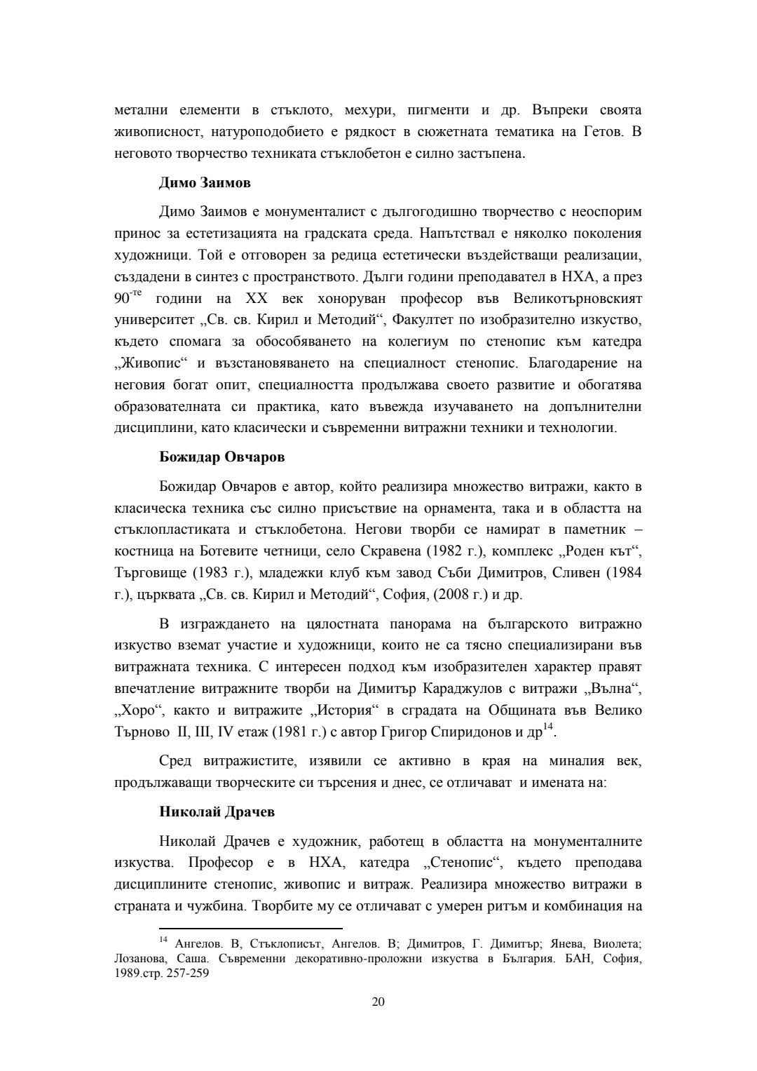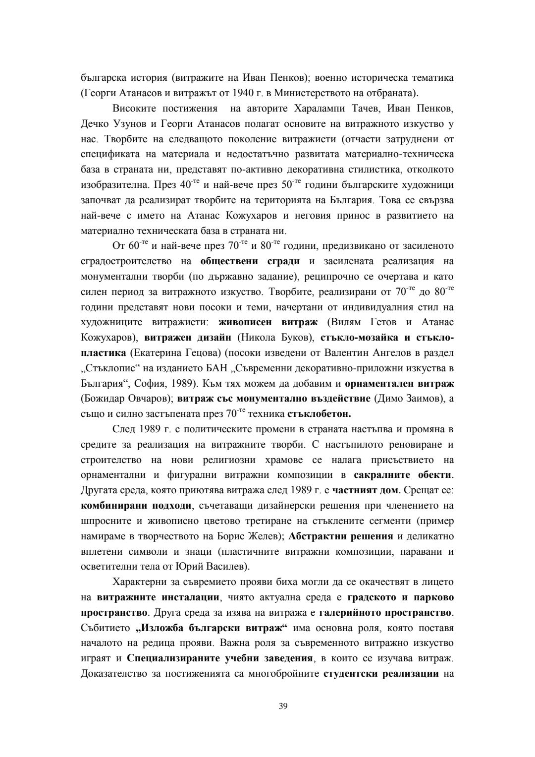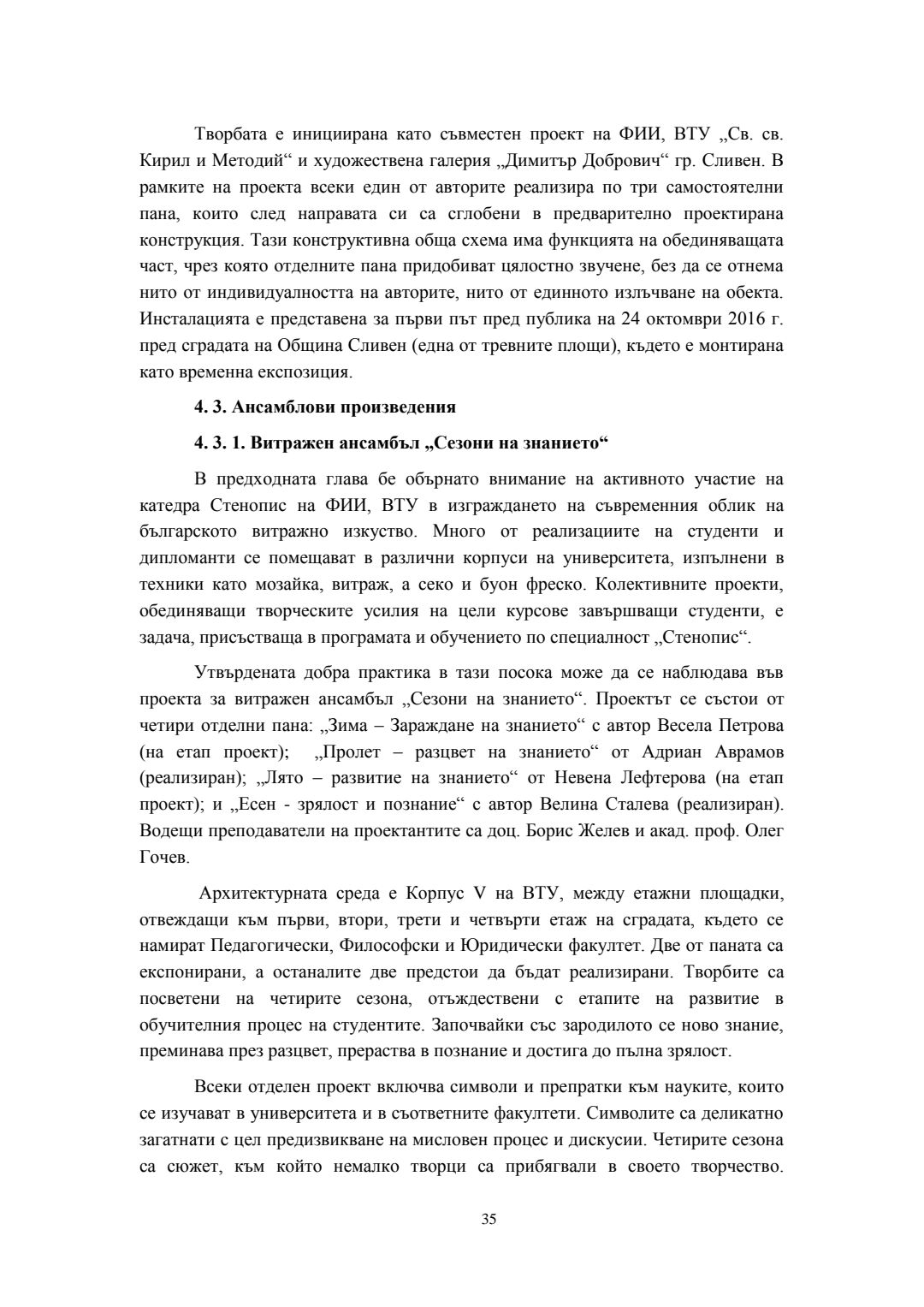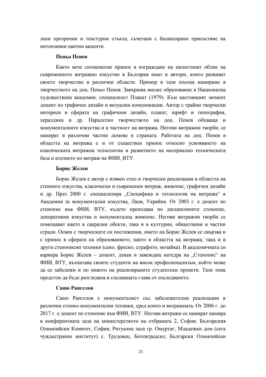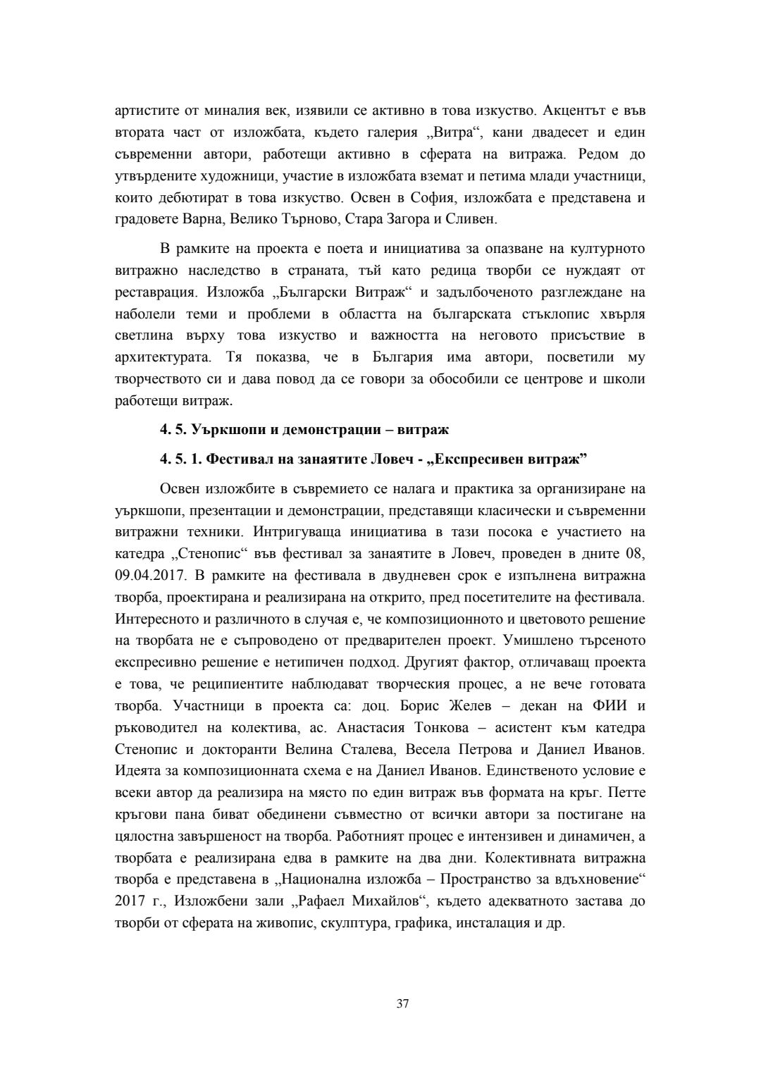 Съвременни трансформации на класическия витраж в контекста на българското монументално изкуство : Автореферат / Велина Георгиева Сталева ; Науч. ръководител Борис Желев