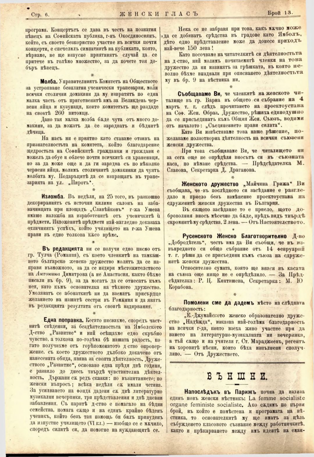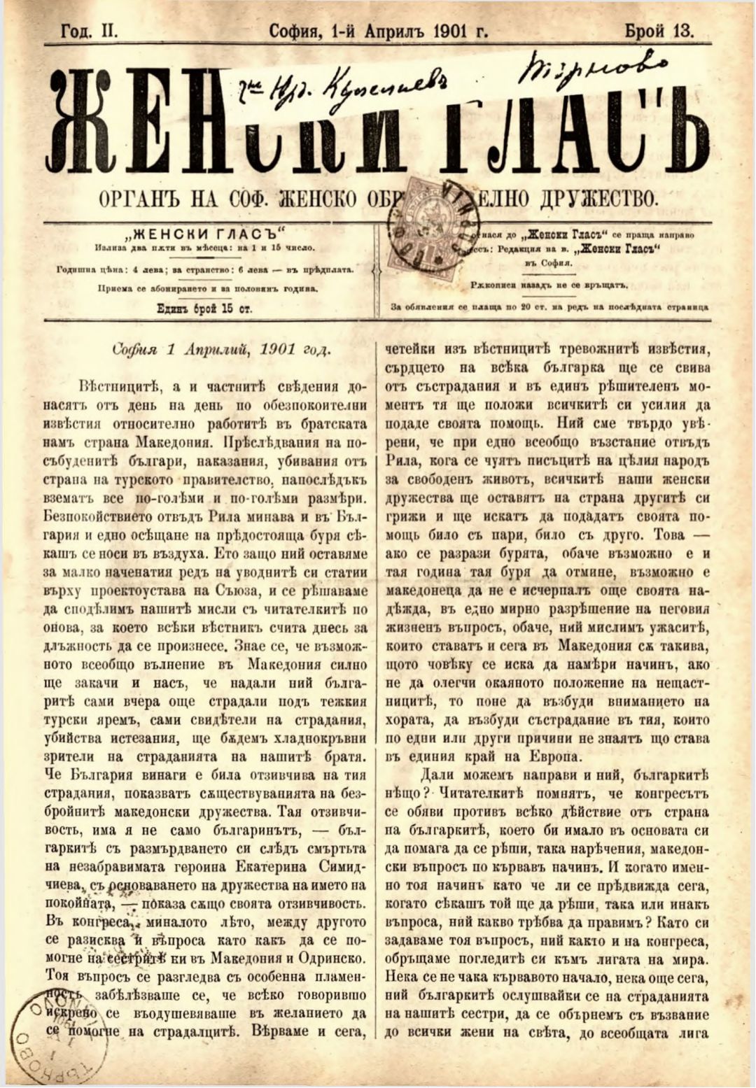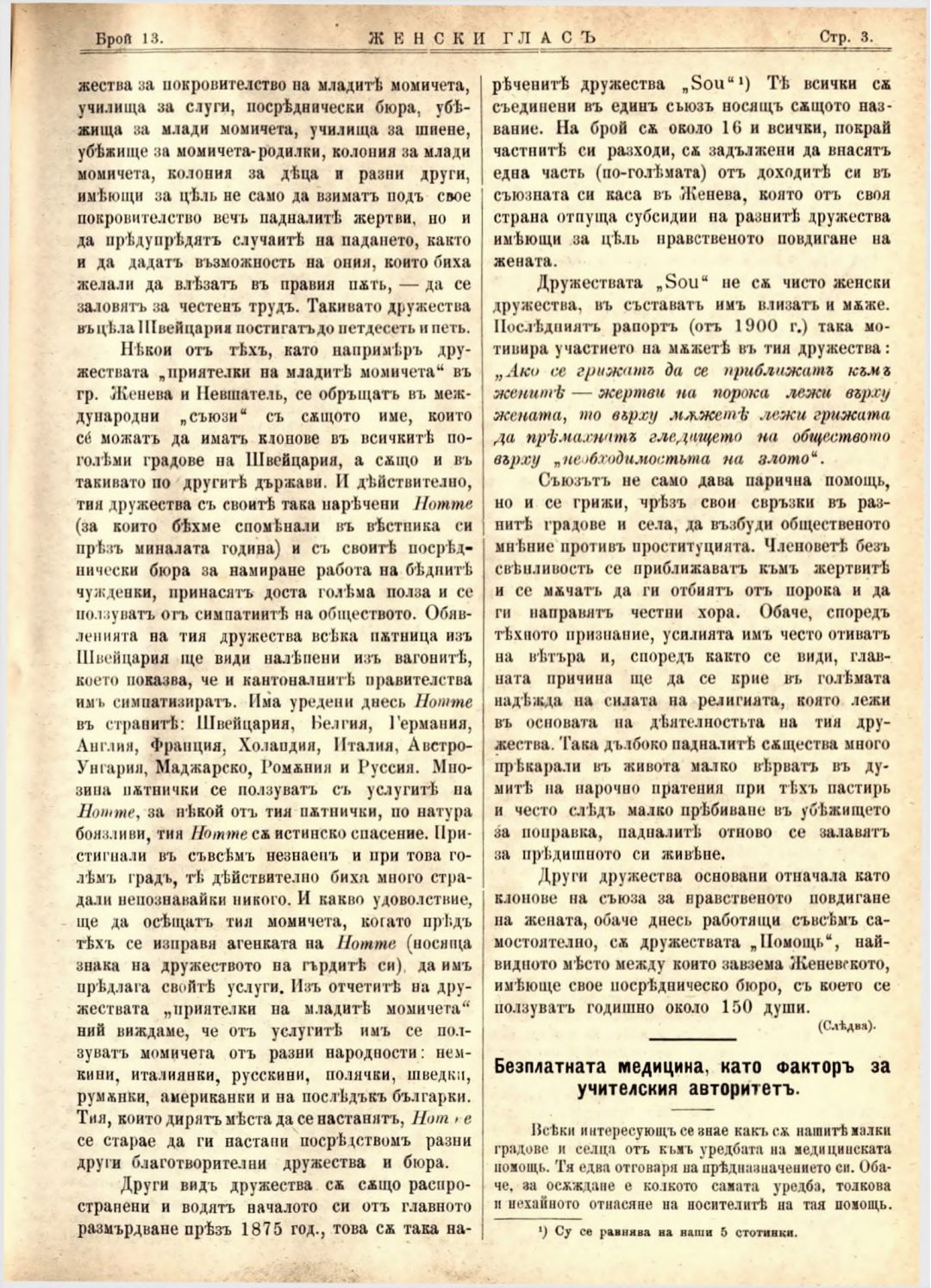 Год. 2,№ 13. Женски глас : Орган на софийското женско образователно дружество