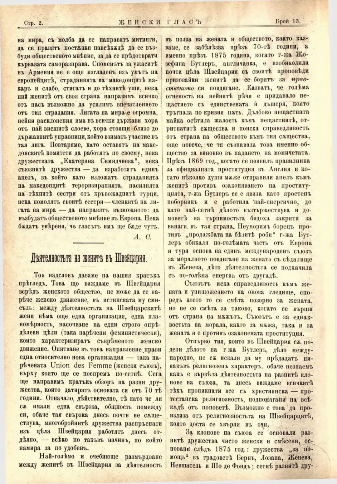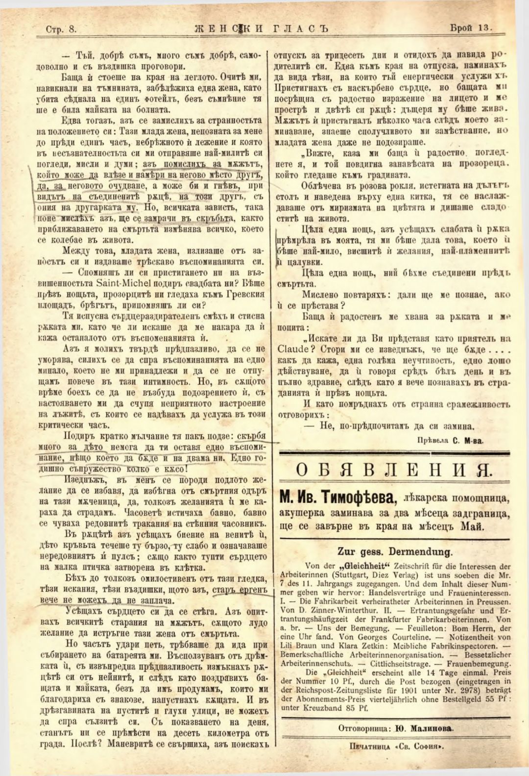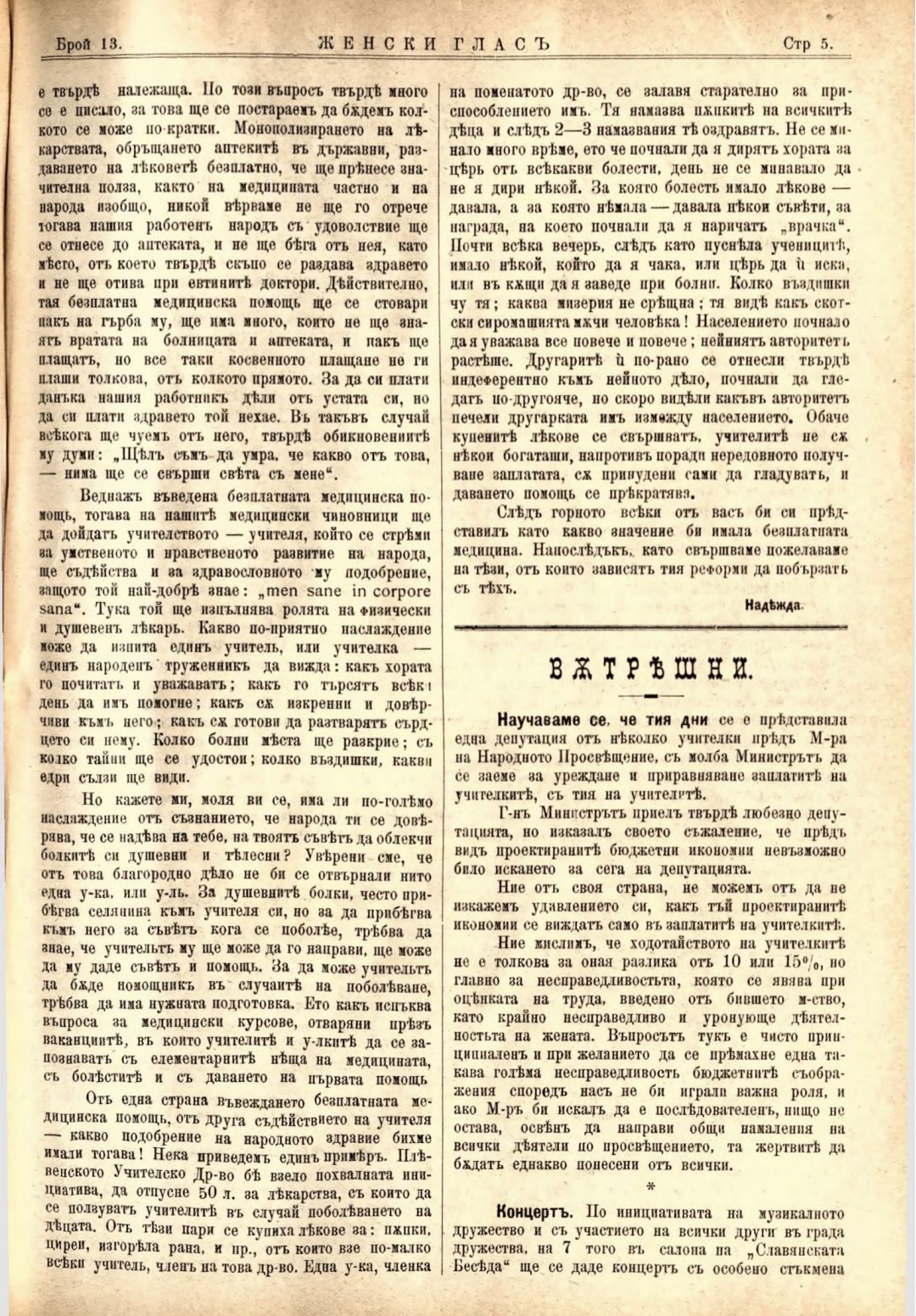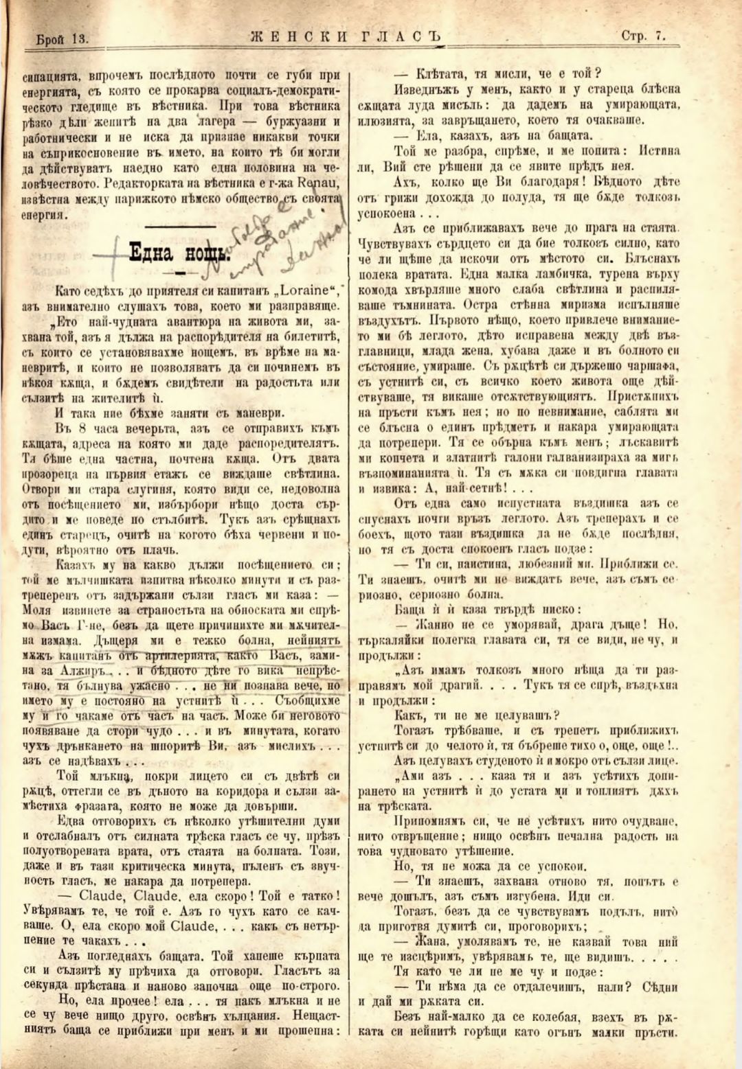 Год. 2,№ 13. Женски глас : Орган на софийското женско образователно дружество