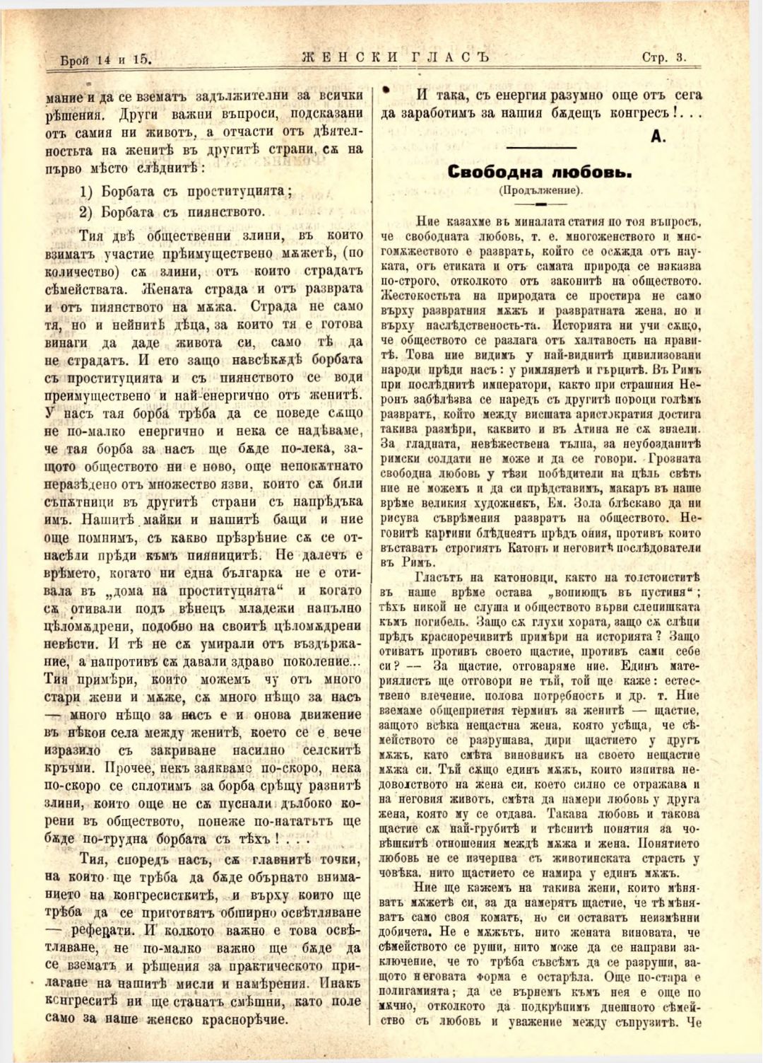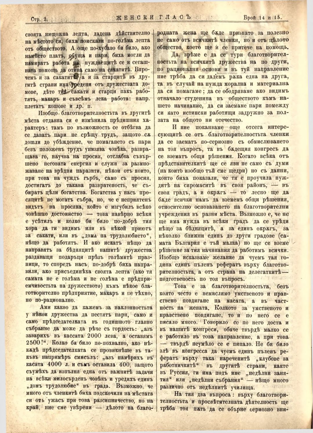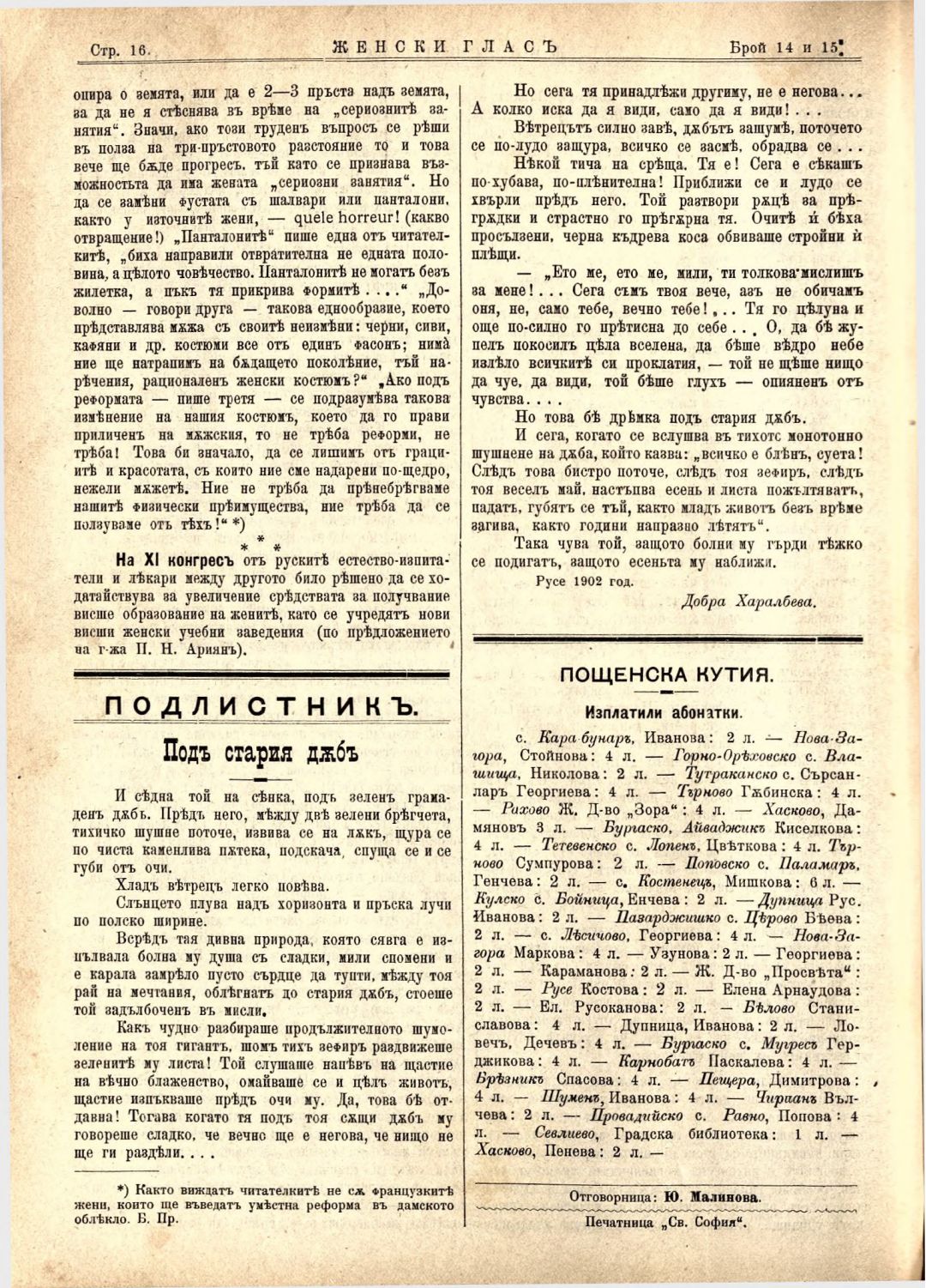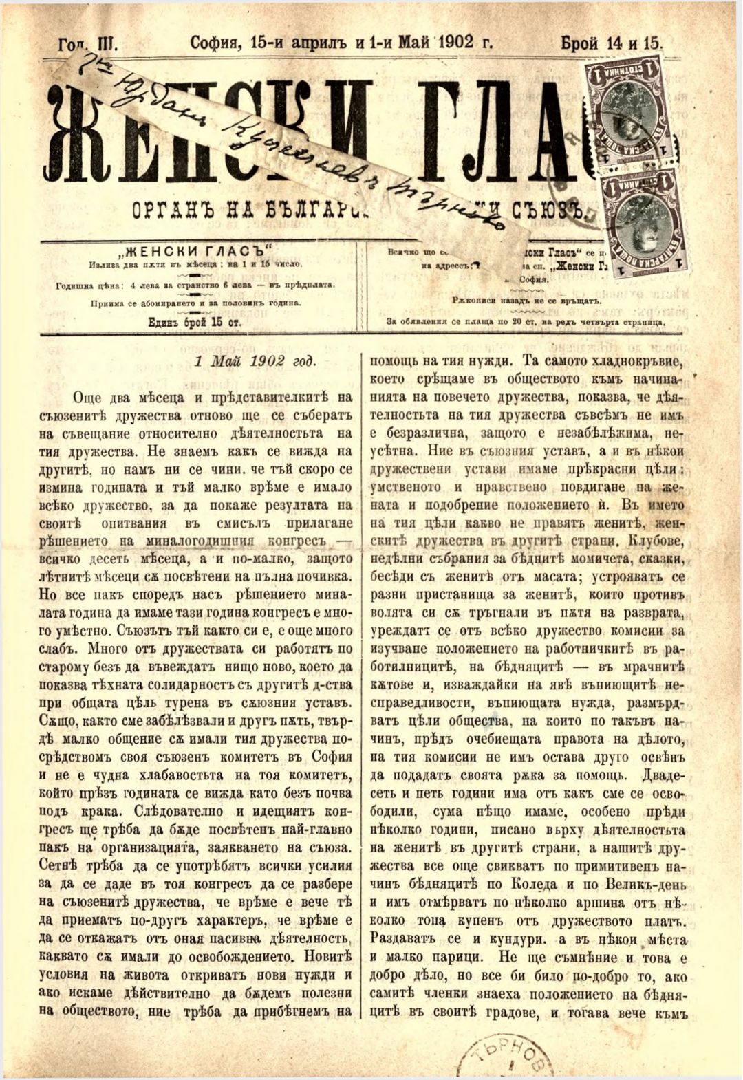 Год. 3,№ 14-15. Женски глас : Орган на българския женски съюз