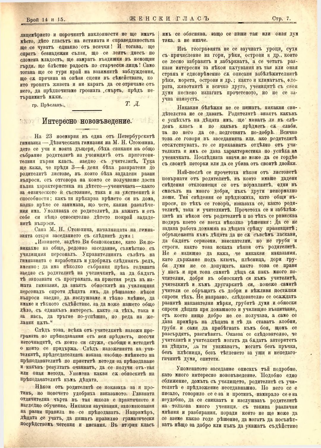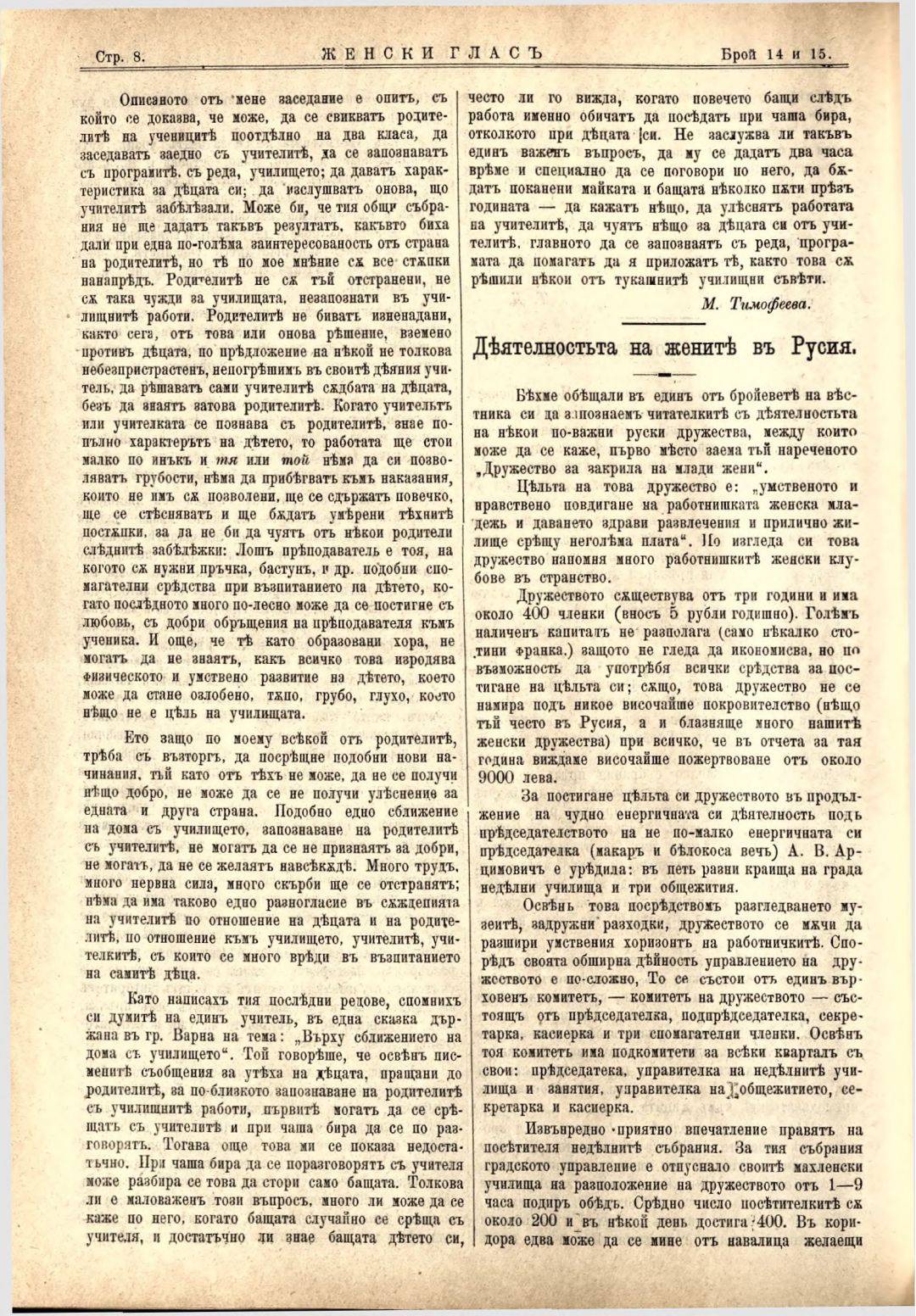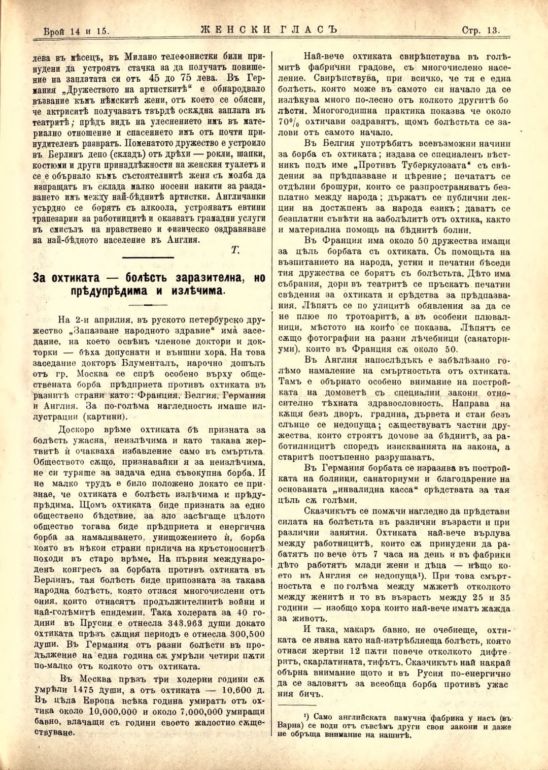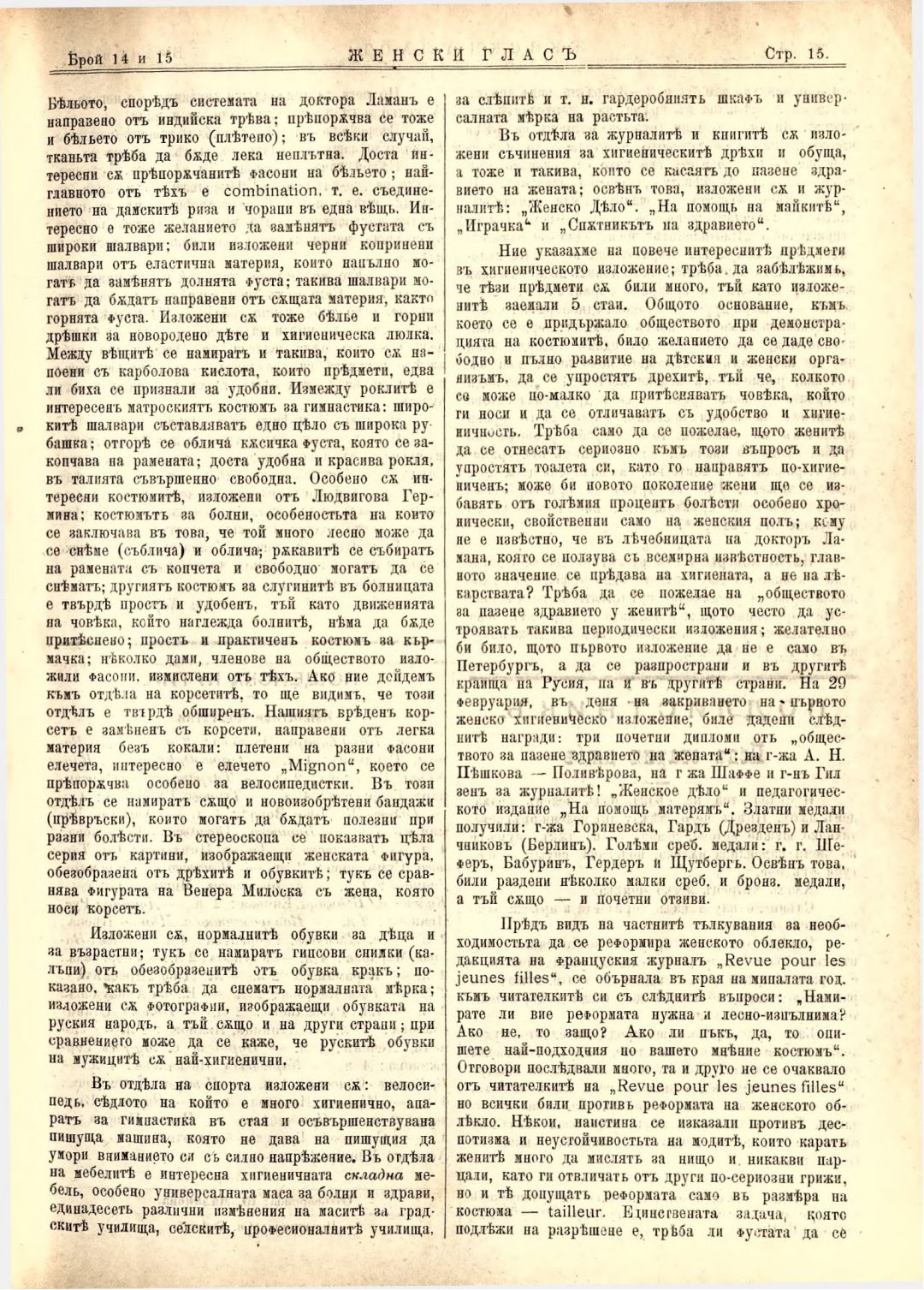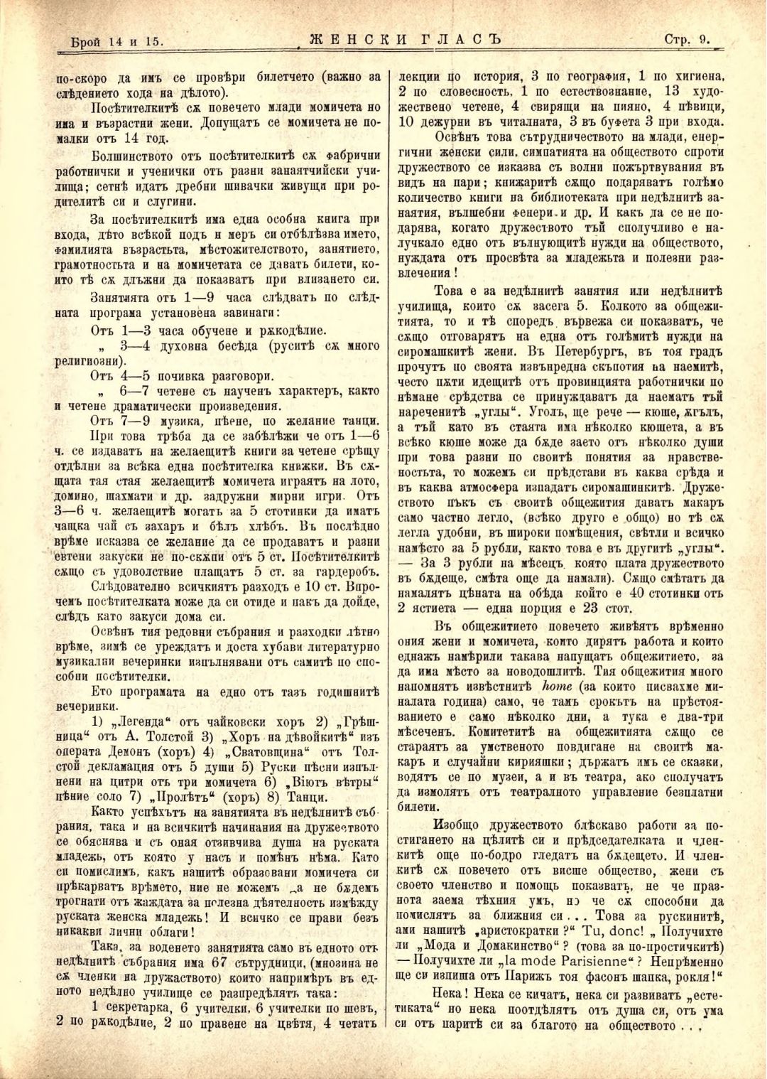 Год. 3,№ 14-15. Женски глас : Орган на българския женски съюз