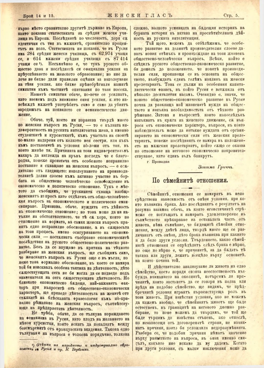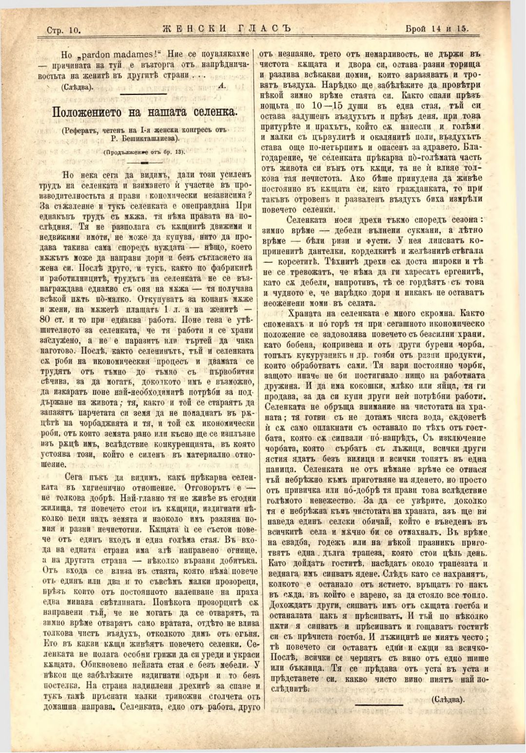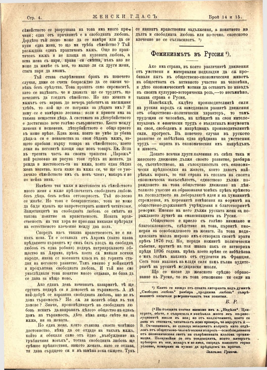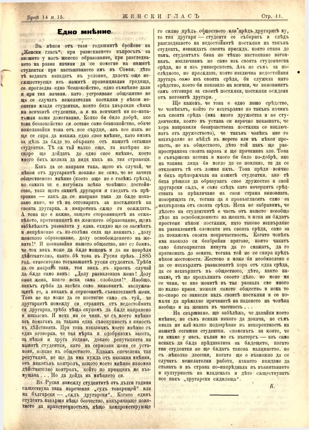 Год. 3,№ 14-15. Женски глас : Орган на българския женски съюз