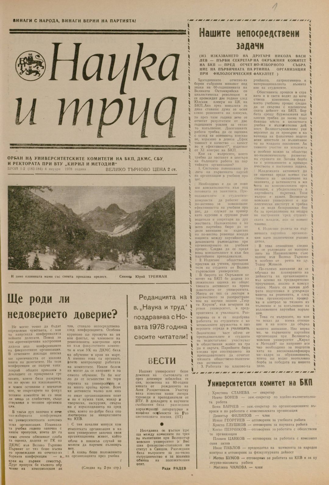 Год.17, 1-2 (183-184). Наука и труд : Орган на университетските организации на БКП, ДКМС, СУ и Ректората при ВПИ "Братя Кирил и Методий"