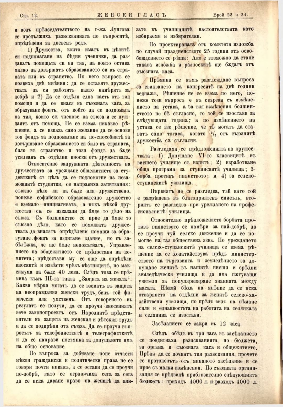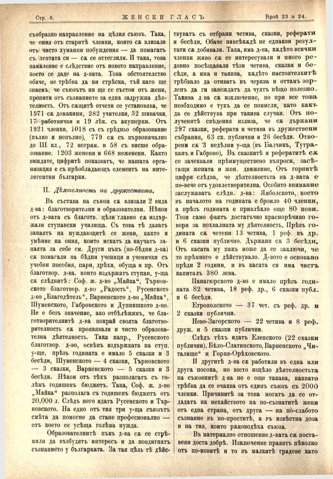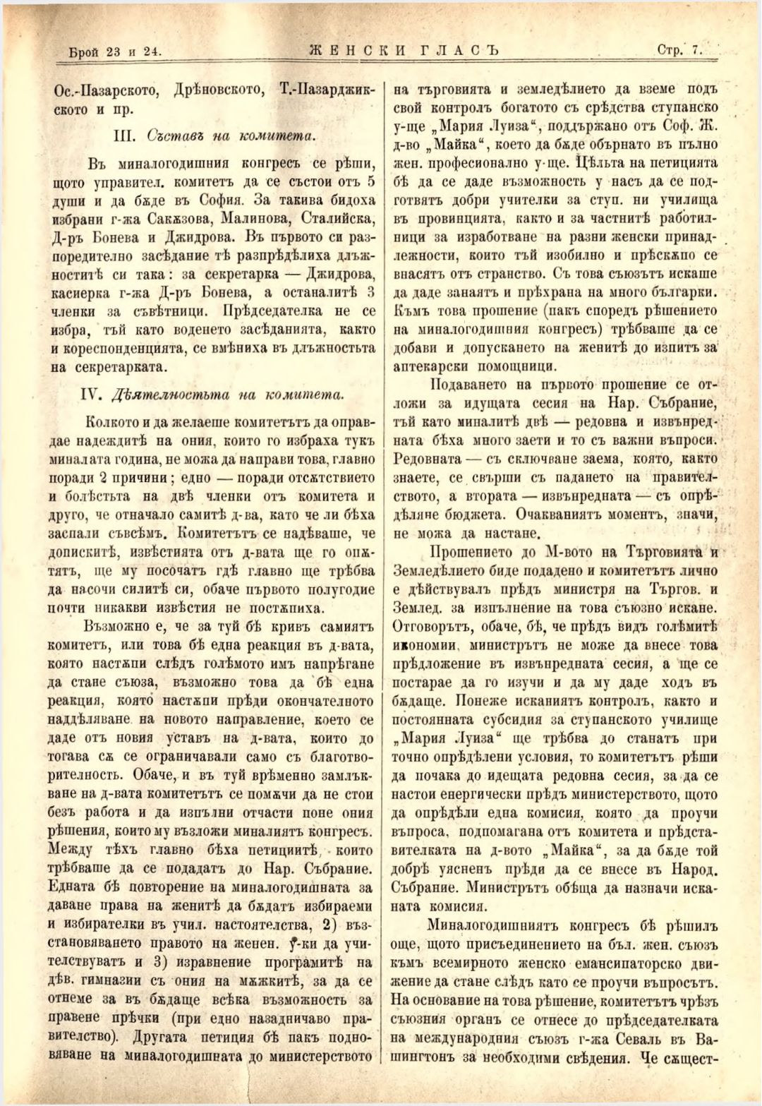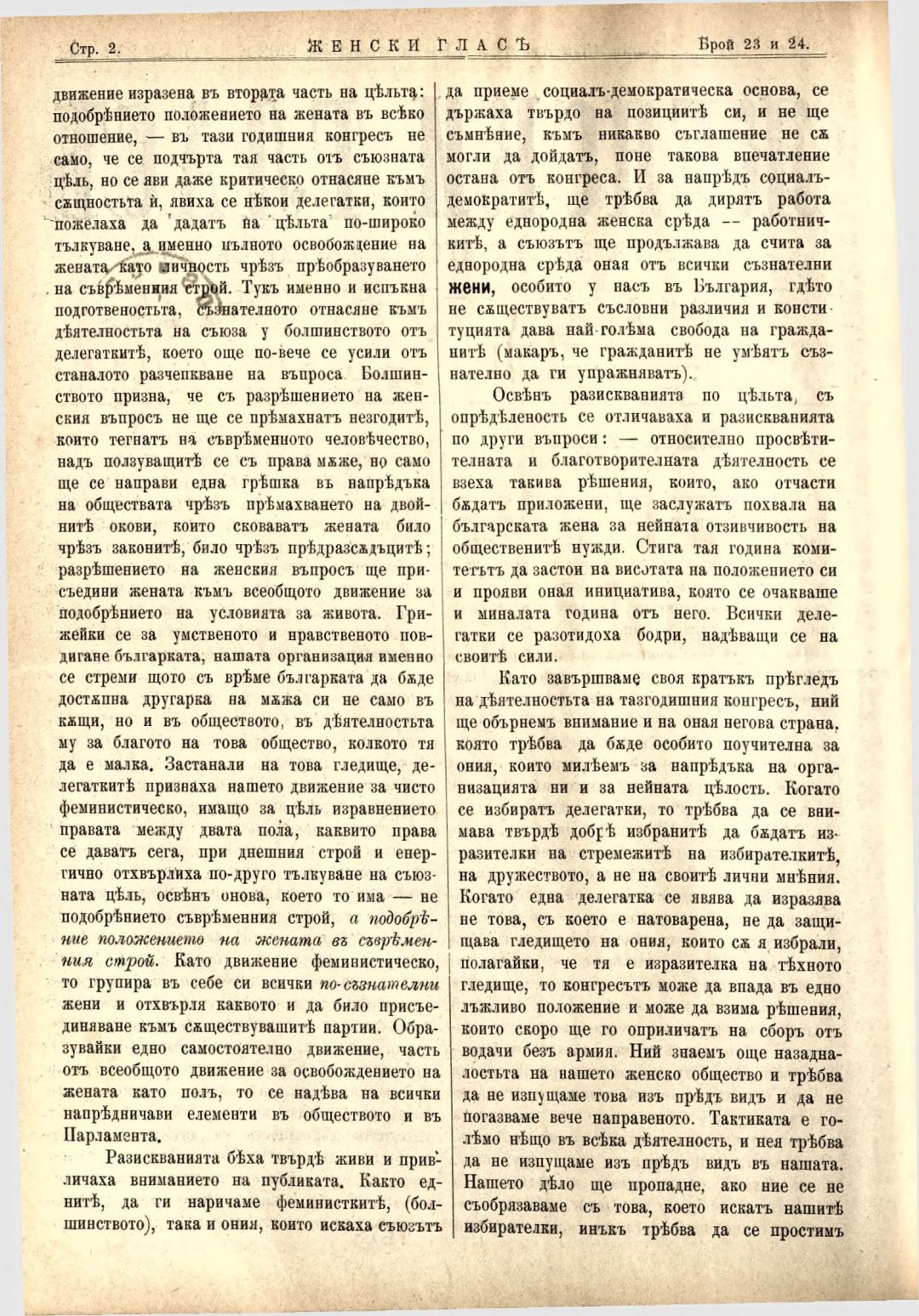 Год. 3,№ 23-24. Женски глас : Орган на българския женски съюз