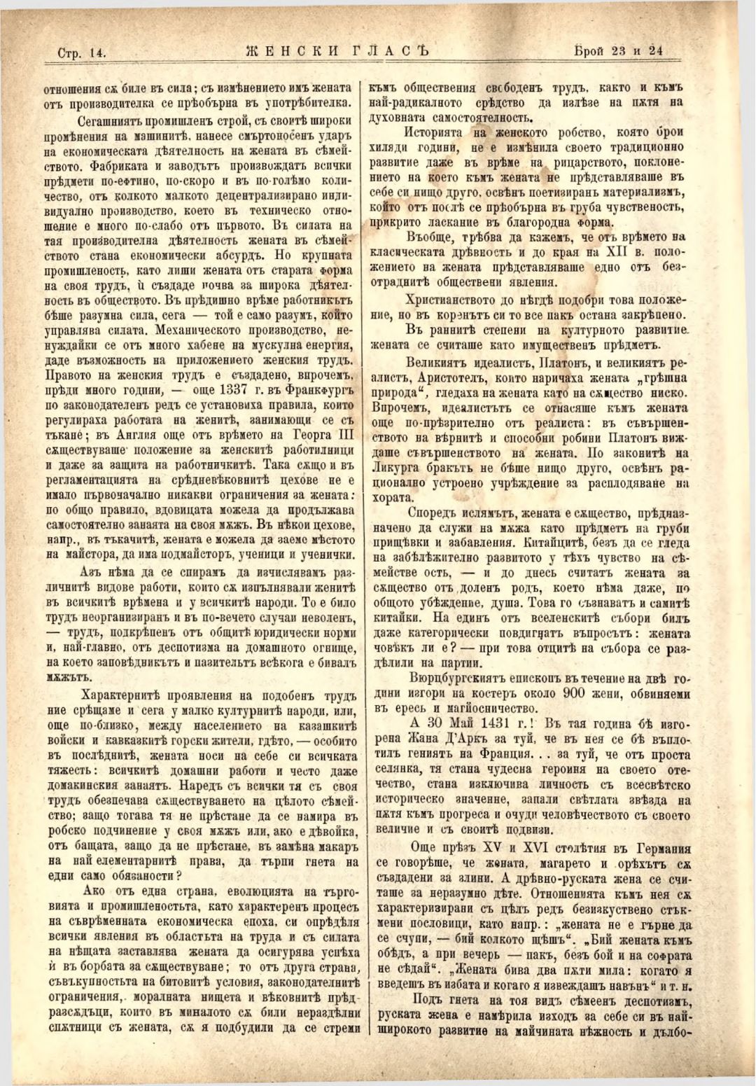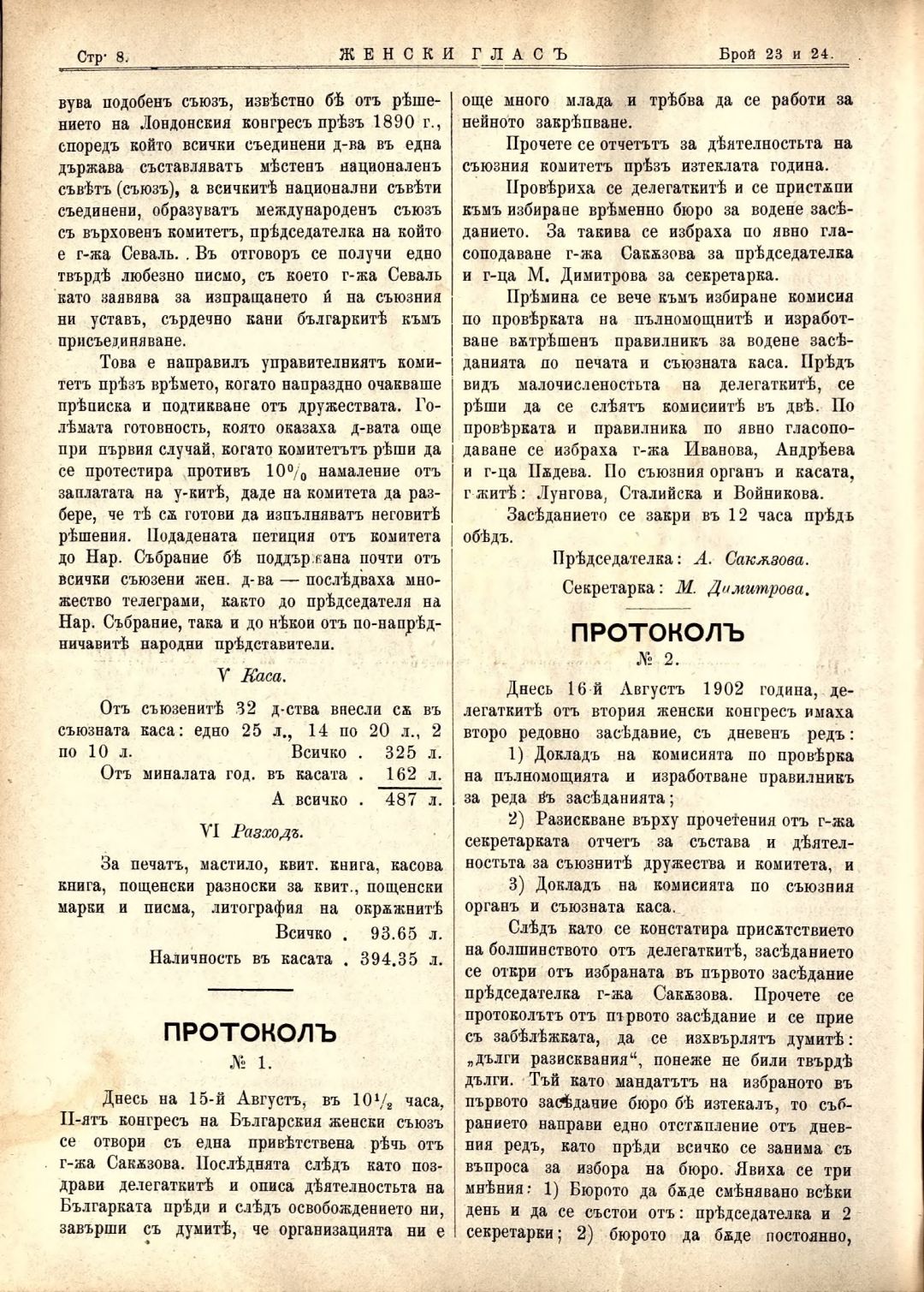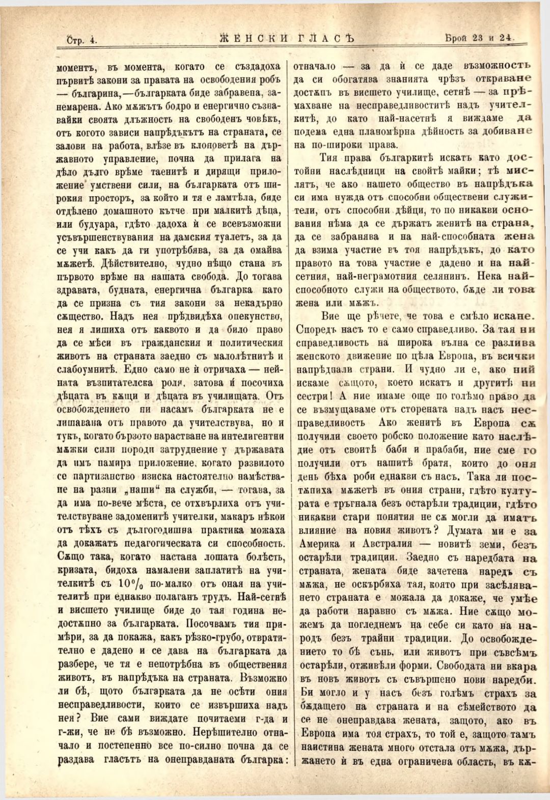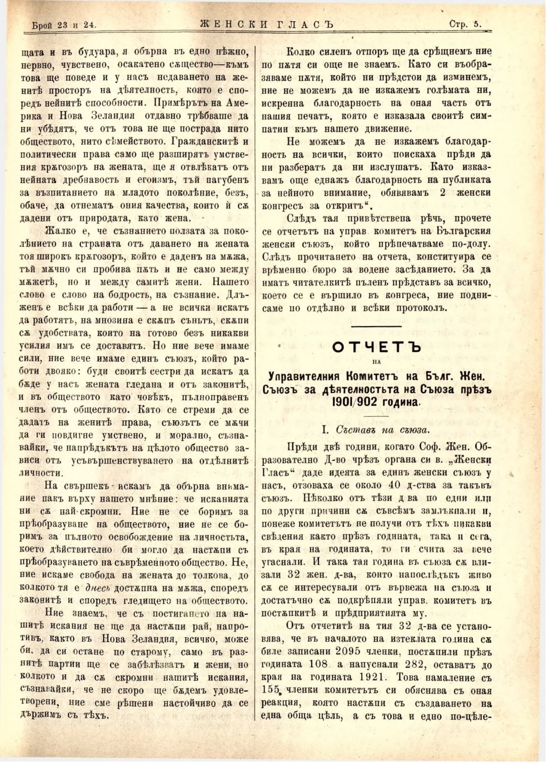 Год. 3,№ 23-24. Женски глас : Орган на българския женски съюз
