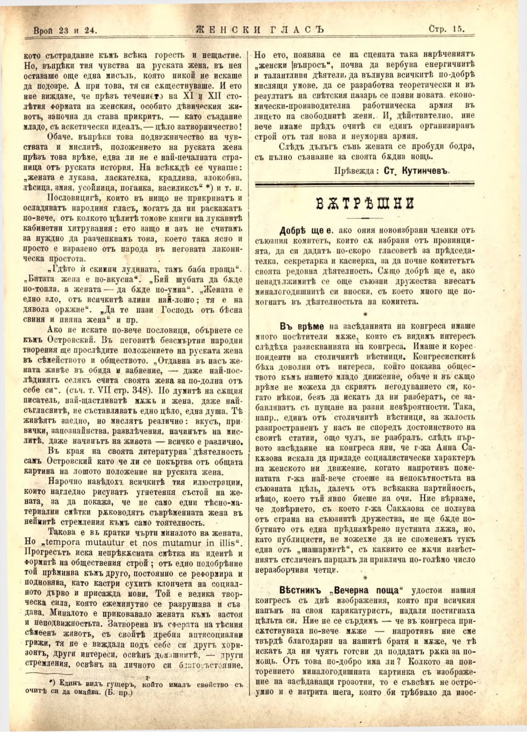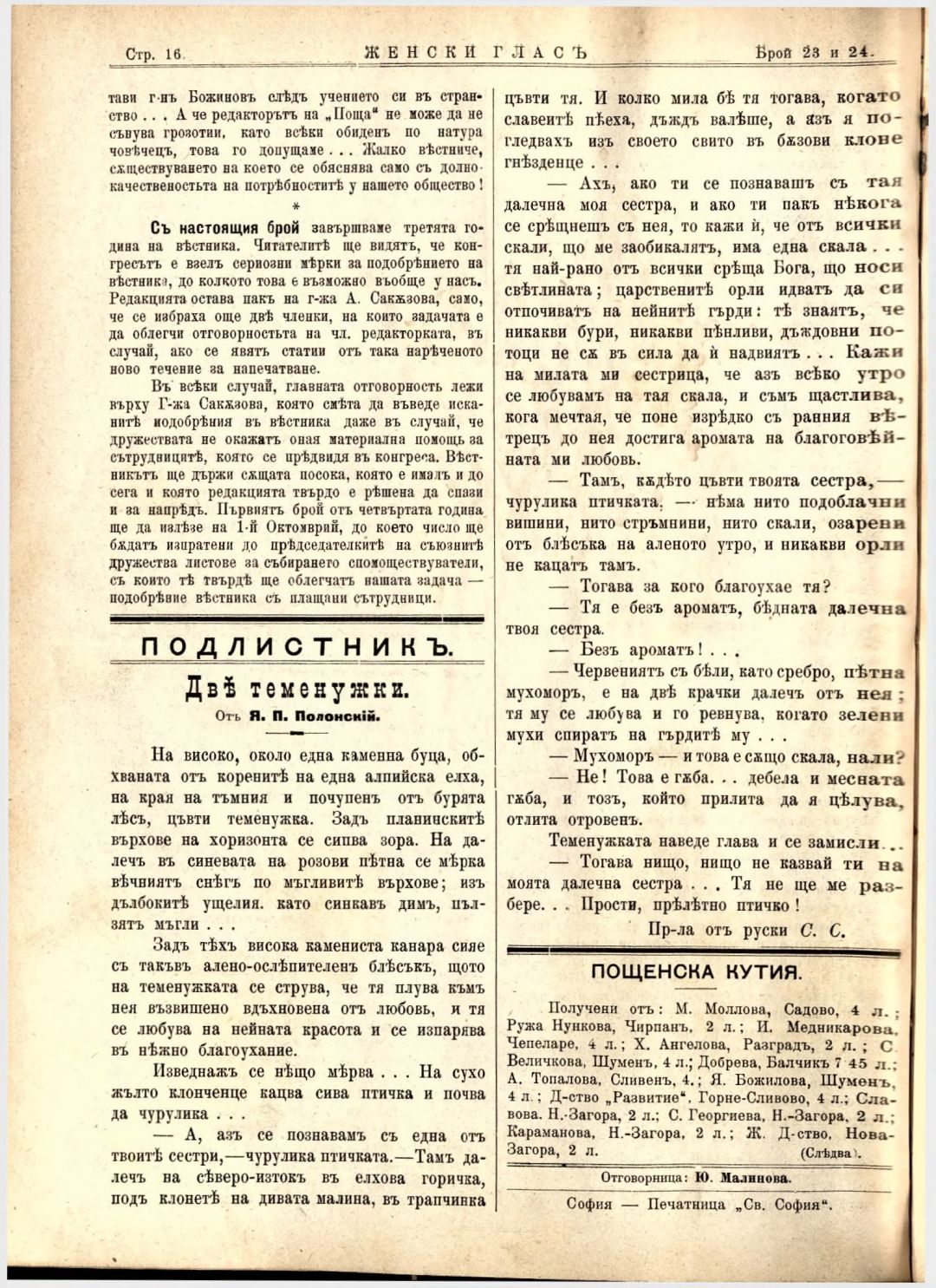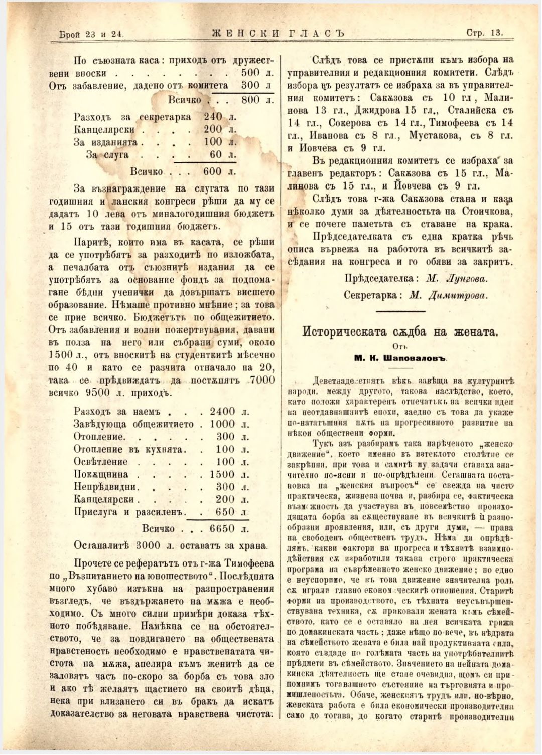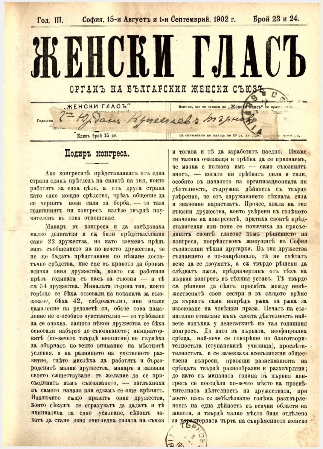 Год. 3,№ 23-24. Женски глас : Орган на българския женски съюз