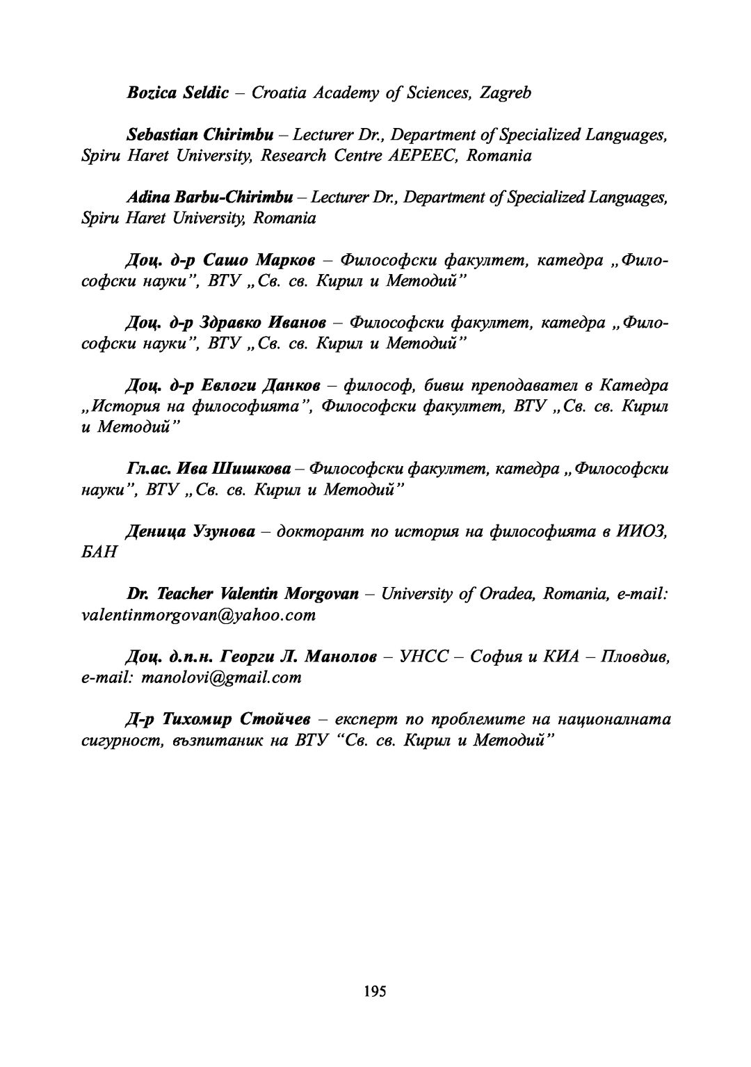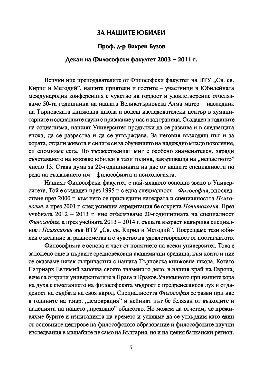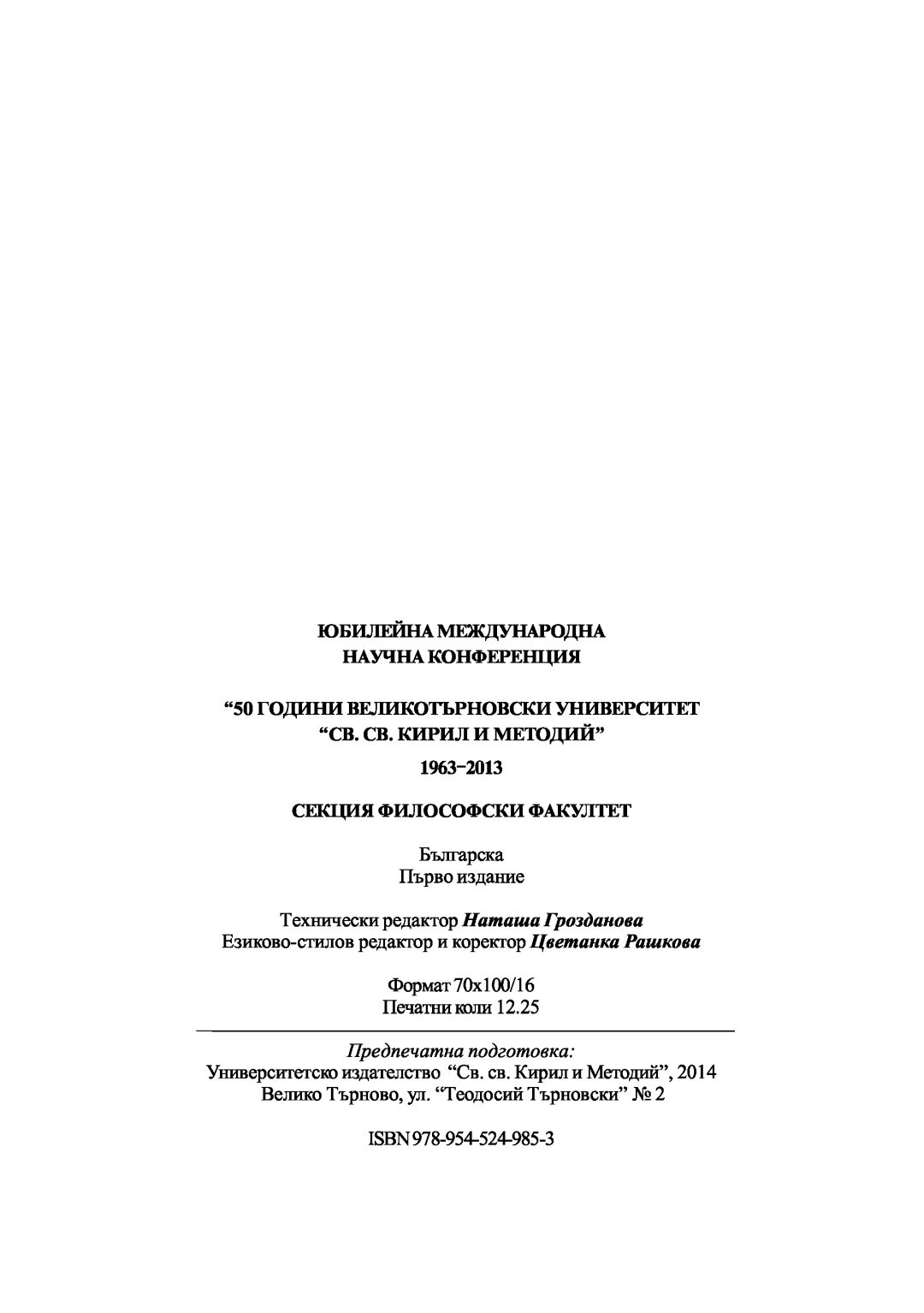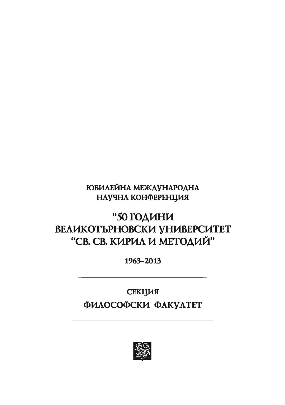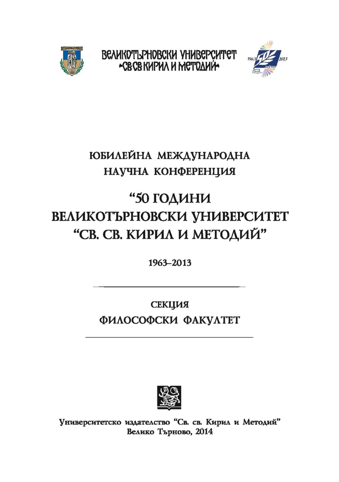 Юбилейна международна научна конференция "50 години Великотърновски университет "Св. св. Кирил и Методий" 1963-2013 : секция Философски факултет