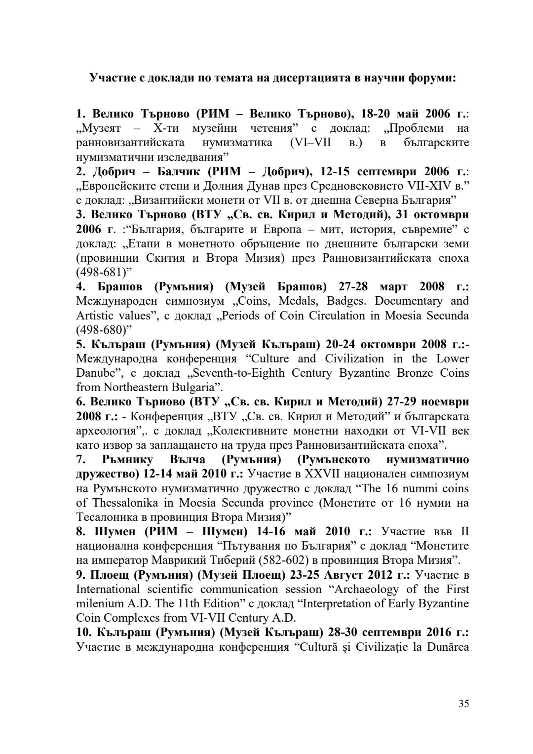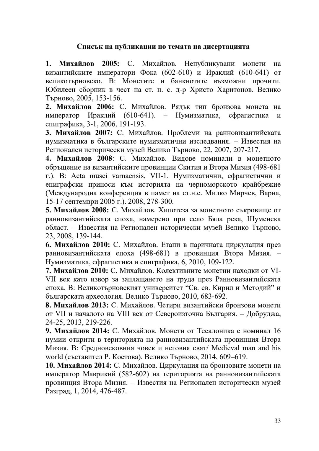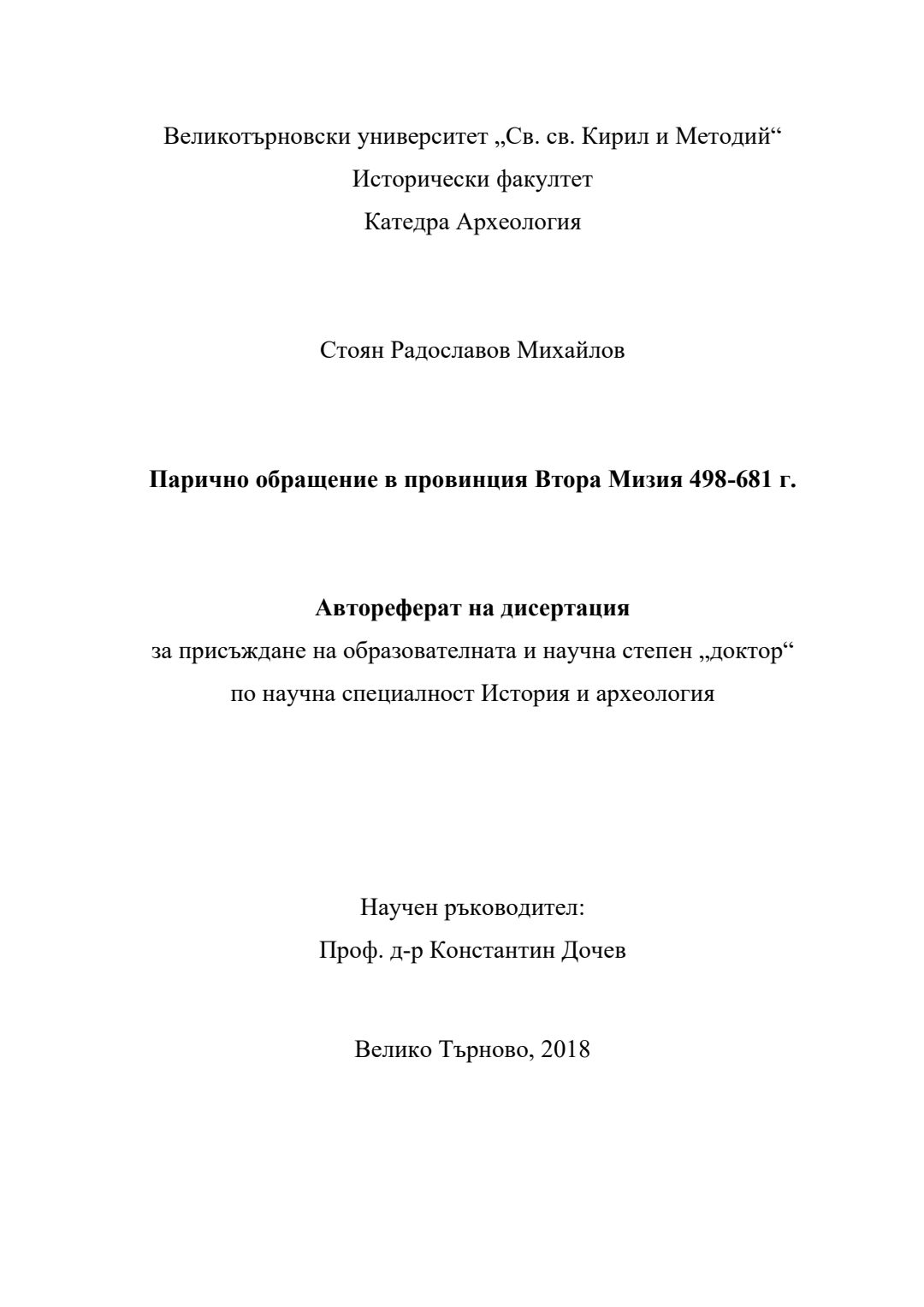 Парично обращение в провинция Втора Мизия 498-681 г. : Автореферат/ Стоян Радославов Михайлов ; Науч. ръководител Константин Дочев