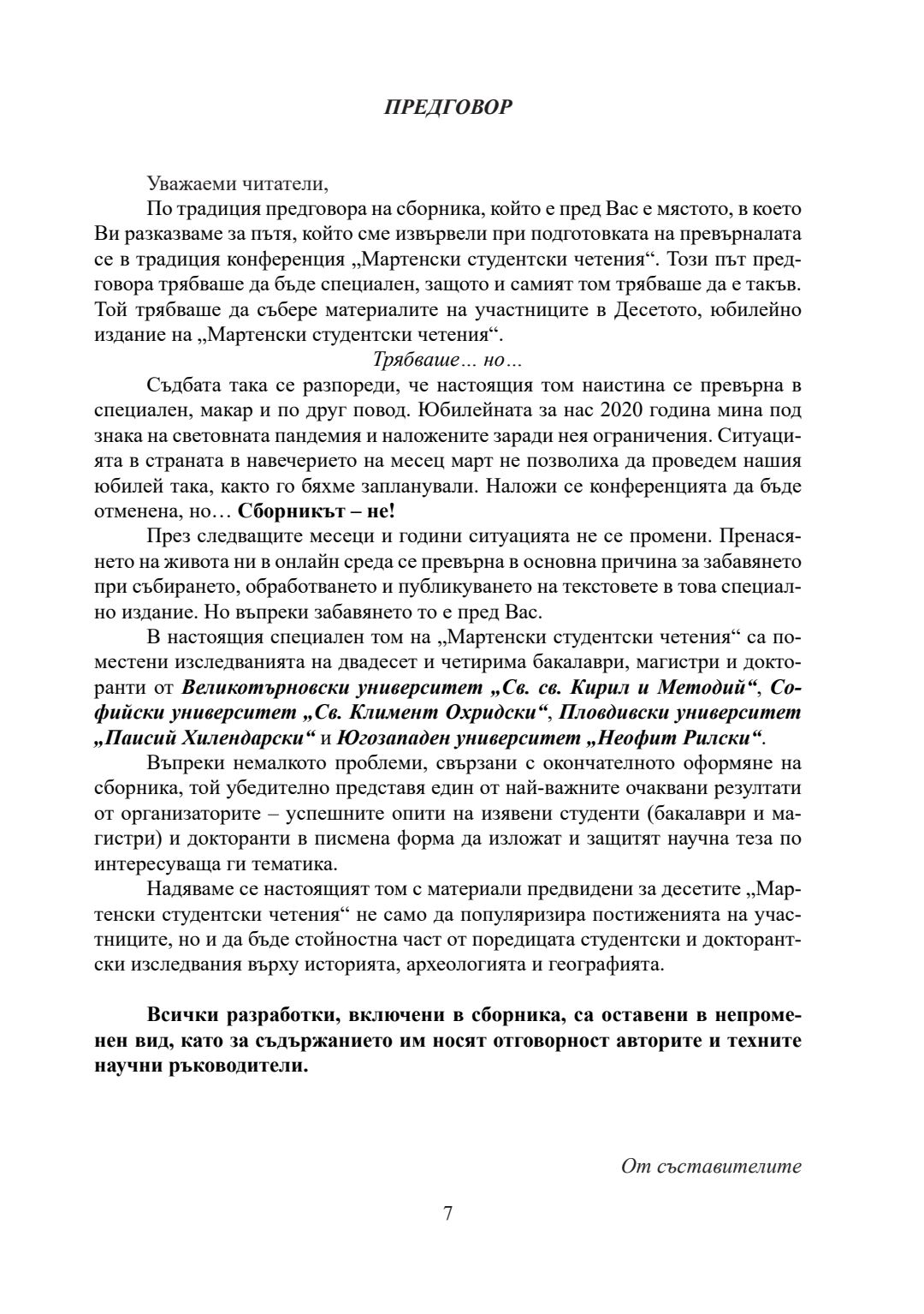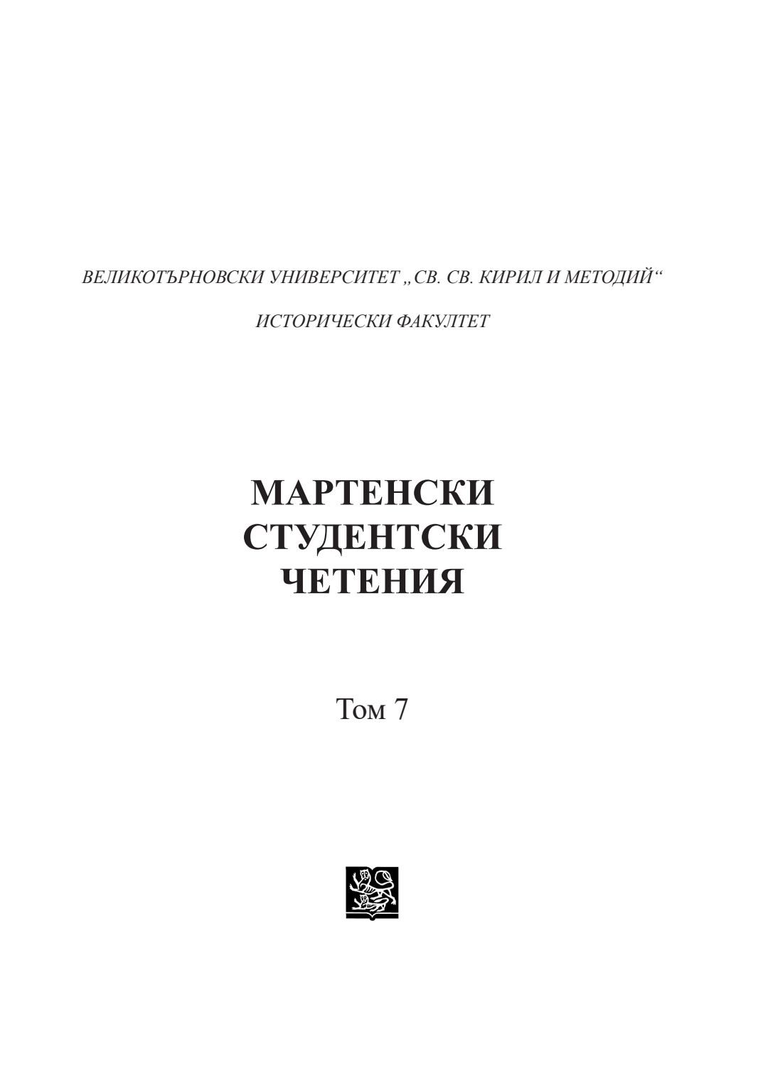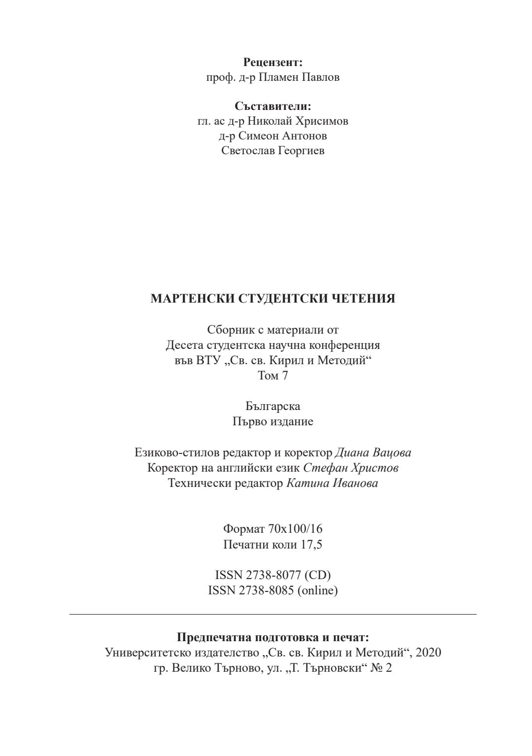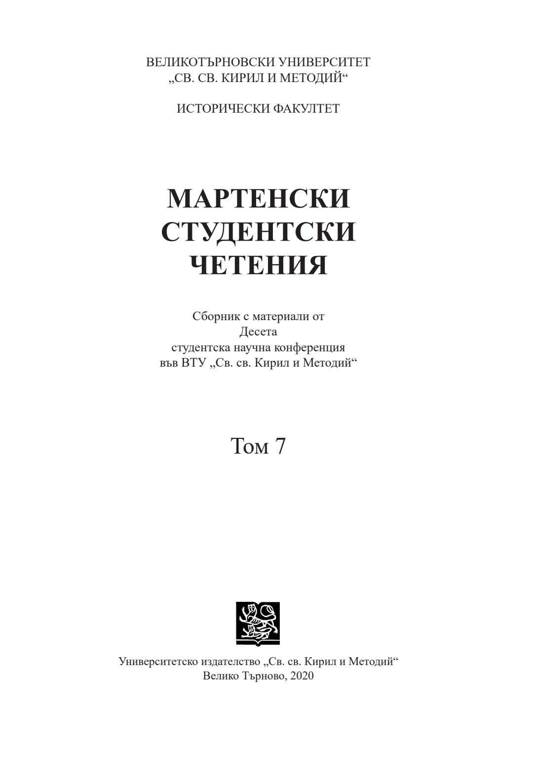 Т. 7. Мартенски студентски четения [Електронен ресурс] : сборник с материали от Десета студентска научна конференция във ВТУ „Св. св. Кирил и Методий“