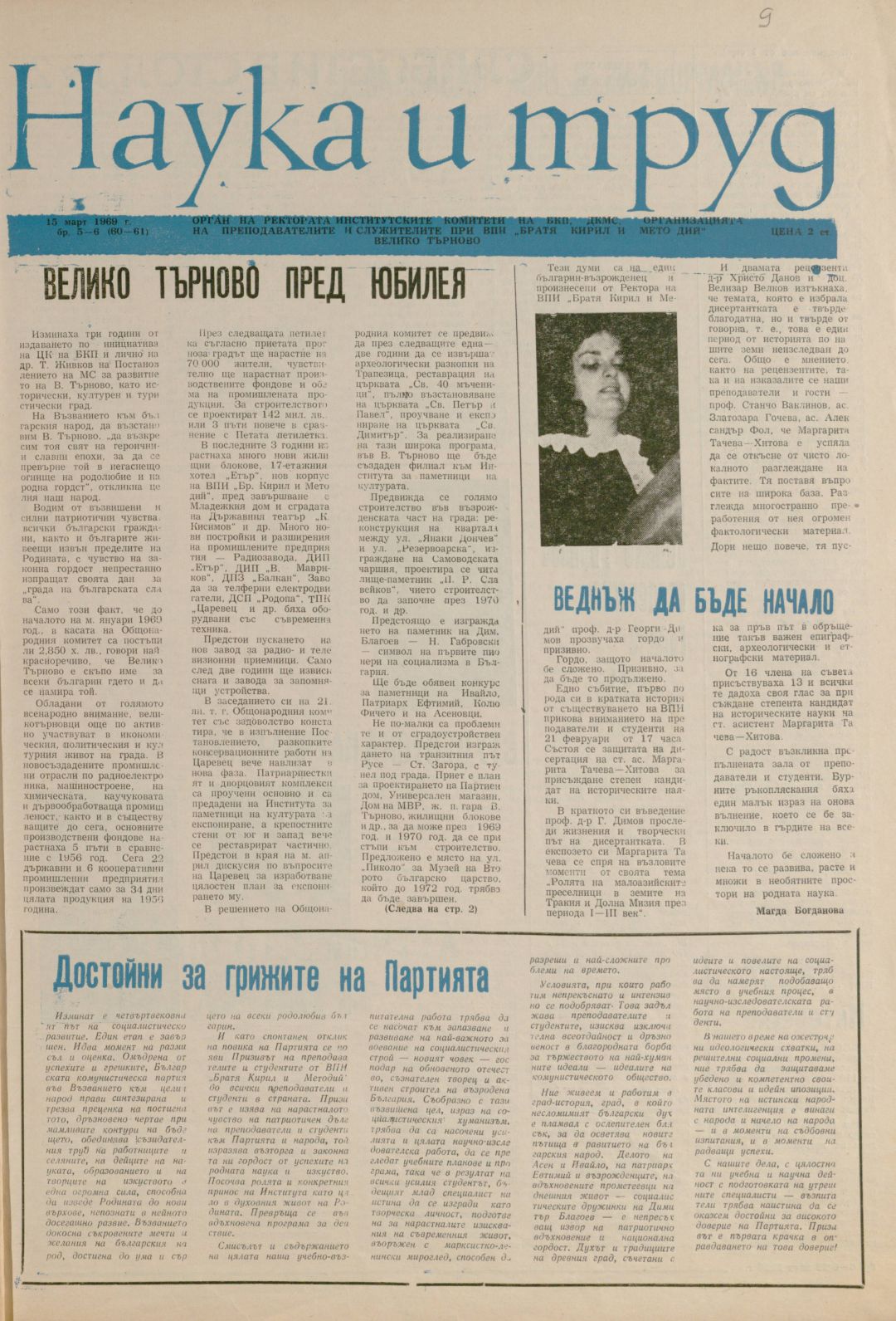 Год. 7, 5-6 (60-61). Наука и труд : Орган на институтските комитети на БКП, ДКМС и Организацията на преподавателите и служителите при ВПИ "Братя Кирил и Методий"