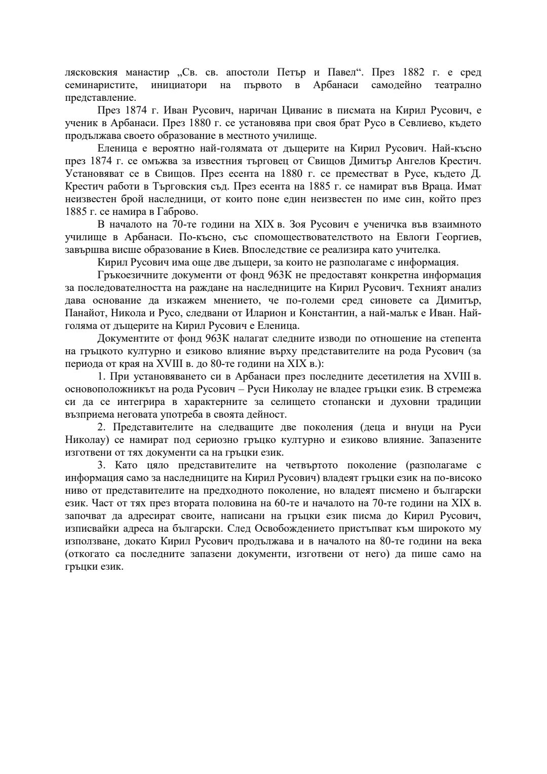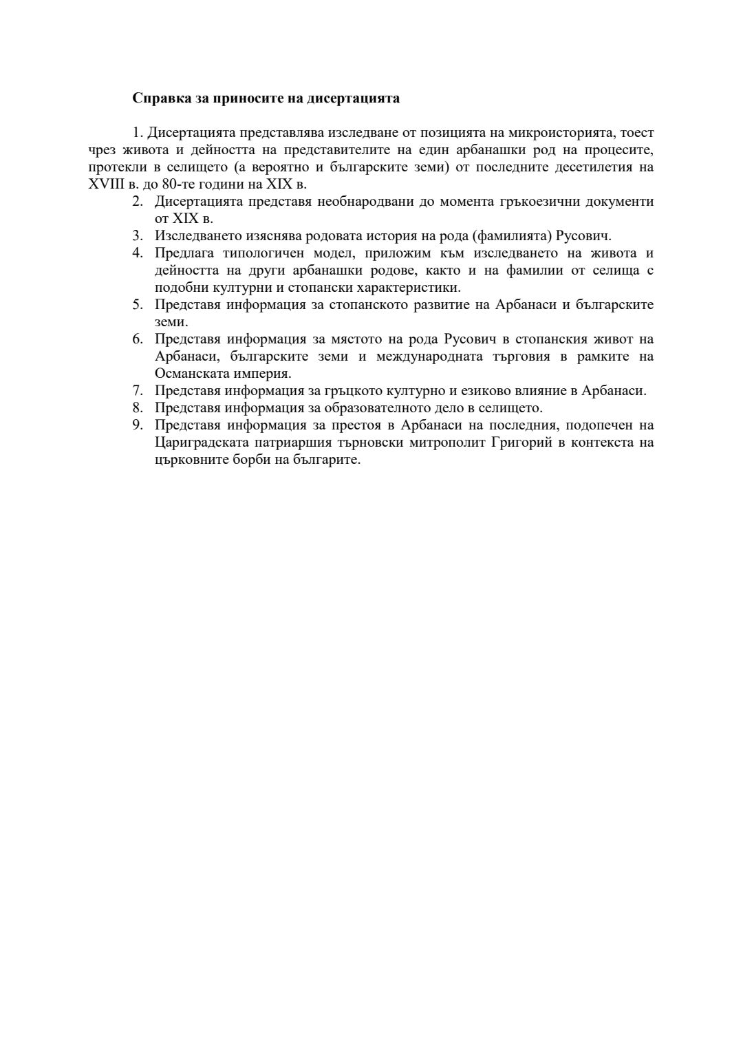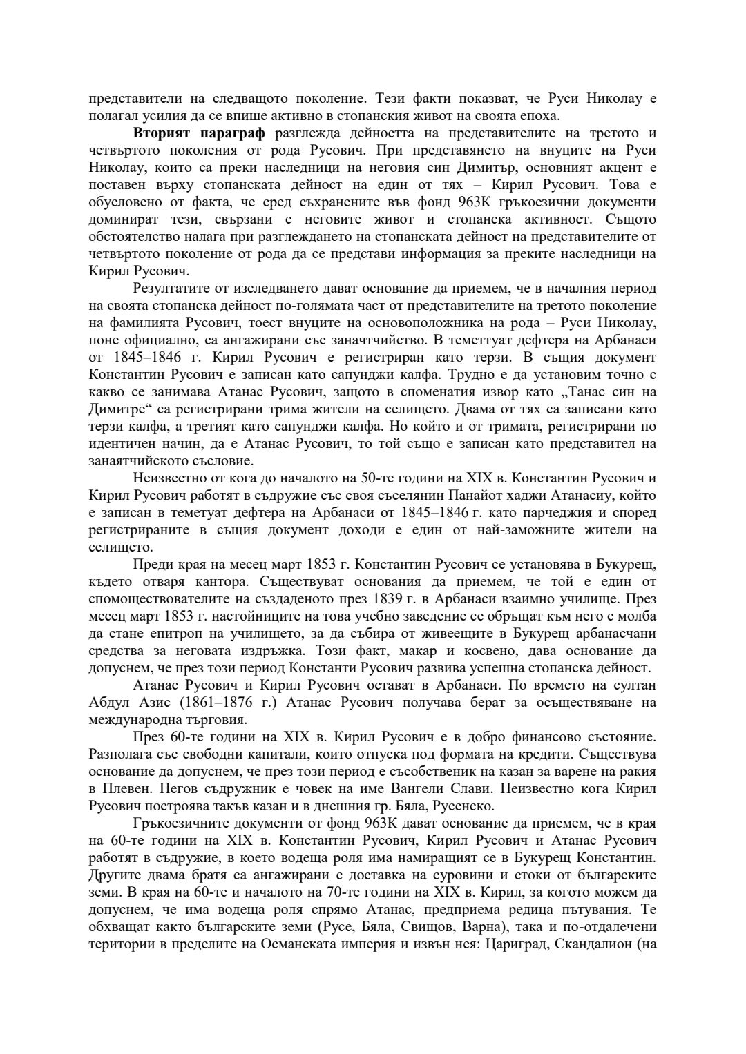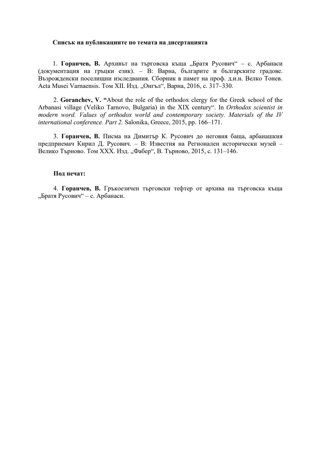 Родът Русович от Арбанаси през XVIII-XIX век - родова история, стопанска и обществена дейност (по гръкоезични извори) : Автореферат / Веселин Иванов Горанчев ; Науч. ръководител Иван Тютюнджиев