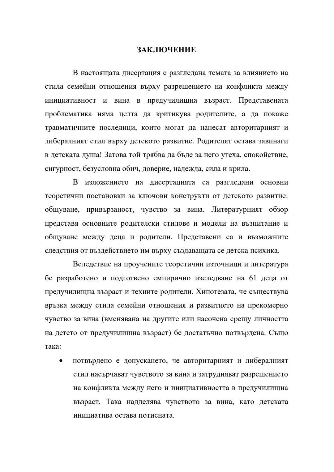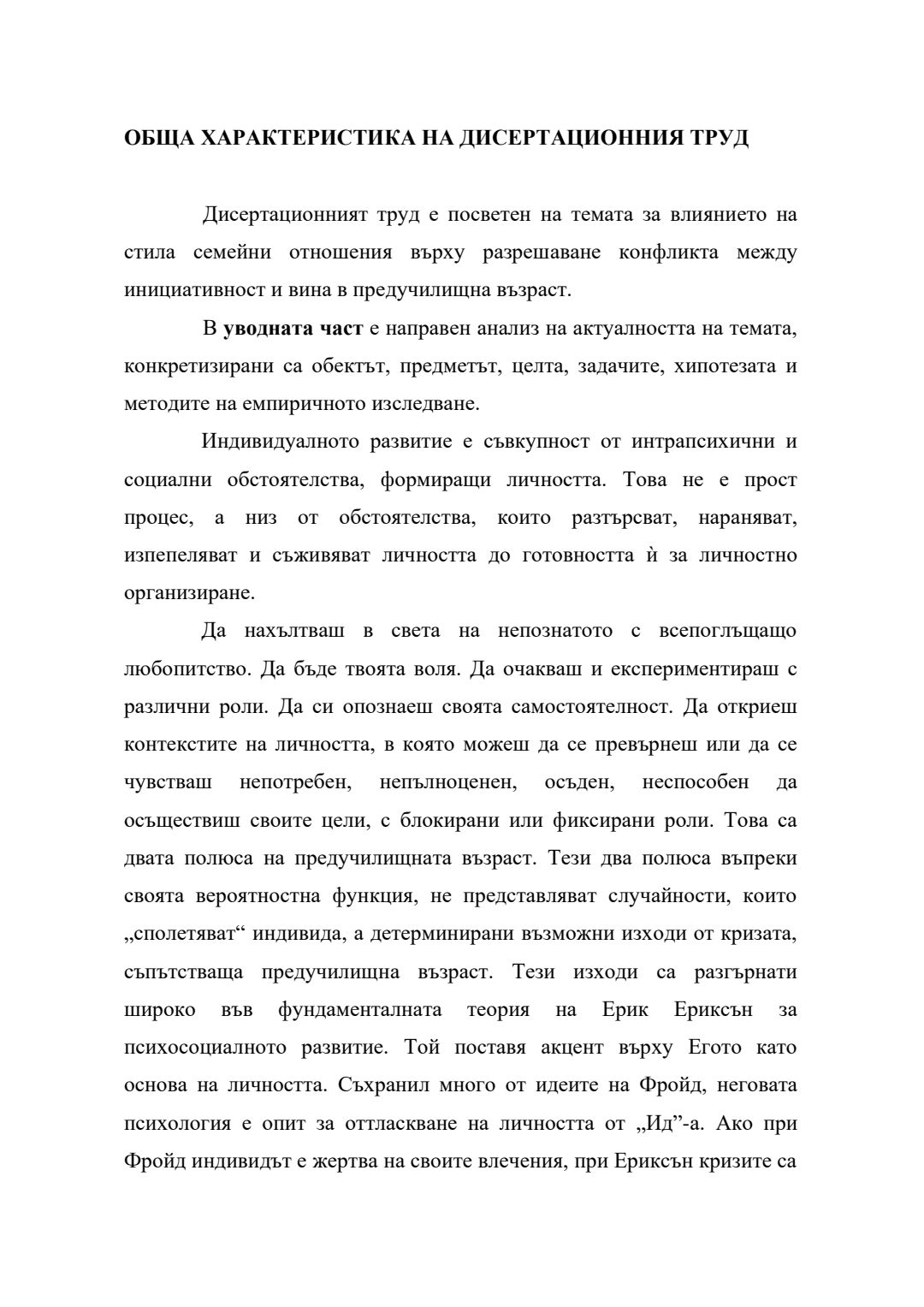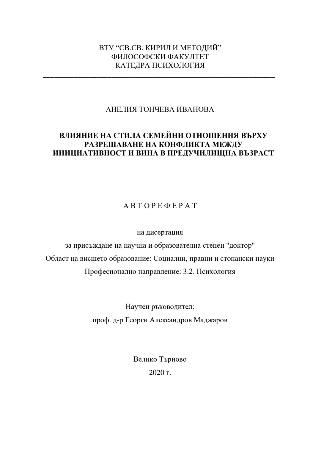 Влияние на стила семейни отношения върху разрешаване на конфликта между инициативност и вина в предучилищна възраст : Автореферат / Анелия Тончева Иванова ; Науч. ръководител Георги Александров Маджаров