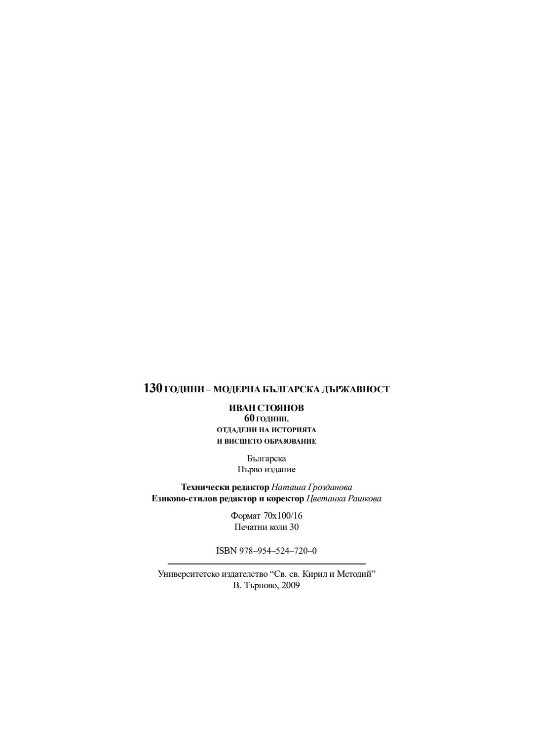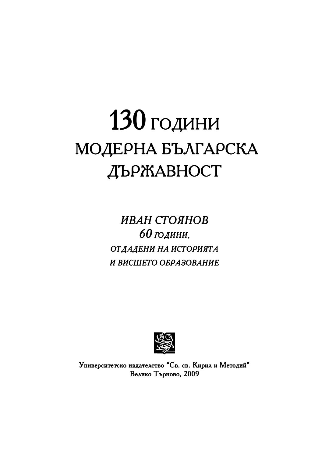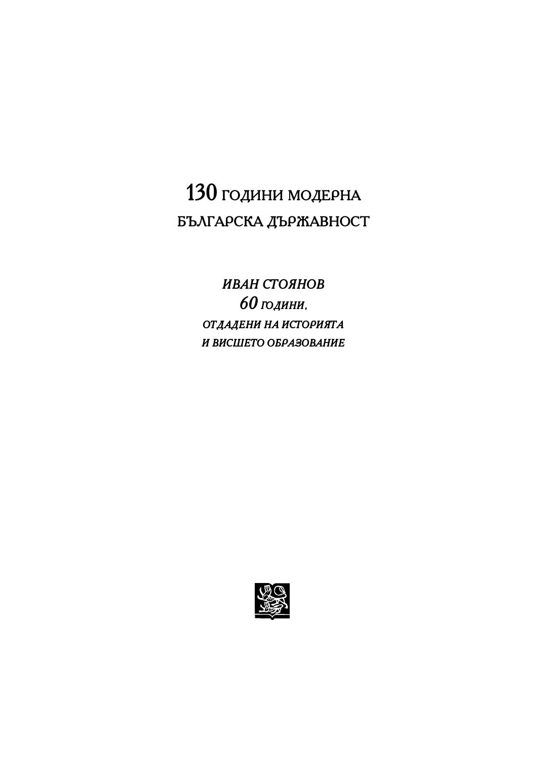 130 години модерна българска държавност : Иван Стоянов - 60 години, отдадени на историята и висшето образование