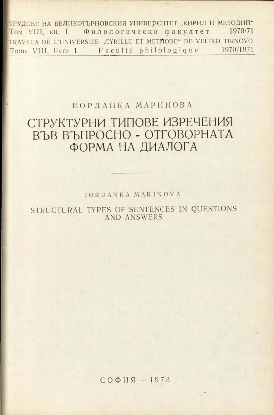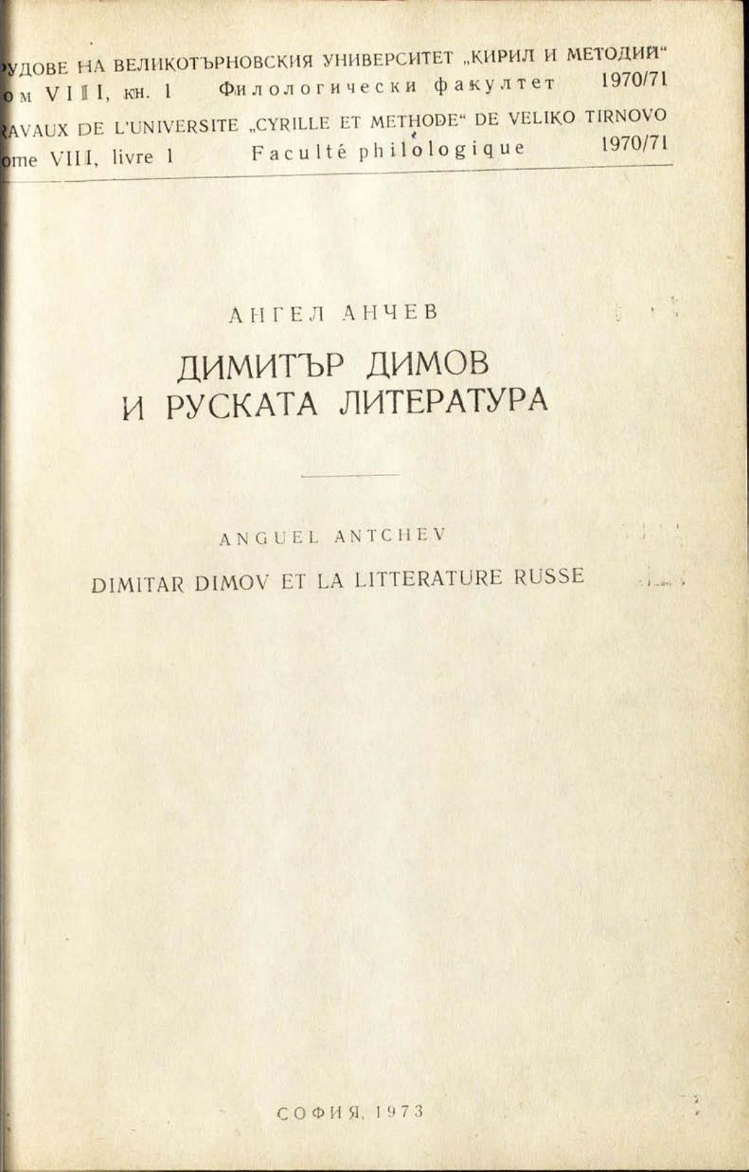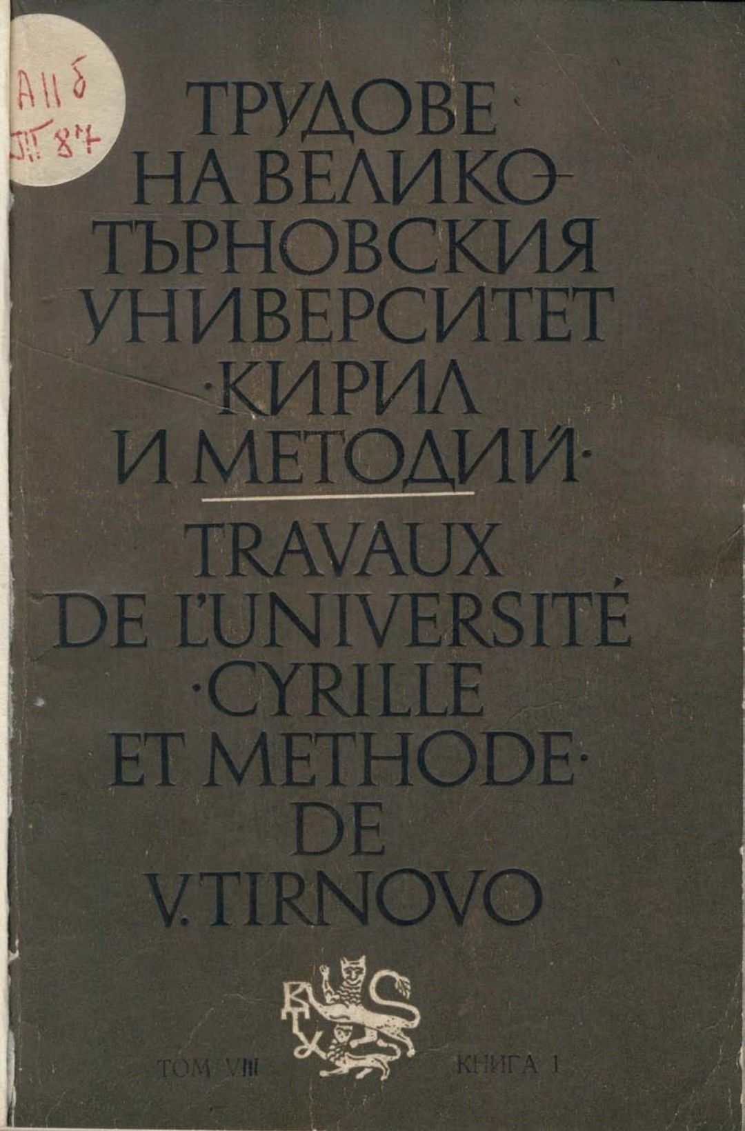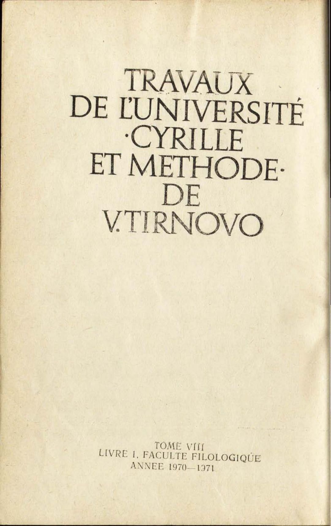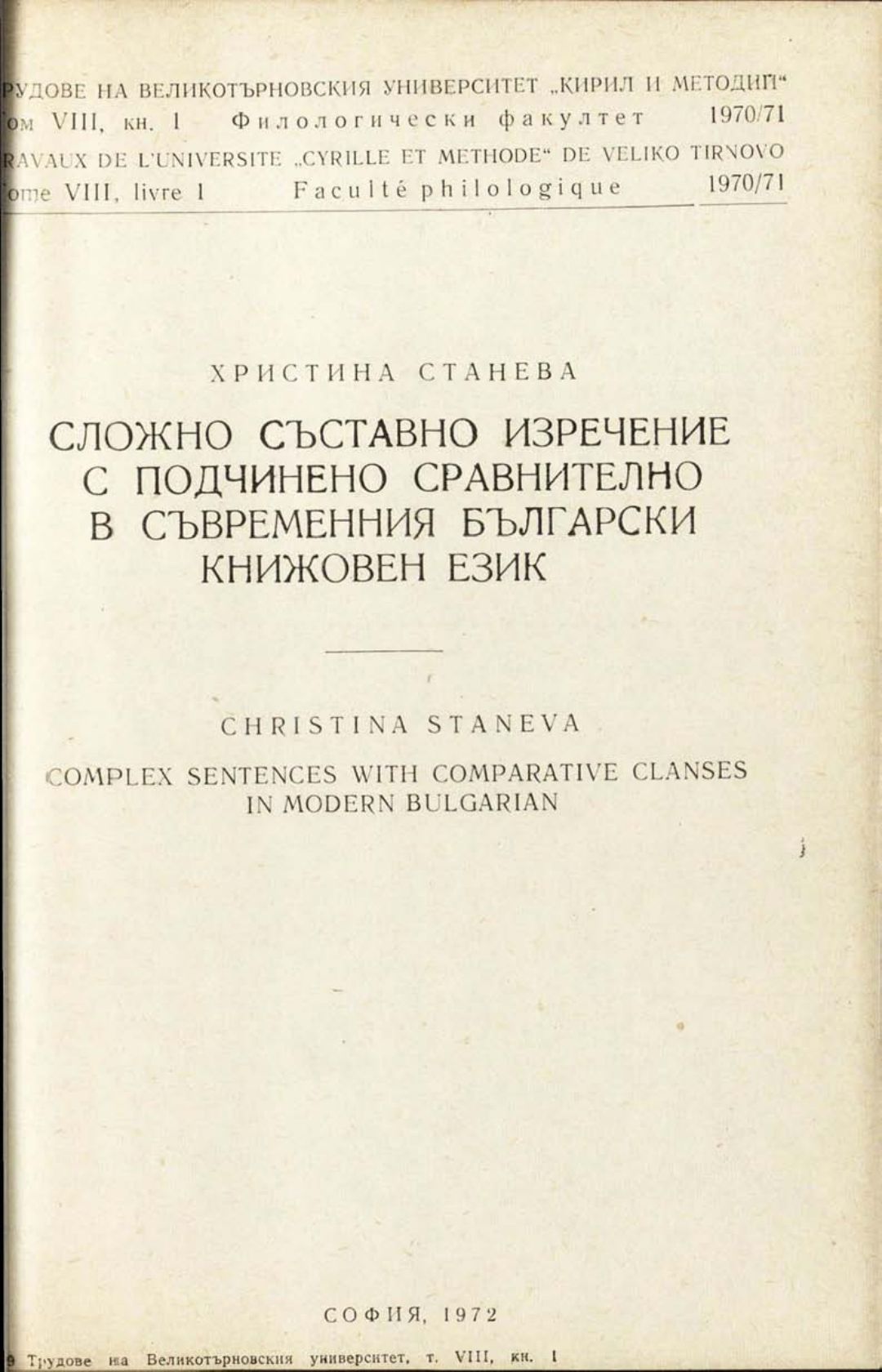 Том 8. Кн.1.Трудове на Великотърновския университет "Св. св. Кирил и Методий". Филологически факултет = Travaux de L'universite St. St. Cyrille et Methode de Veliko Tirnovo. Faculte de philologue