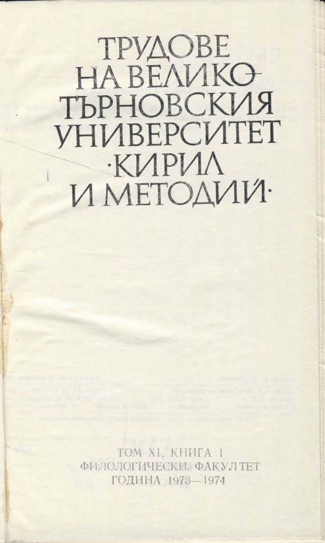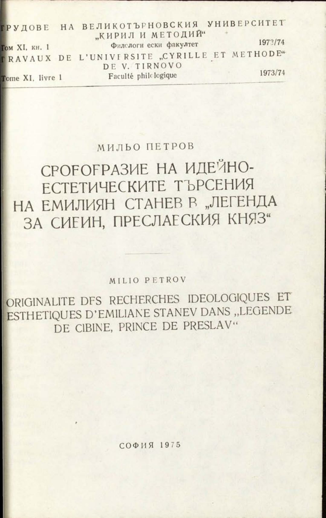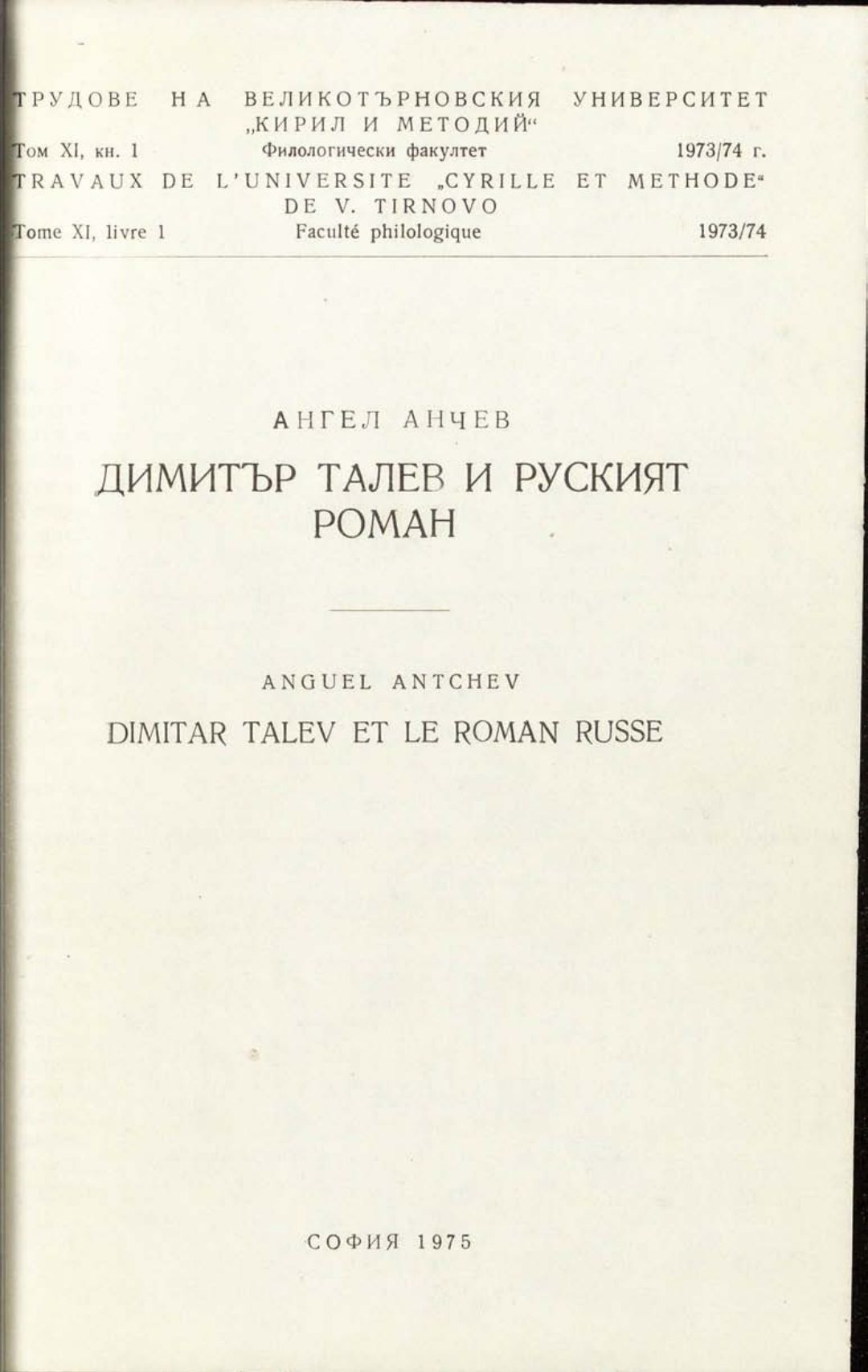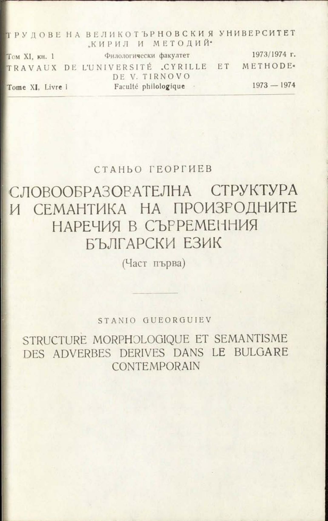 Том 11. Кн.1. Трудове на Великотърновския университет "Св. св. Кирил и Методий". Филологически факултет = Travaux de L'universite St. St. Cyrille et Methode de Veliko Tirnovo. Faculte de philologue