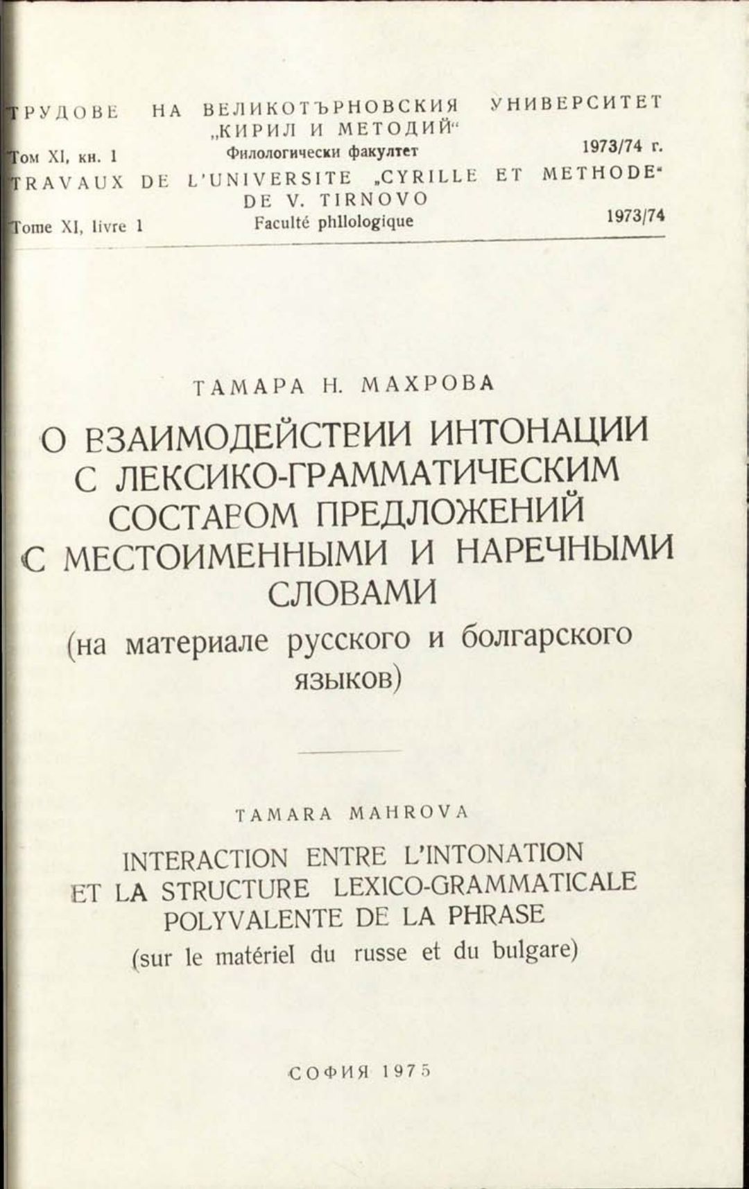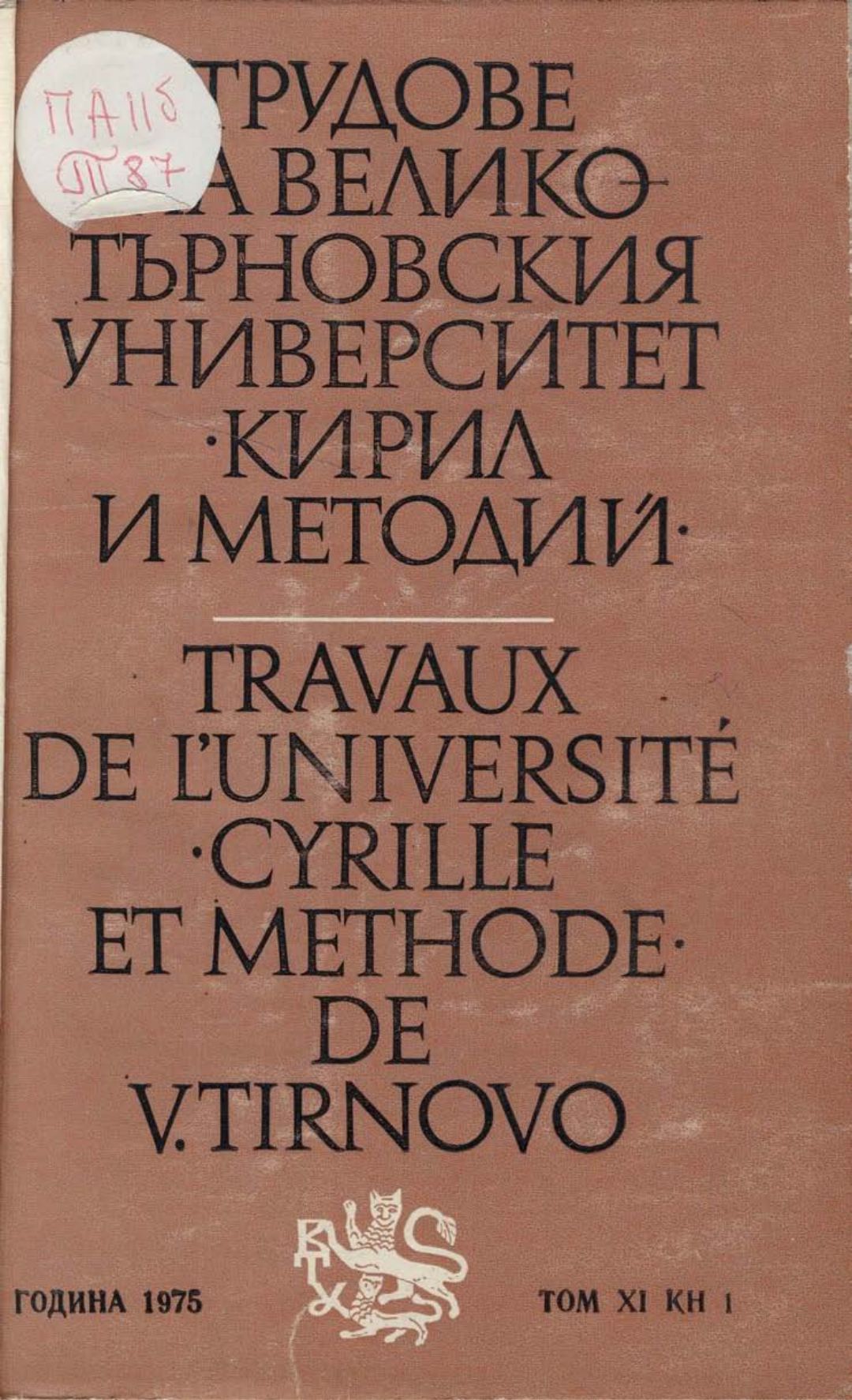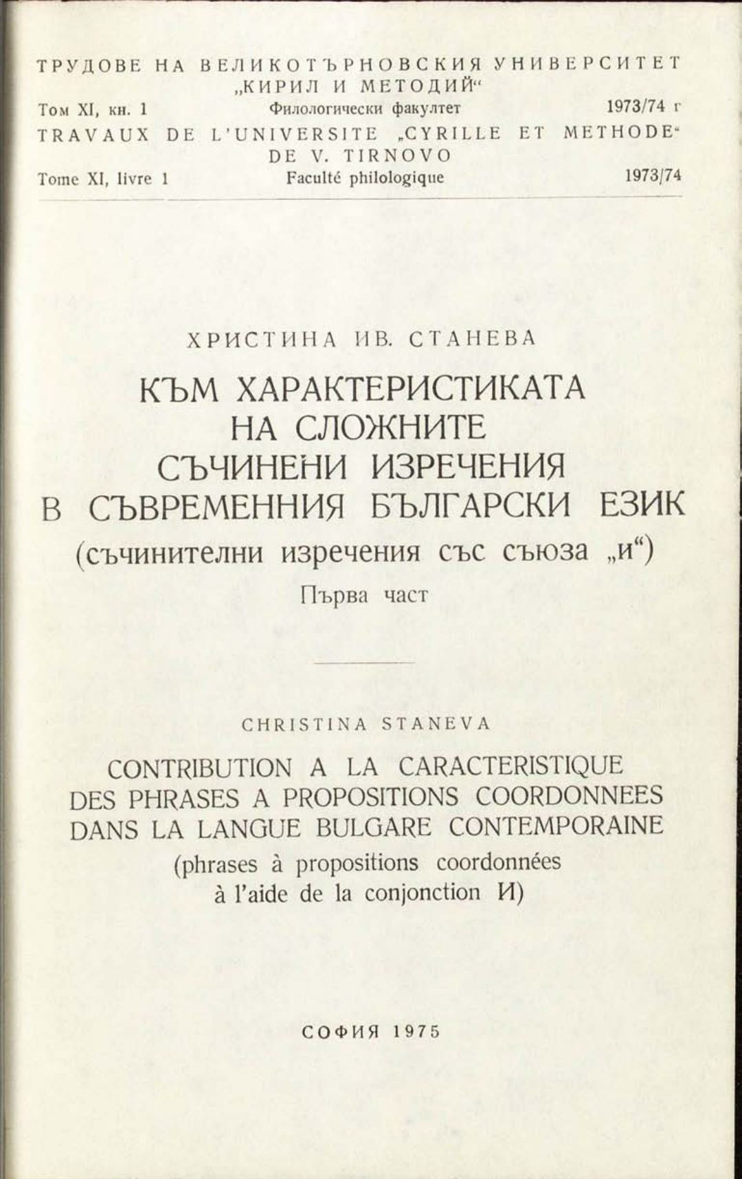 Том 11. Кн.1. Трудове на Великотърновския университет "Св. св. Кирил и Методий". Филологически факултет = Travaux de L'universite St. St. Cyrille et Methode de Veliko Tirnovo. Faculte de philologue