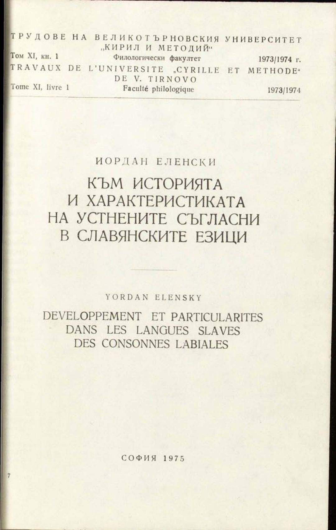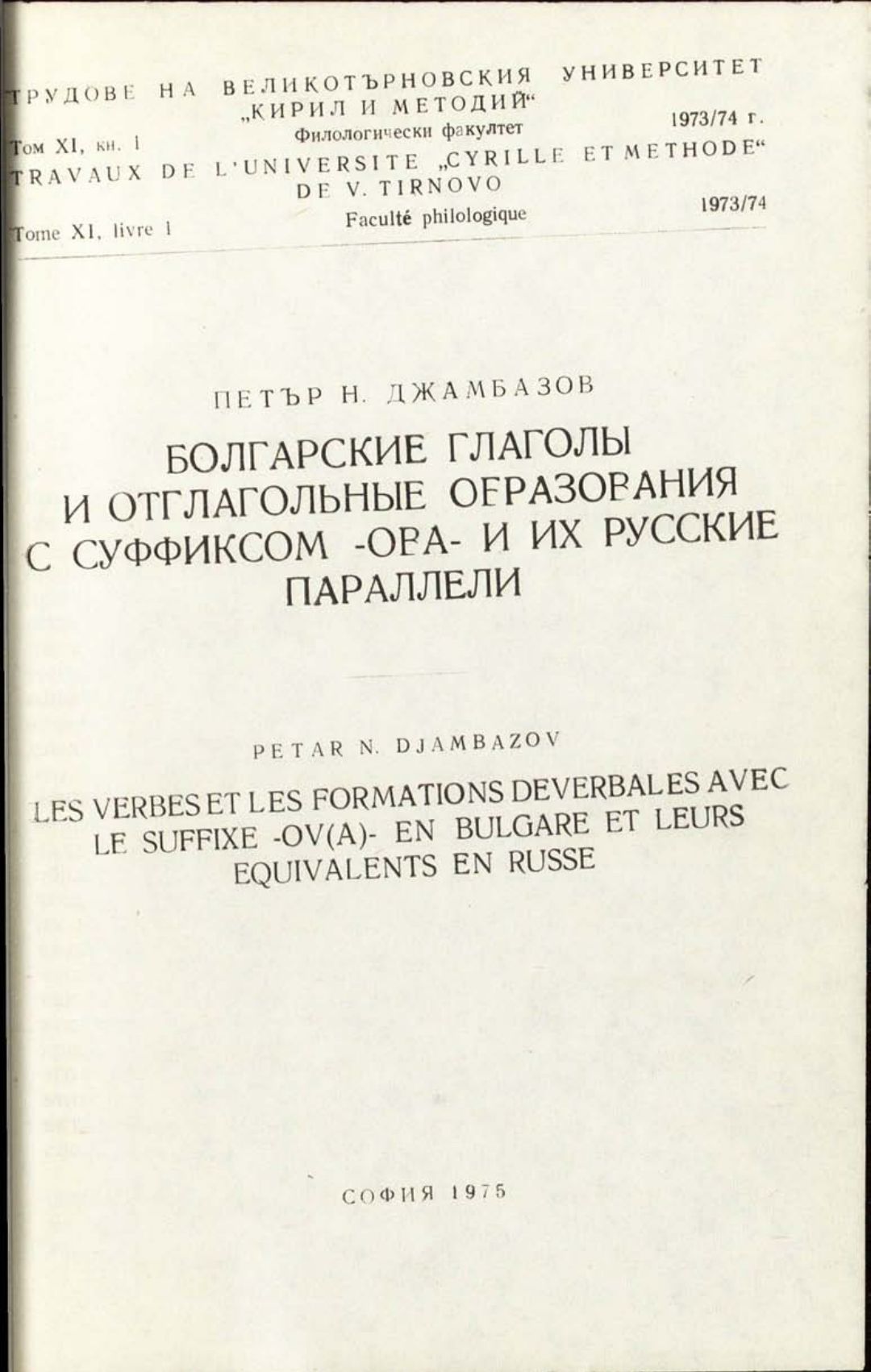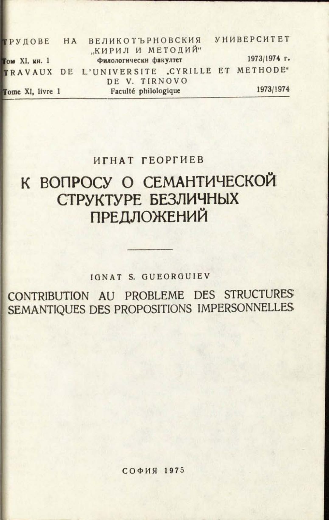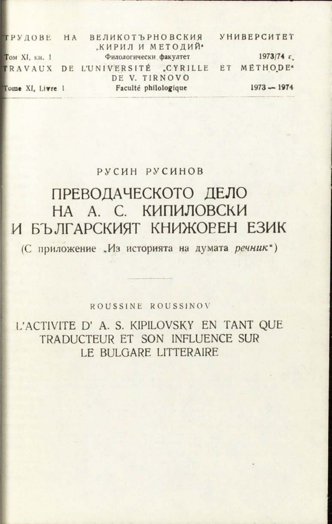 Том 11. Кн.1. Трудове на Великотърновския университет "Св. св. Кирил и Методий". Филологически факултет = Travaux de L'universite St. St. Cyrille et Methode de Veliko Tirnovo. Faculte de philologue